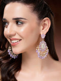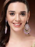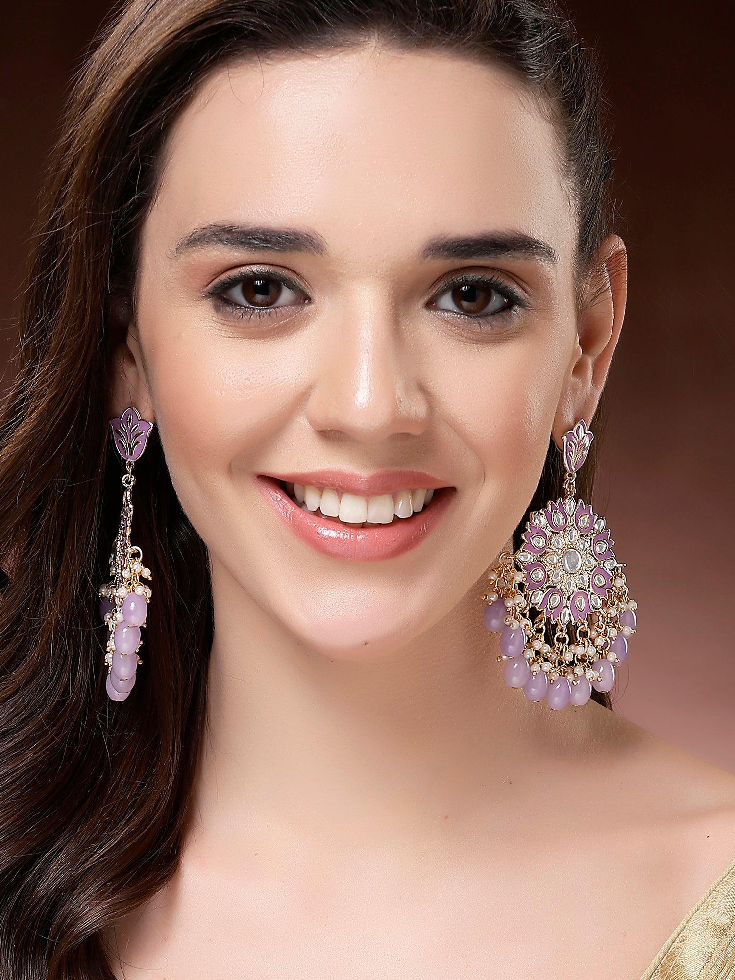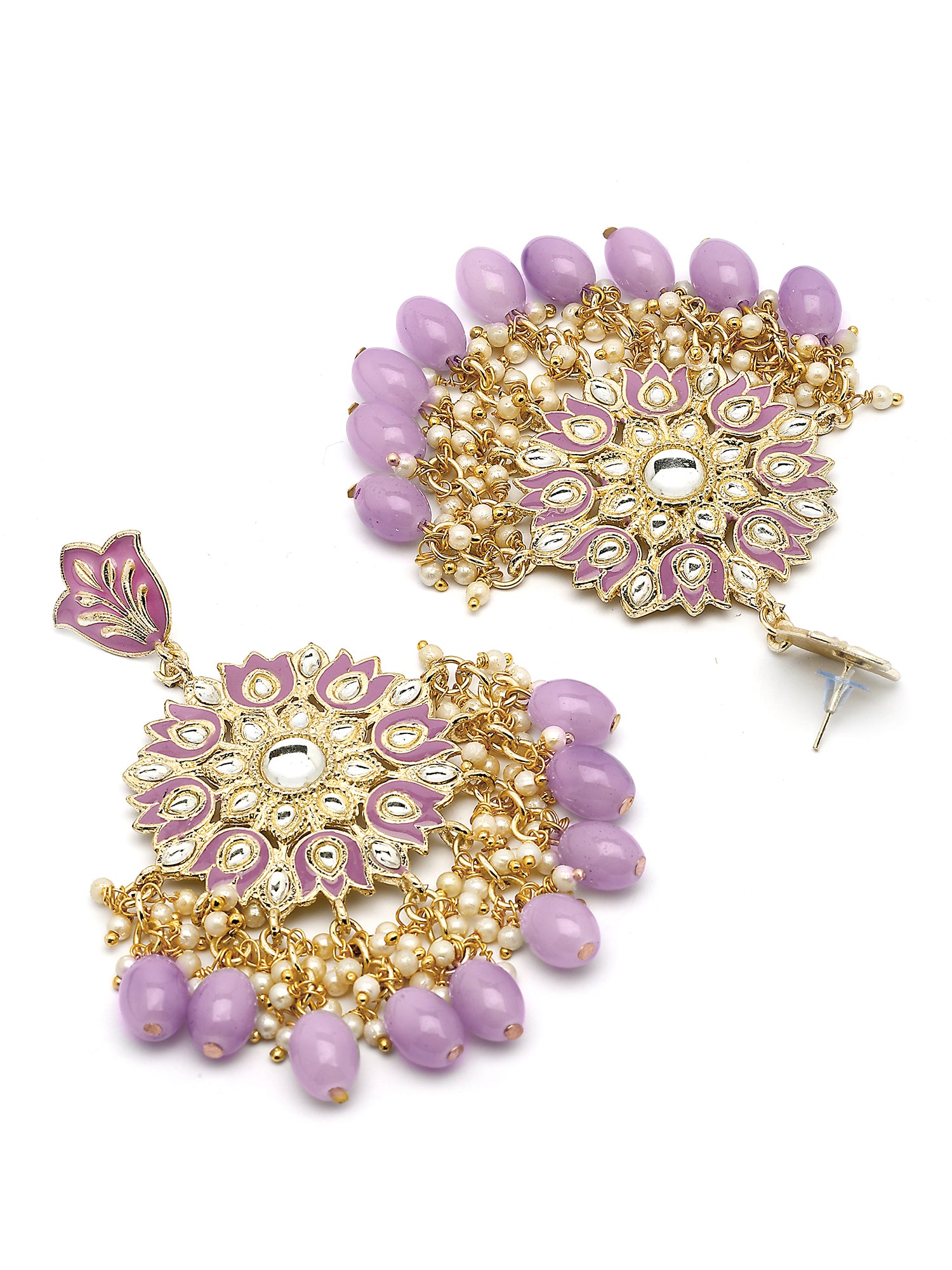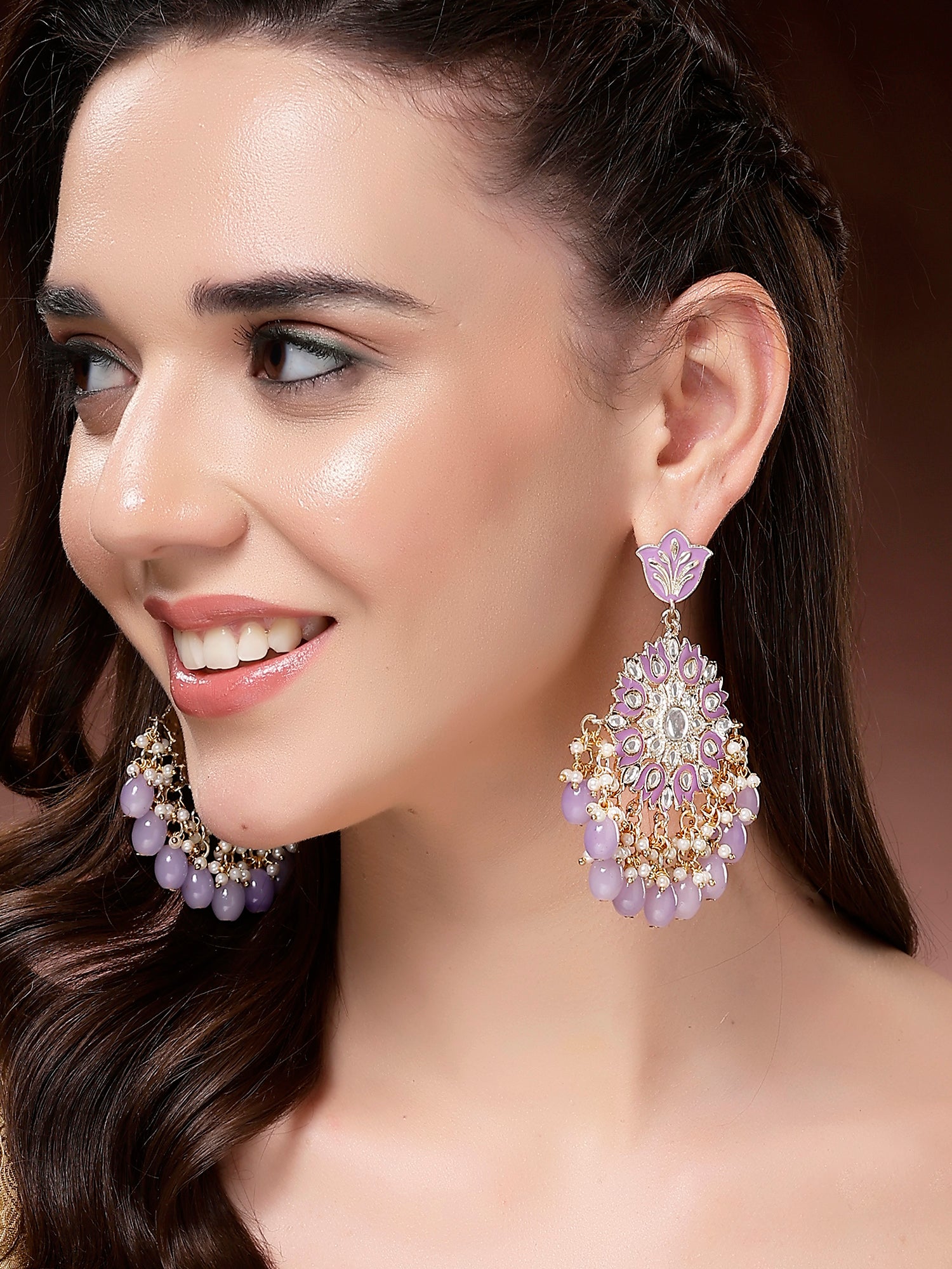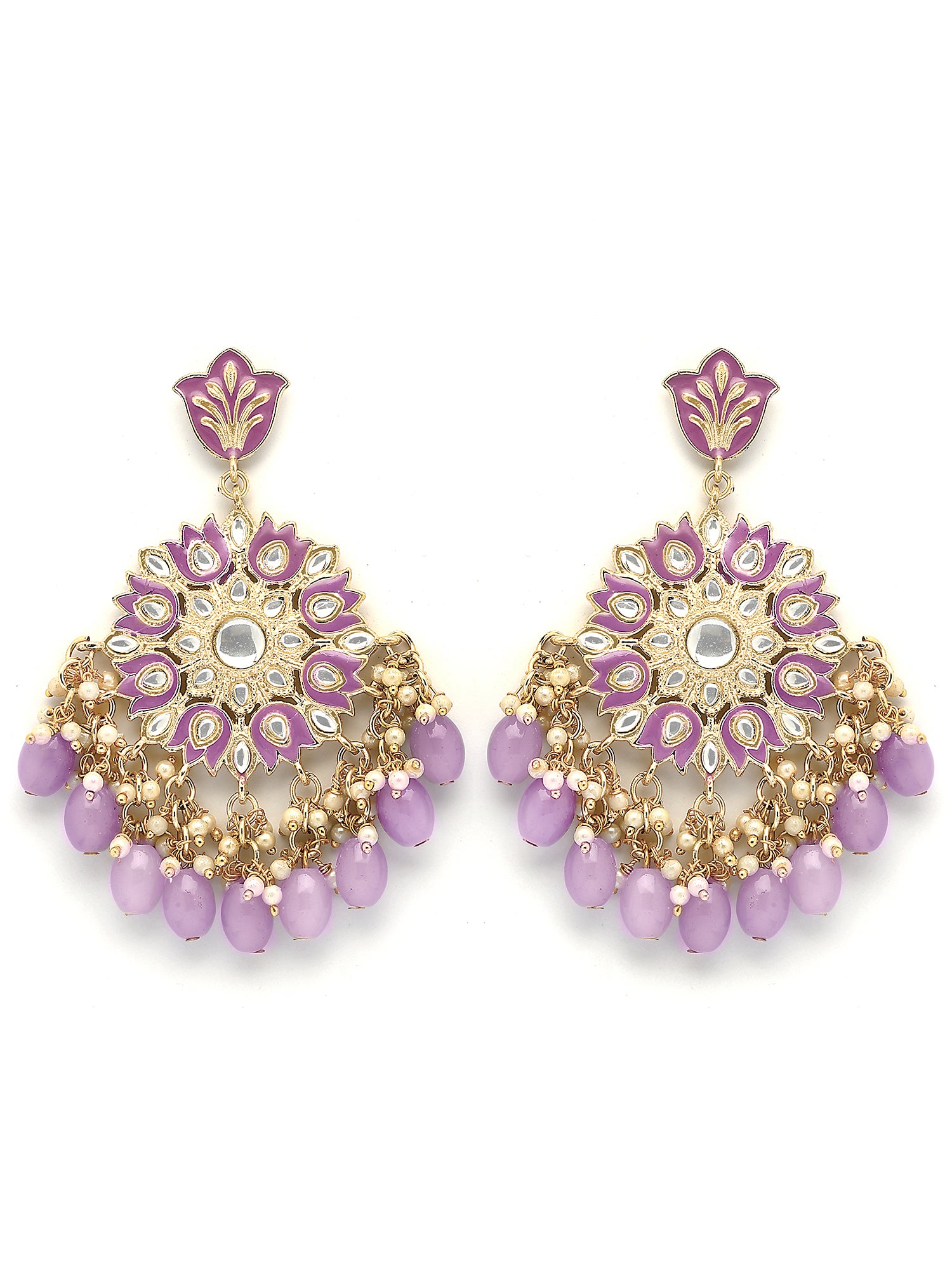 Karatcart Ethnic Purple Meenakari and Gold-Plated Kundan Dangler Earrings with Lavender Beads
