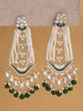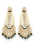 Karatcart Designer Green Beads and Pearl Gold-Plated Long Kundan Dangler Earrings for Women