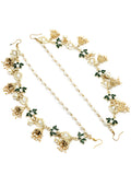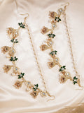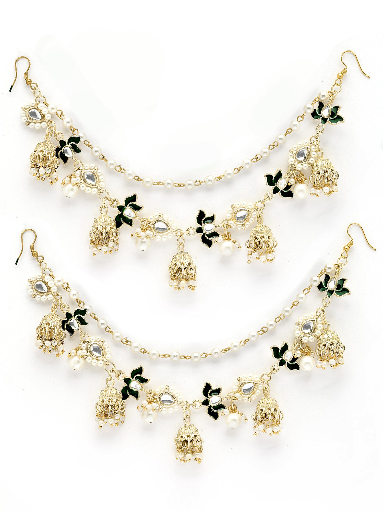 KARATCART Traditional Gold-Plated Green Meena Floral Kundan and Jhumki Kaanchain Earrings for Women