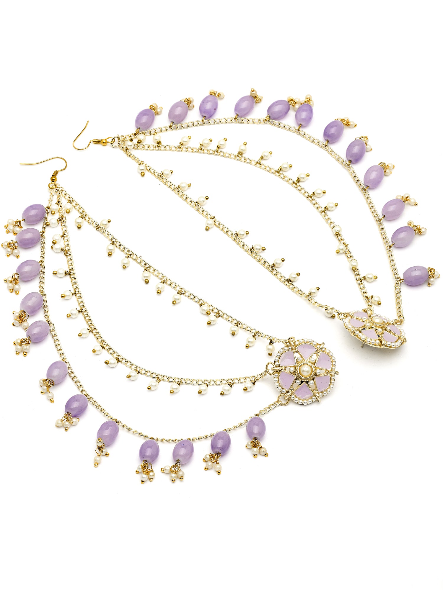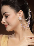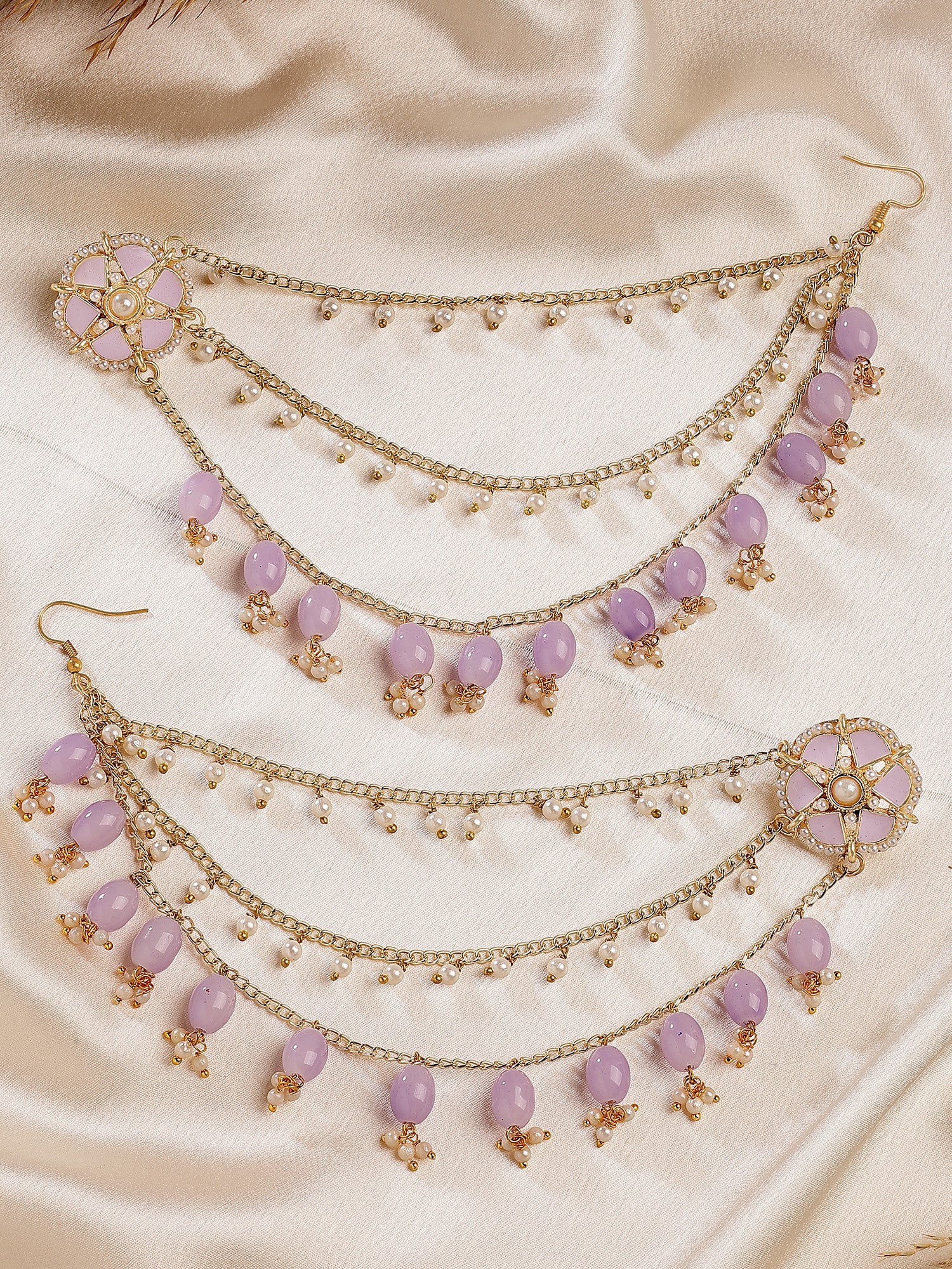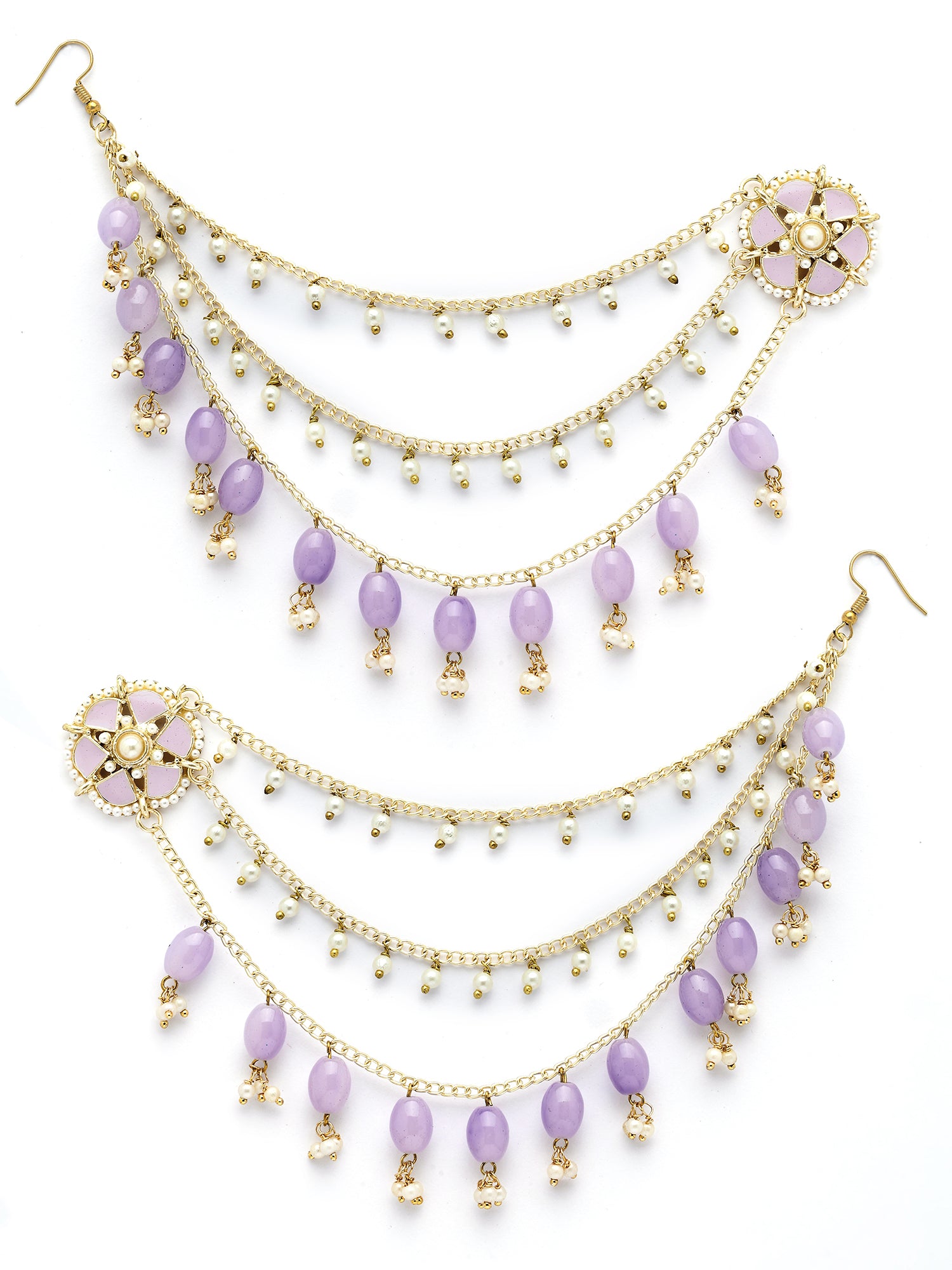 KARATCART Designer Gold-Plated Purple Enamel and Tumble Studded Kundan Kaanchain Earrings for Women