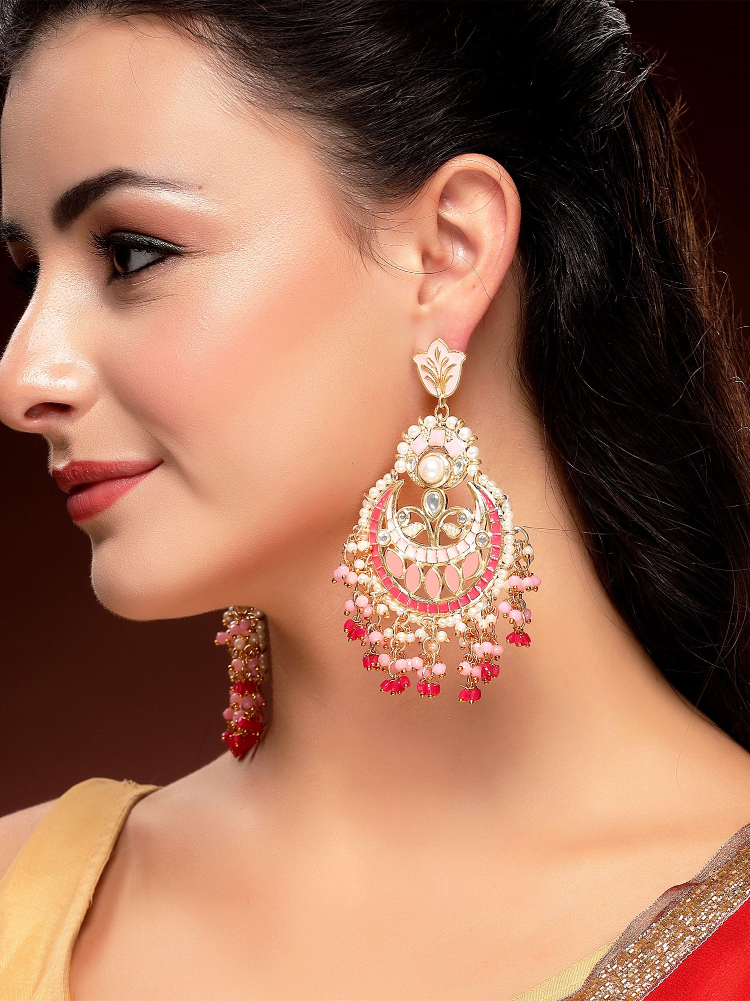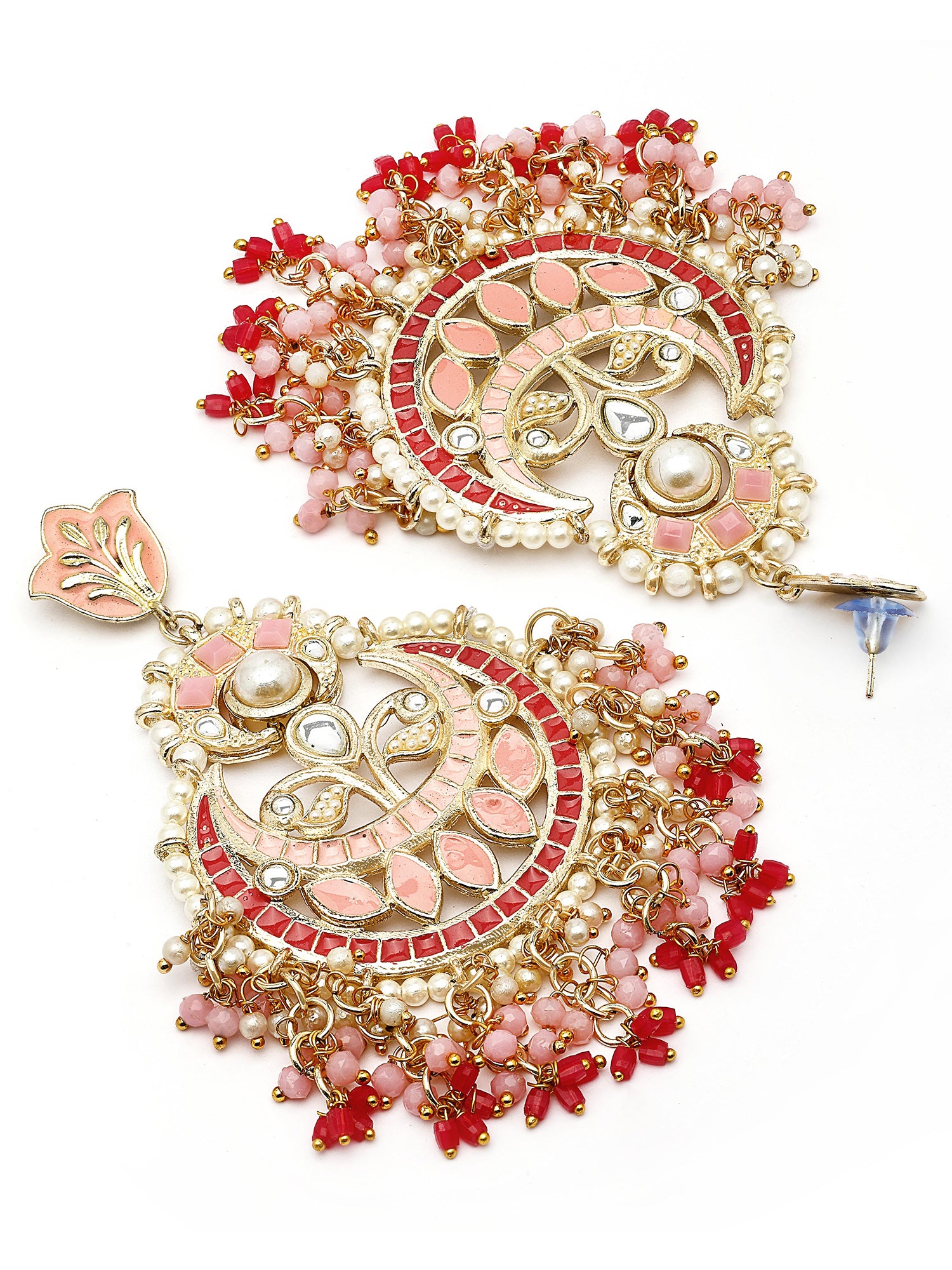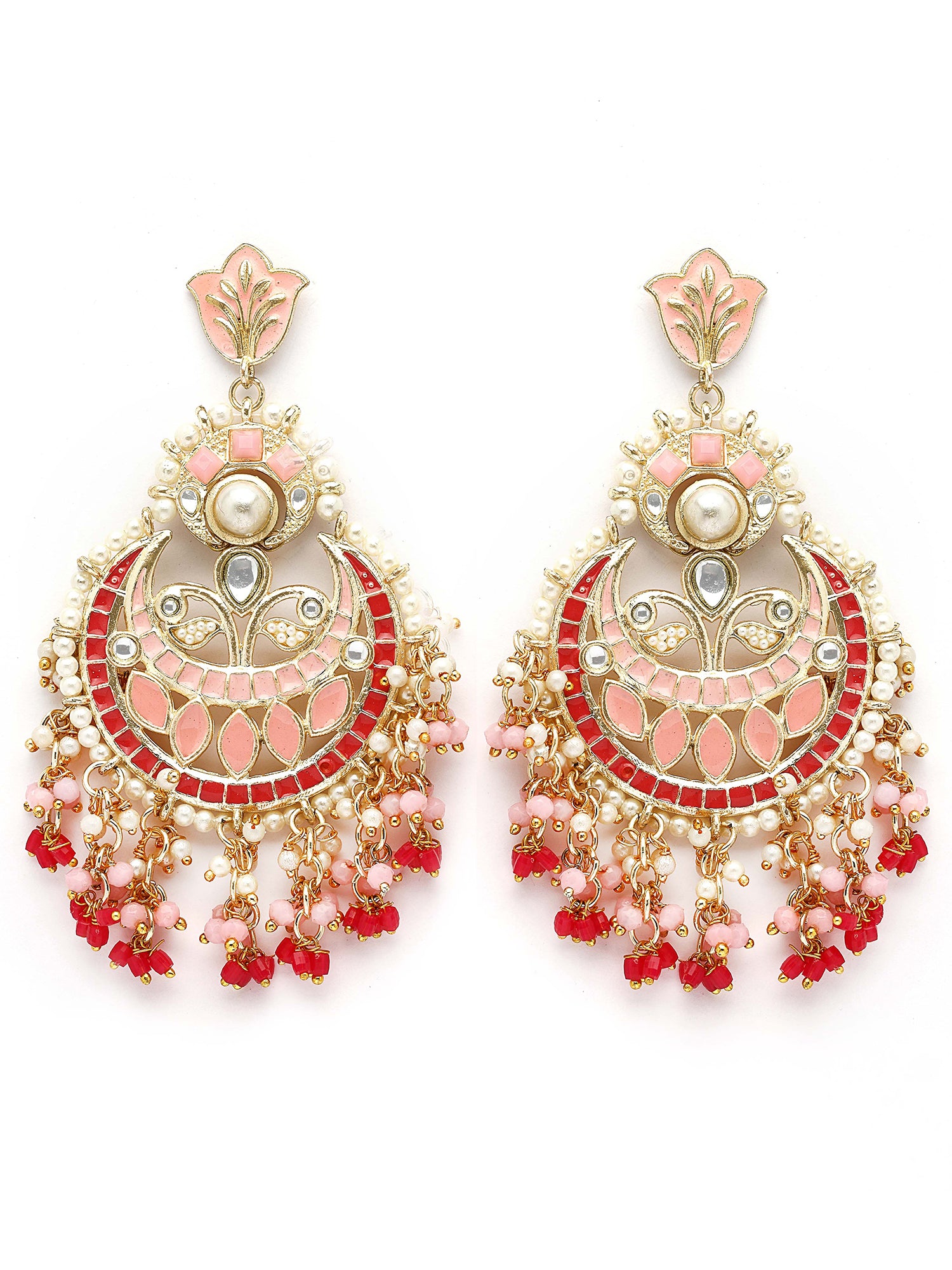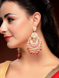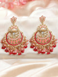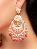 KARATCART Gold-Plated Pink Meena and Crystal Studded Kundan Chandbali Earrings for Women
