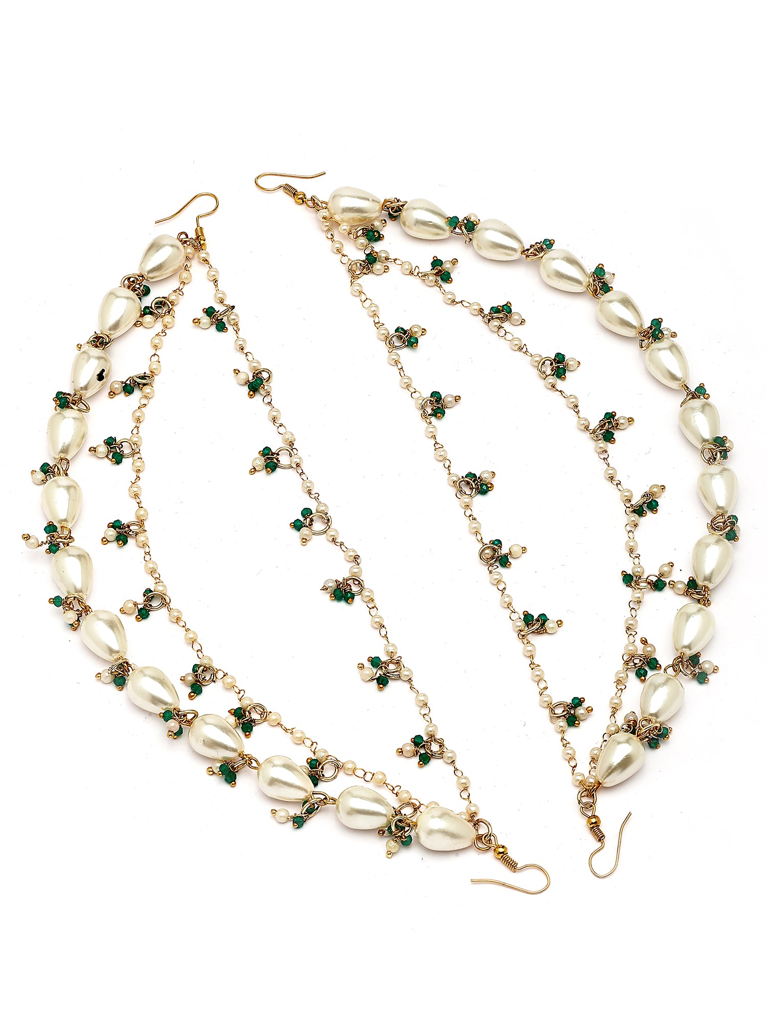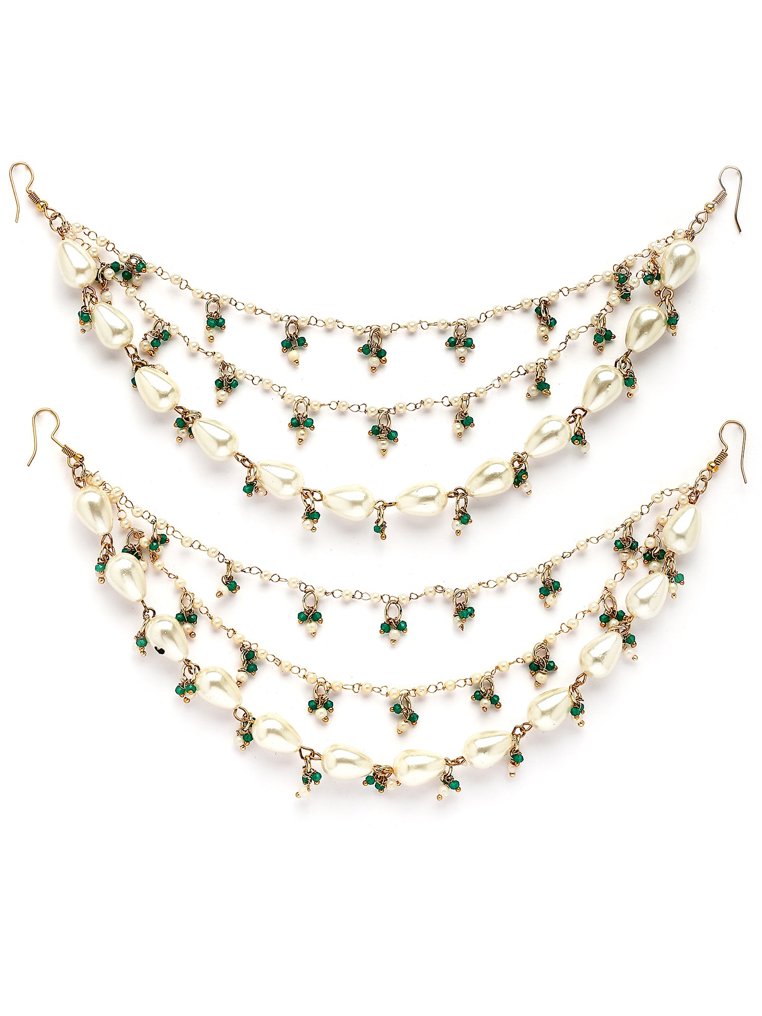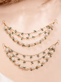 KARATCART Designer Gold-Plated Green Crystal Drop Pearl Kaanchain Earrings for Women