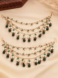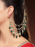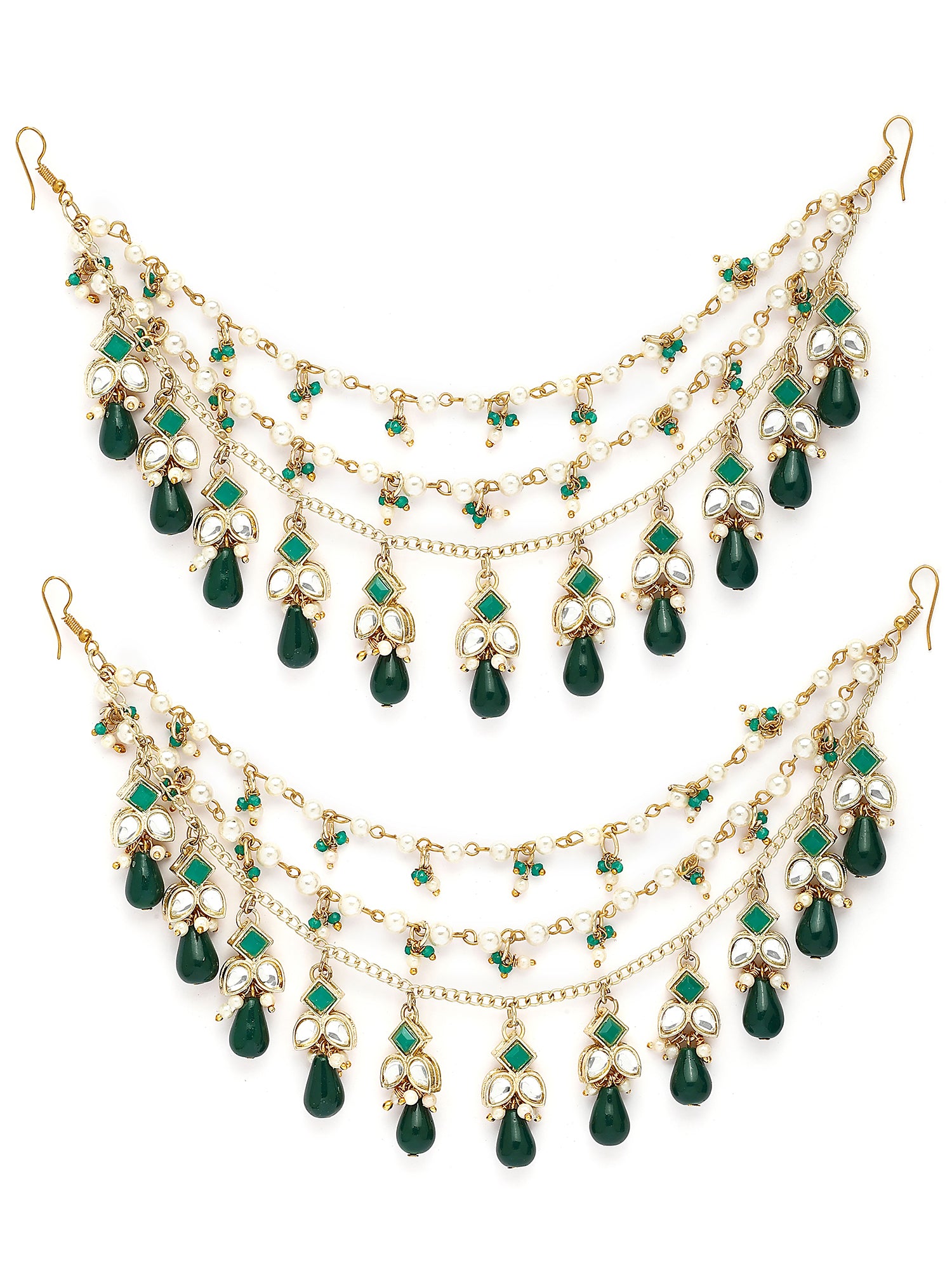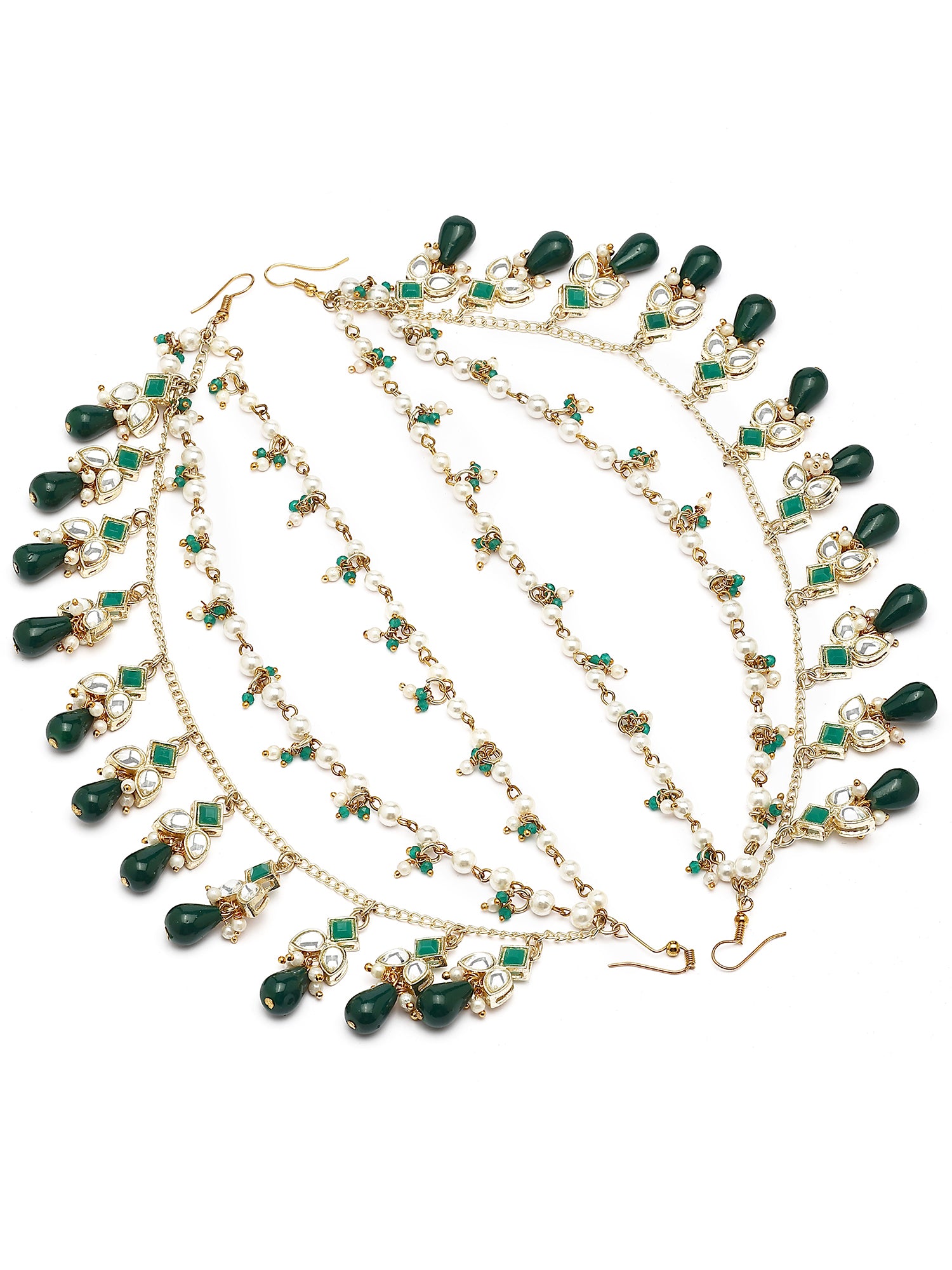 KARATCART Designer Gold-Plated Green Drop and Pearl Kundan Kaanchain Earrings for Women