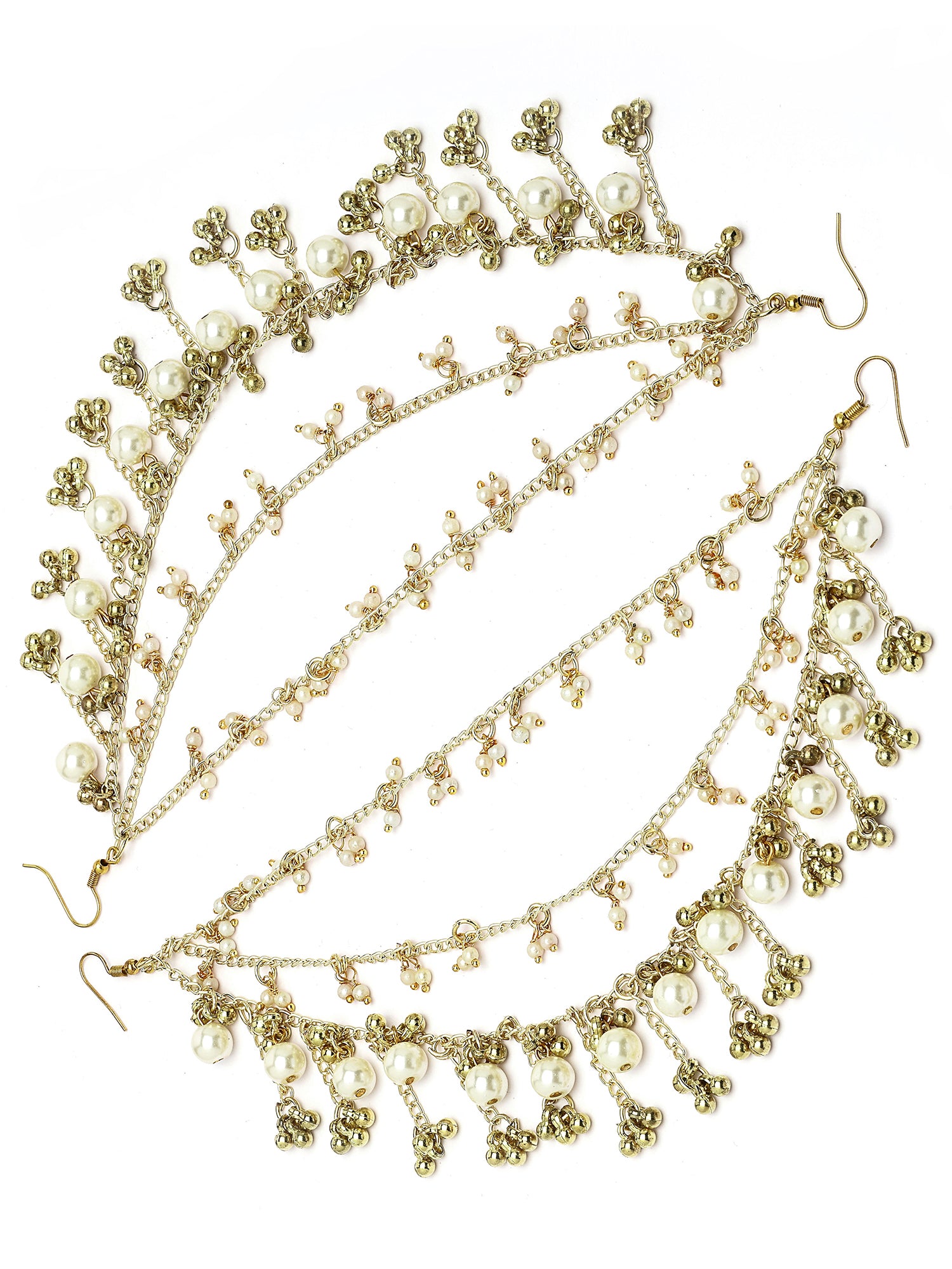 KARATCART Designer Golden Chain and Pearl Kaanchain Earrings for Women