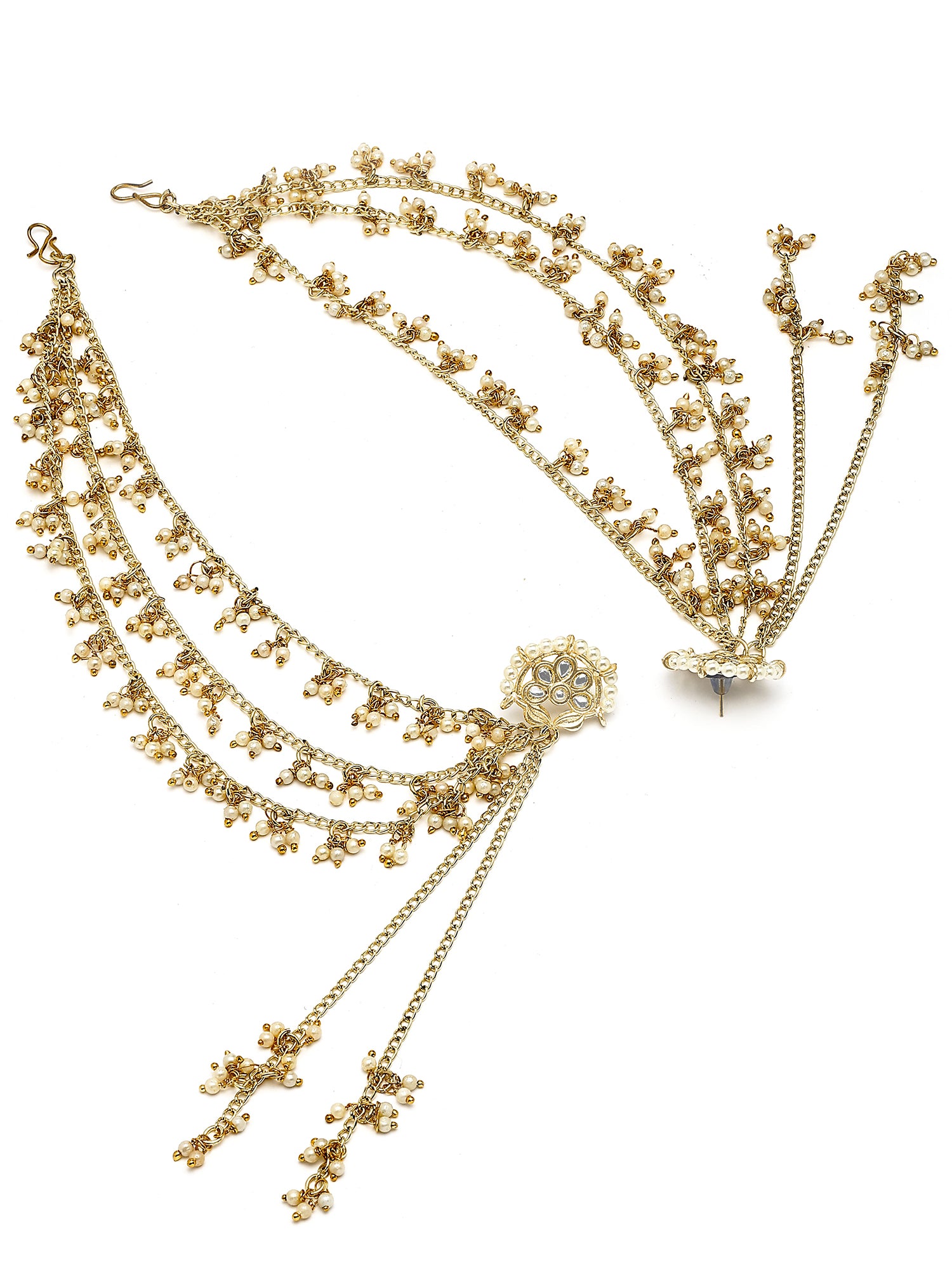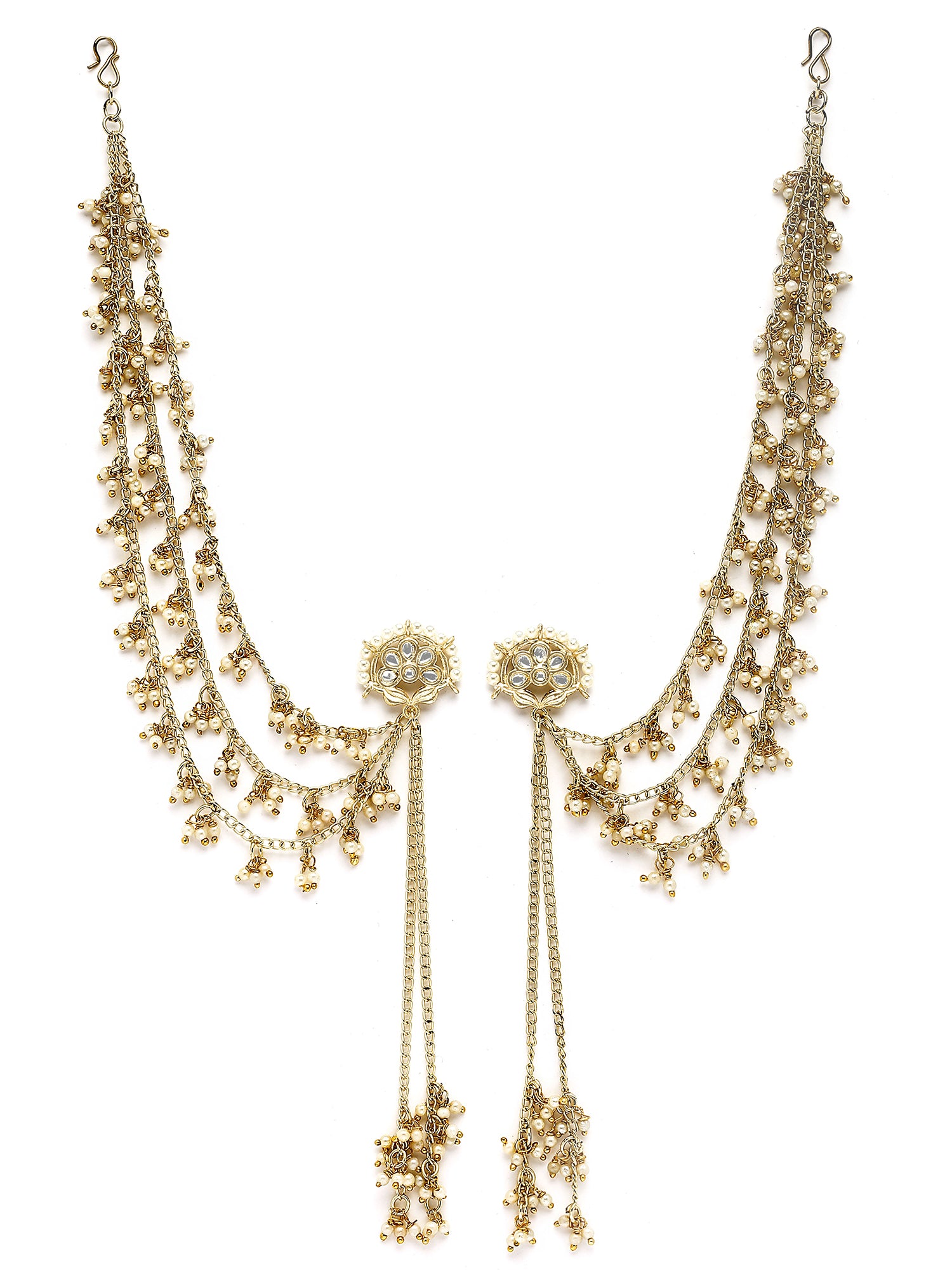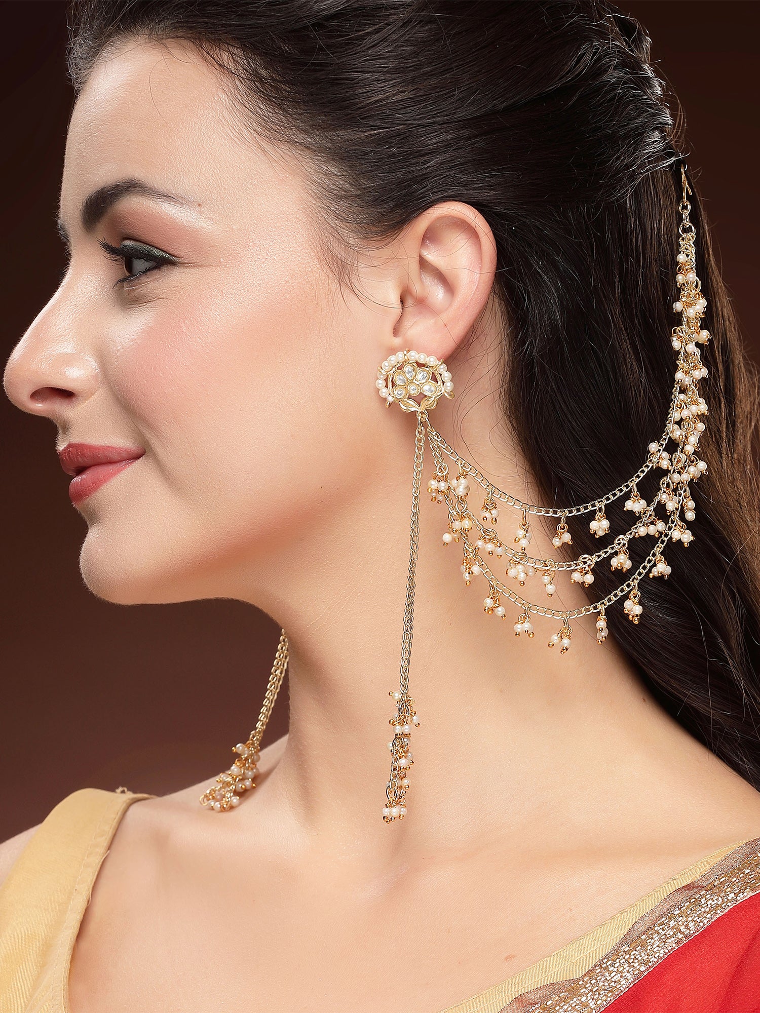KARATCART Designer Gold-Plated Pearl and Kundan Kaanchain Earrings for Women
