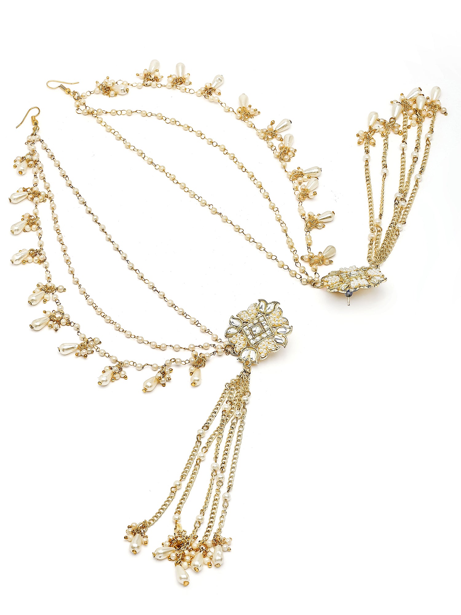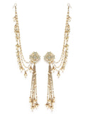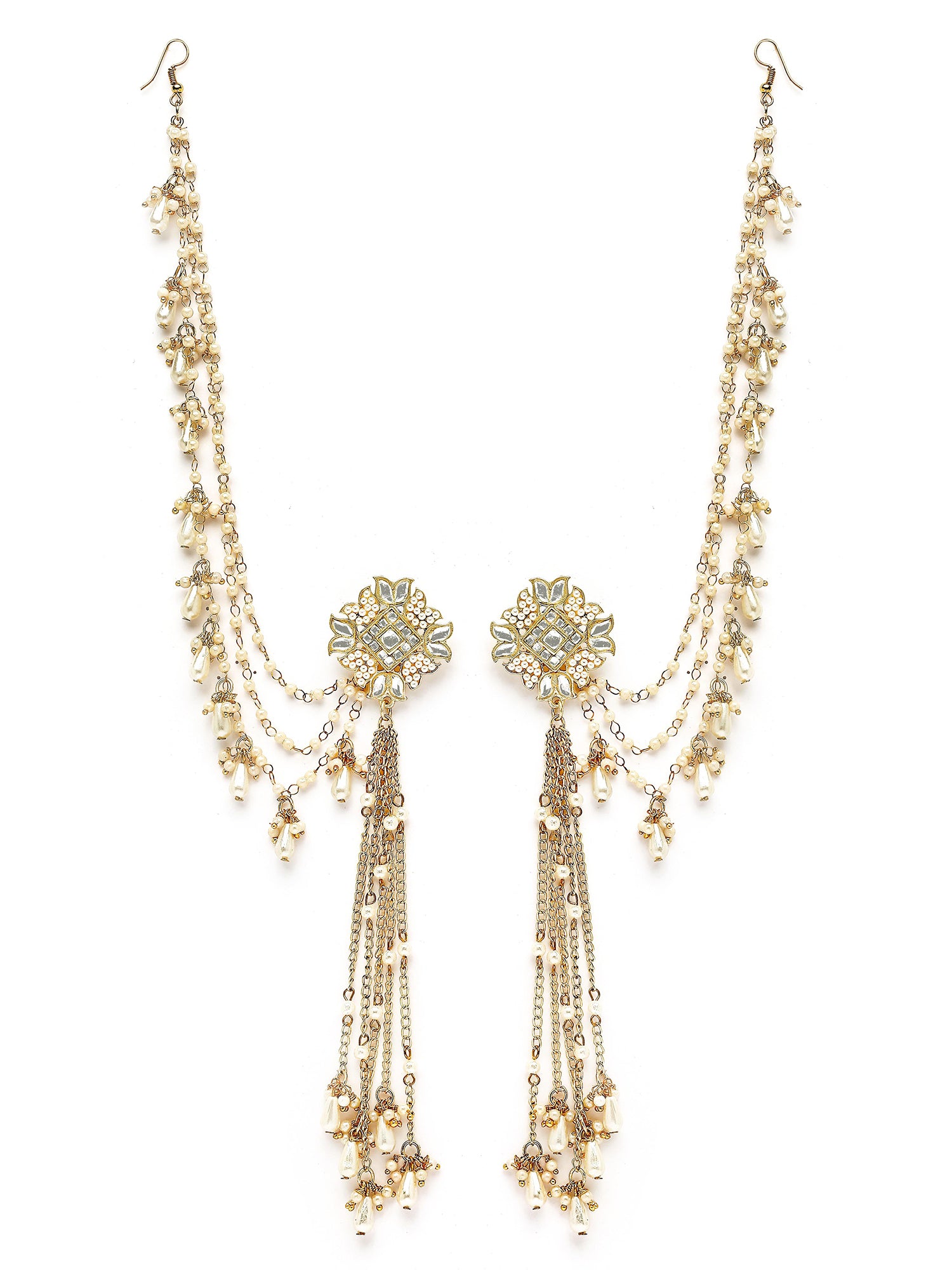 KARATCART Designer Gold-Plated Pearl and Kundan Kaanchain Earrings for Women
