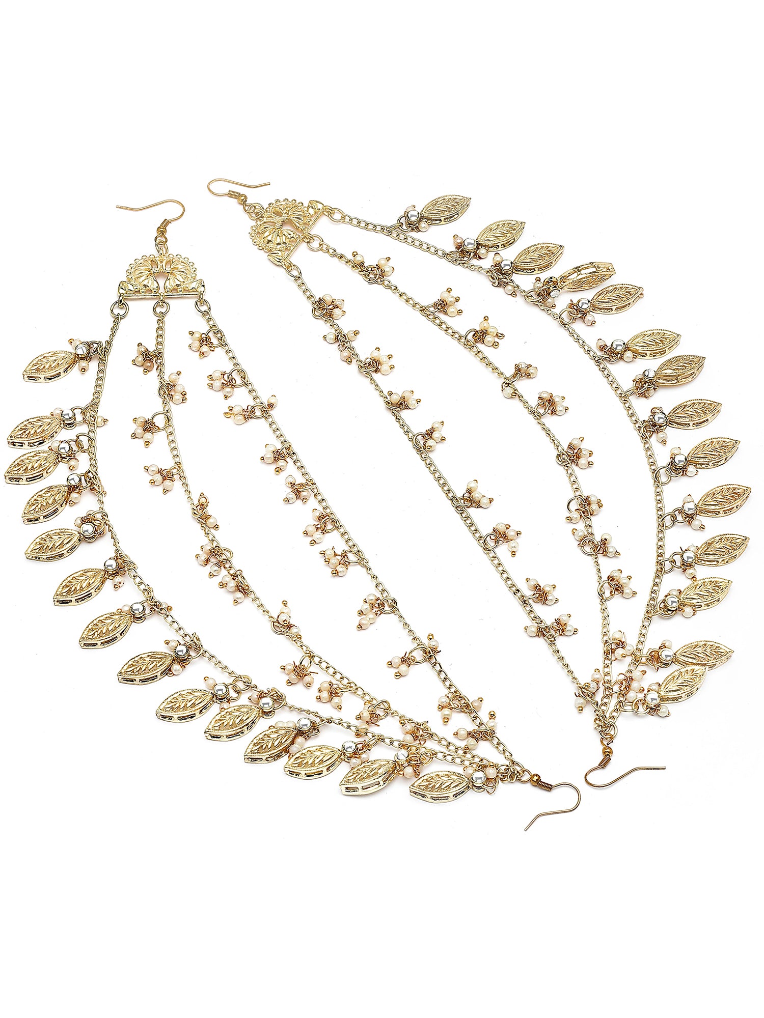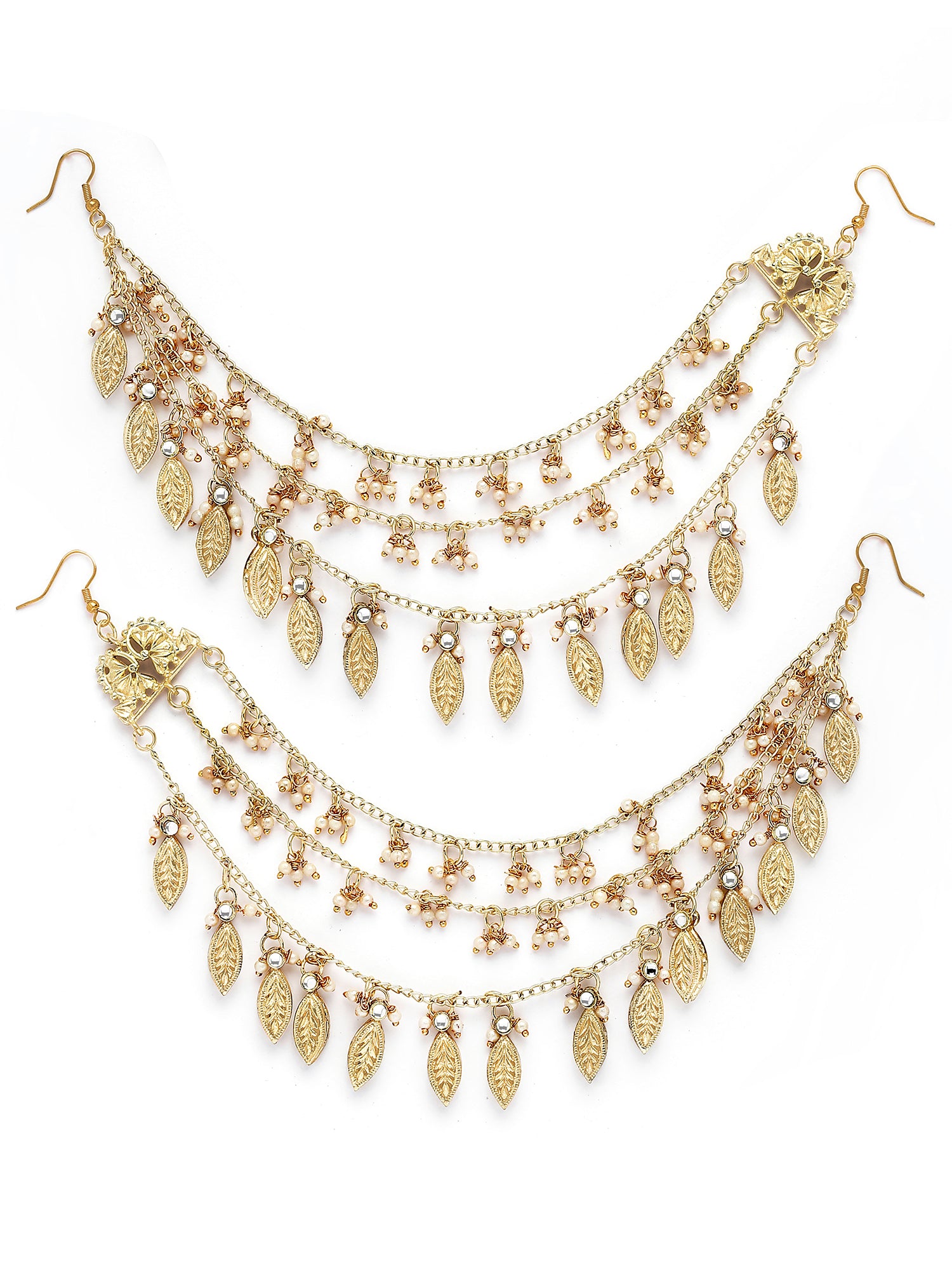 KARATCART Designer Gold-Plated Pearl and Kundan Kaanchain Earrings for Women