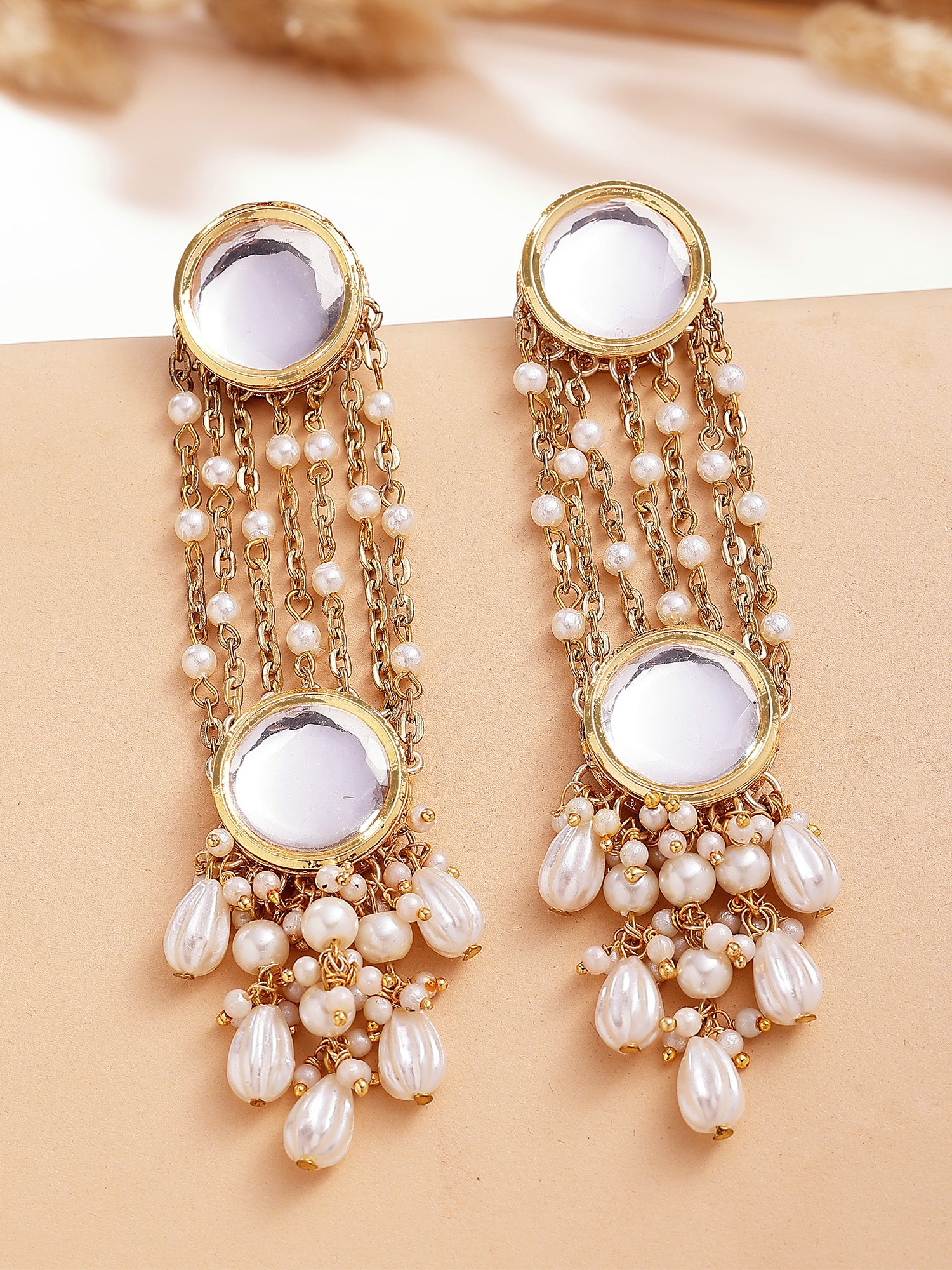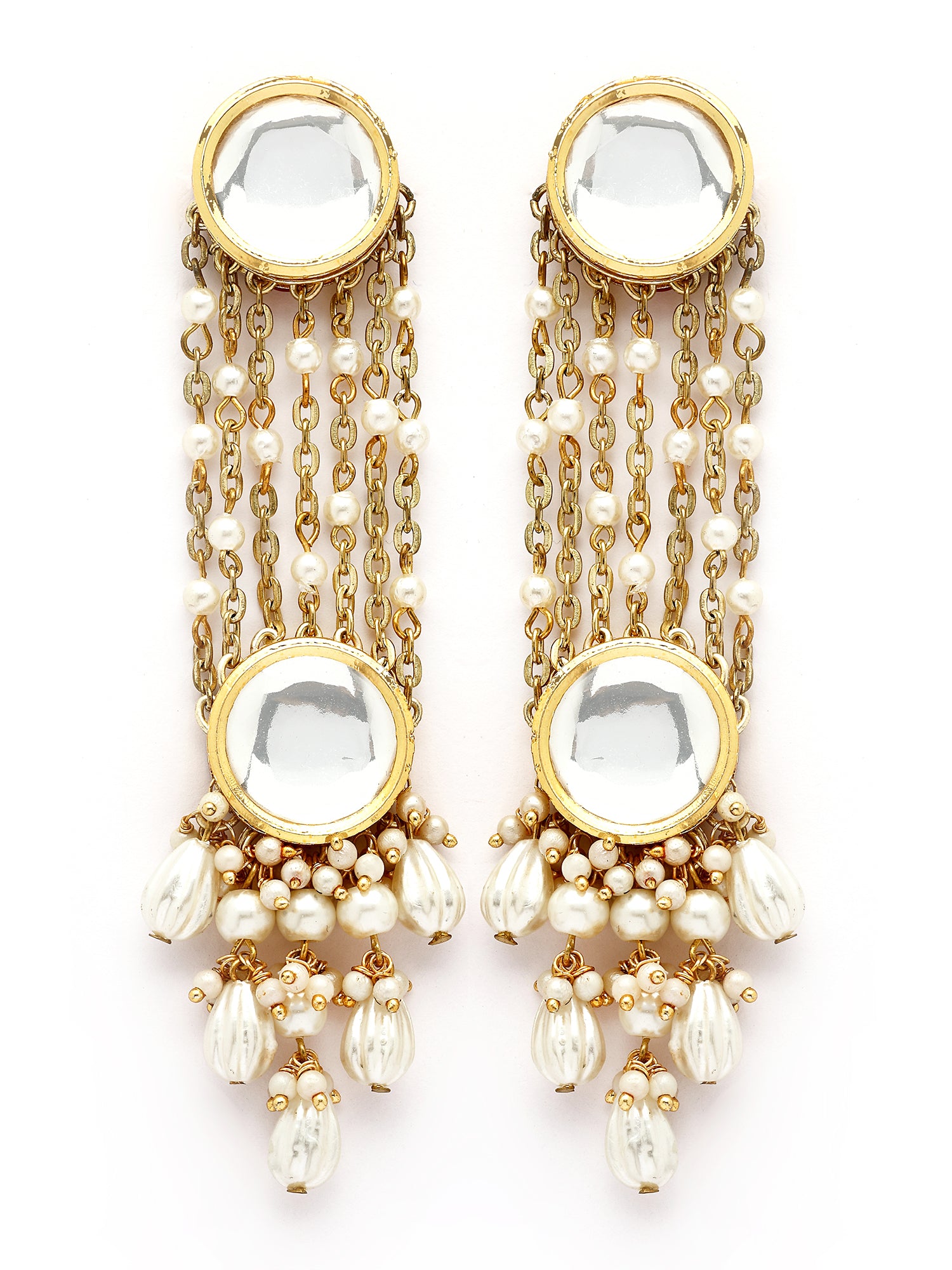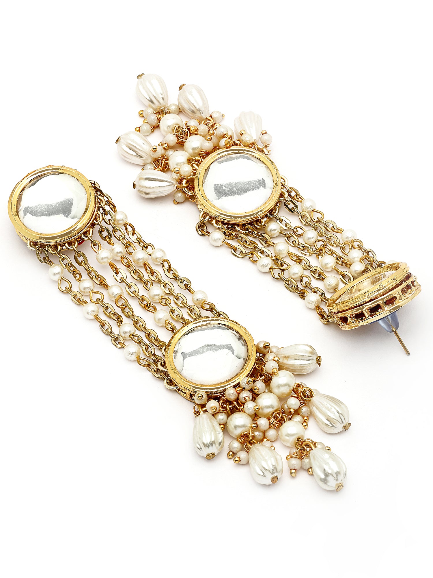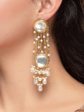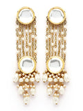 KARATCART Traditional Gold-Plated Polki Kundan and Pearl Dangler Earrings for Women