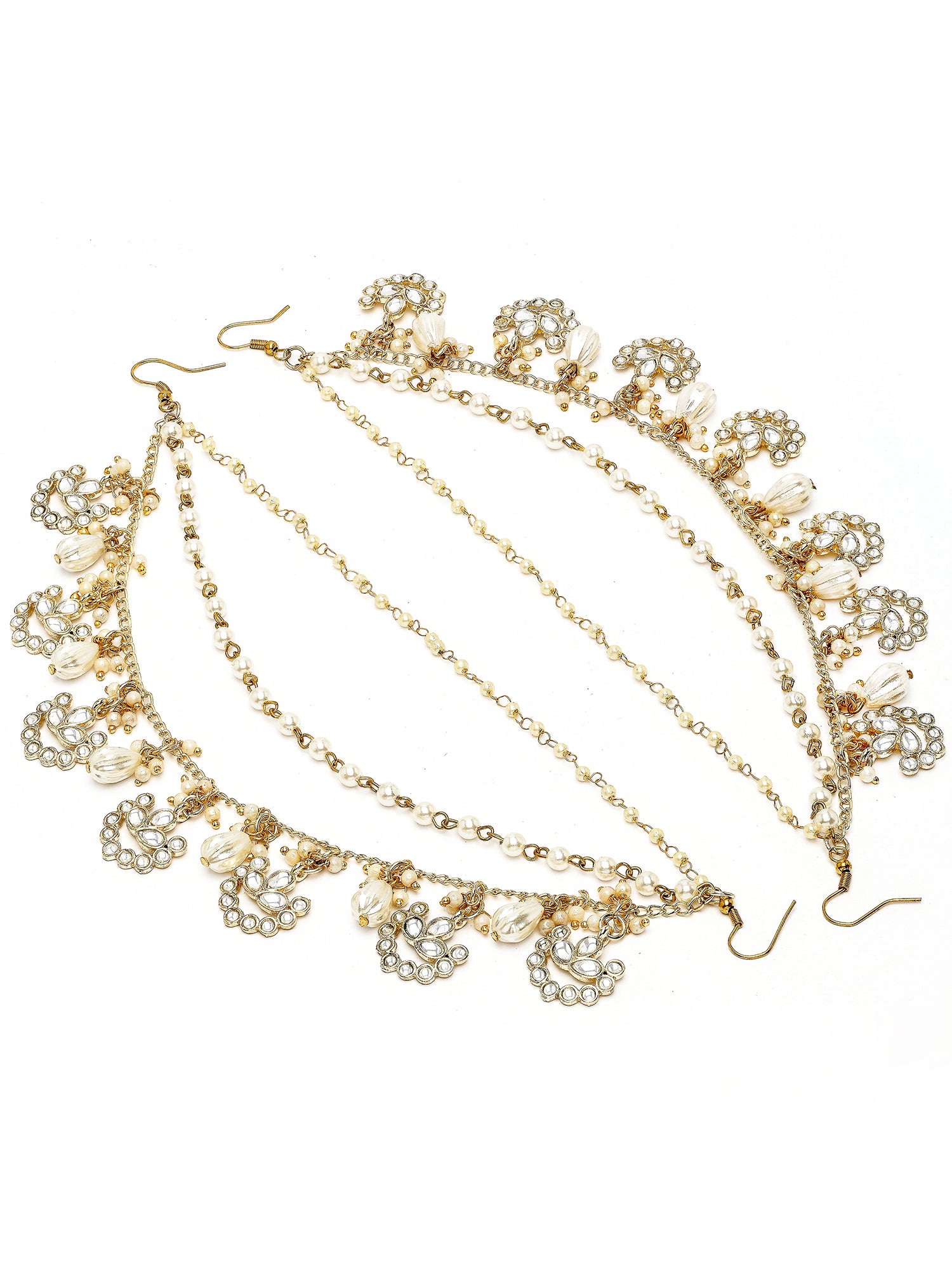 KARATCART Gold-Plated Traditional Pearl Beaded Kundan Kaanchain Earrings for Women