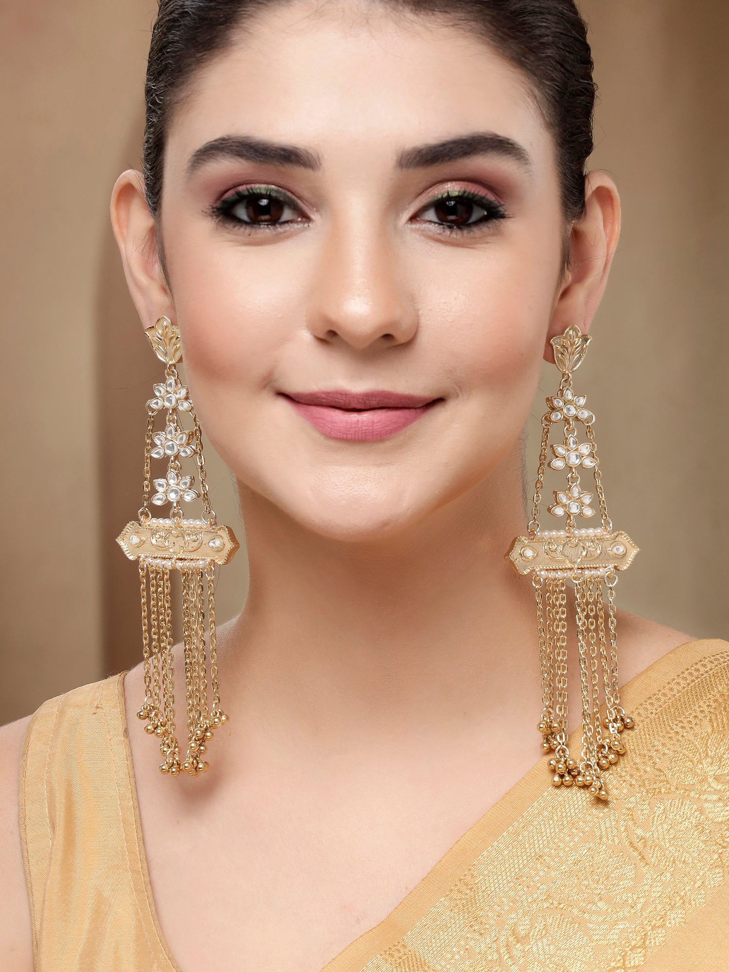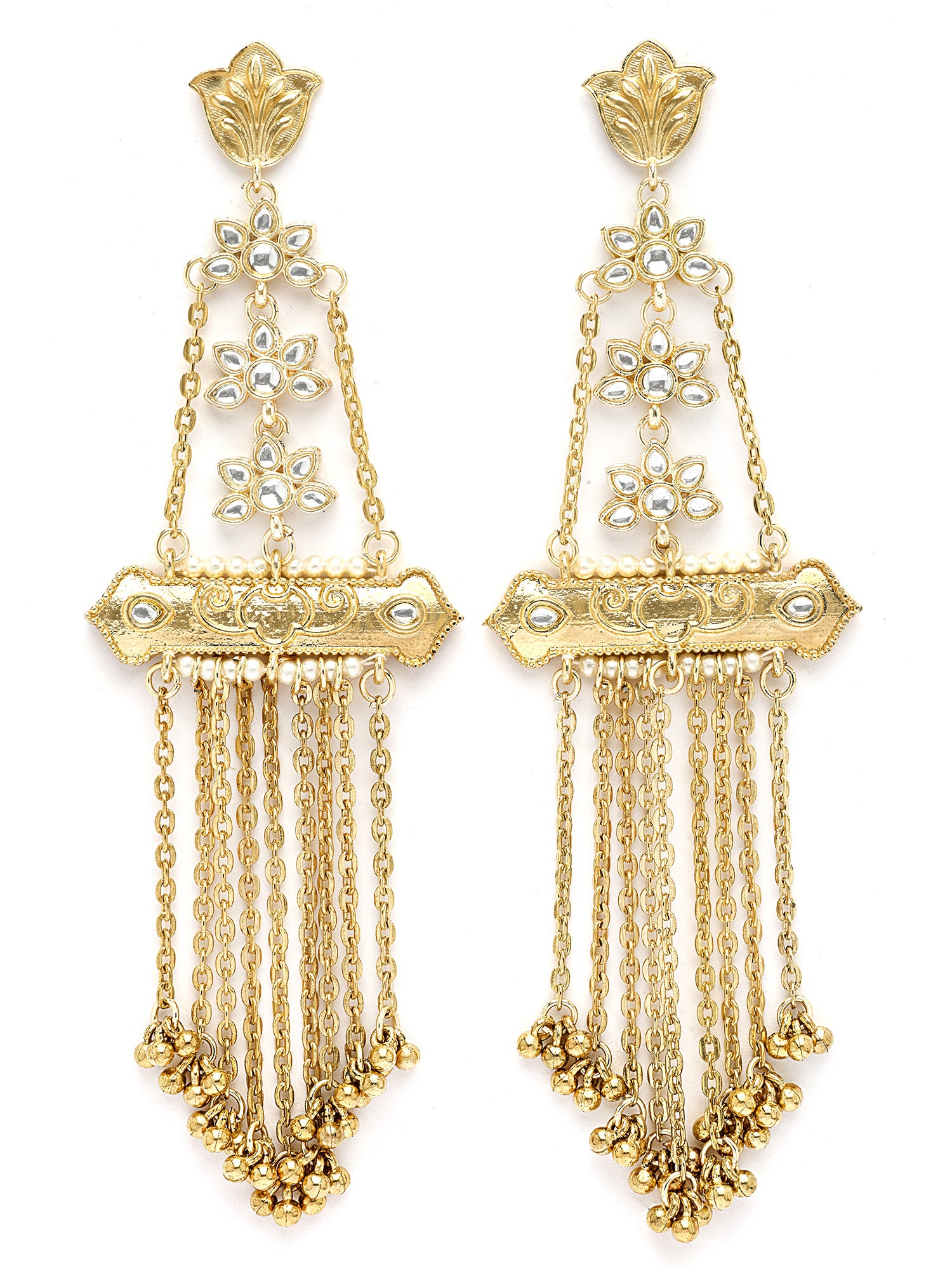 KARATCART Designer Gold-Plated Floral Multi-Chain Kundan Dangler Earrings for Women
