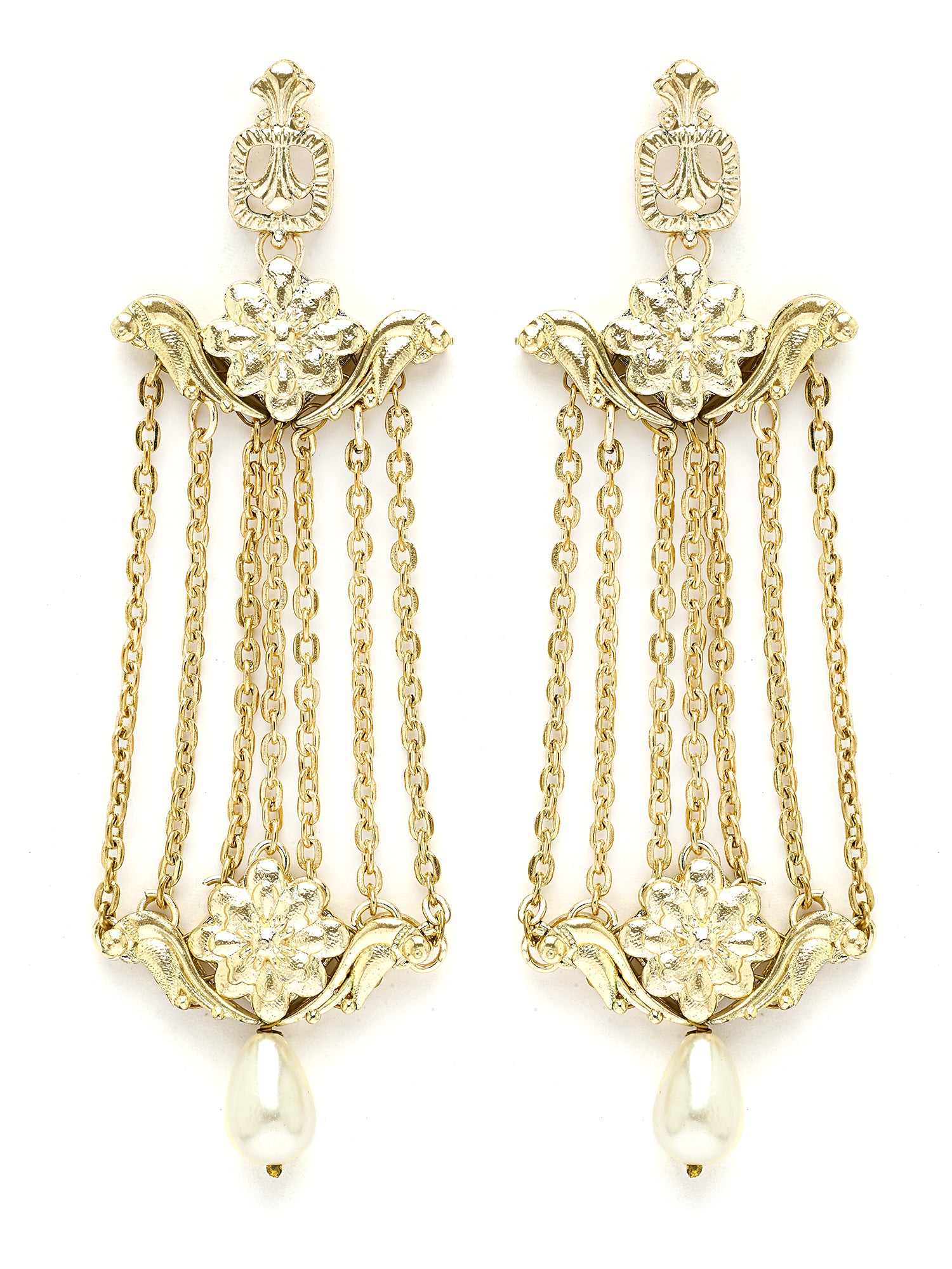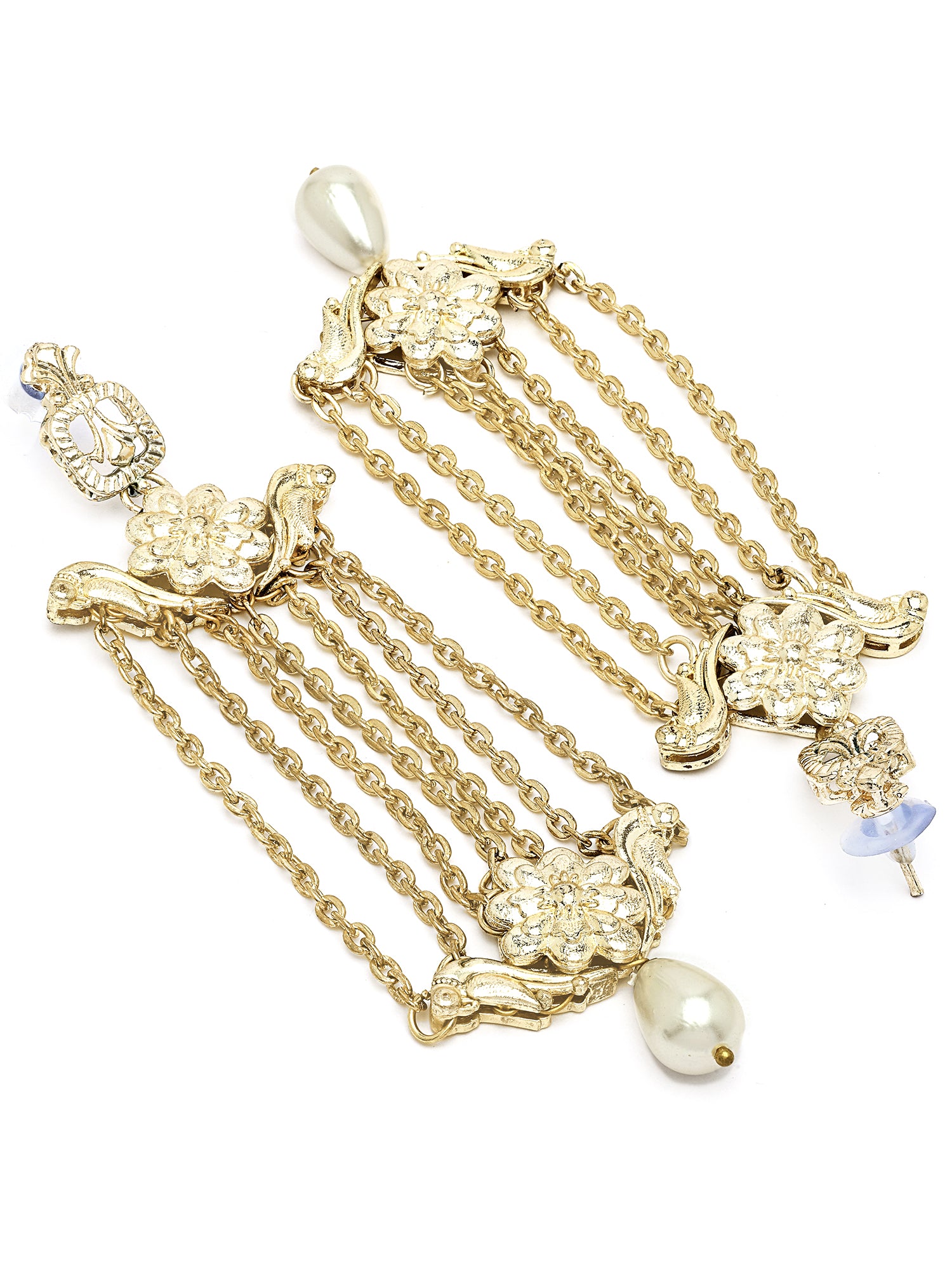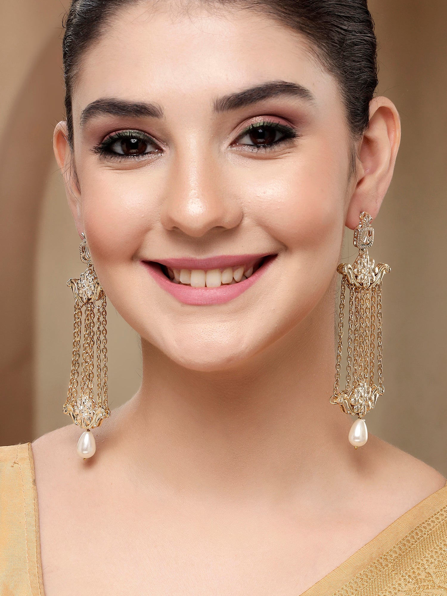 KARATCART Designer Gold-Plated Floral Multi-Chain Kundan Dangler Earrings for Women