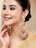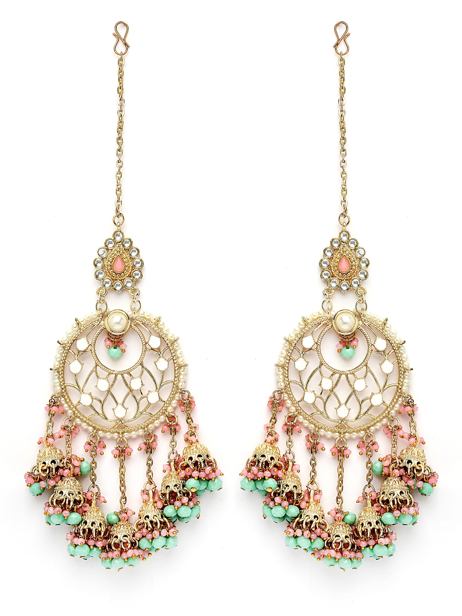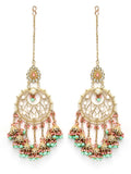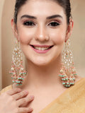 KARATCART Designer Gold-Plated Pink and Blue Crystal Kundan Dangler Earrings for Women