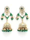 KARATCART Gold-Plated Green Enamel Floral Design Kundan Jhumki Earrings for Women