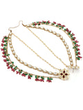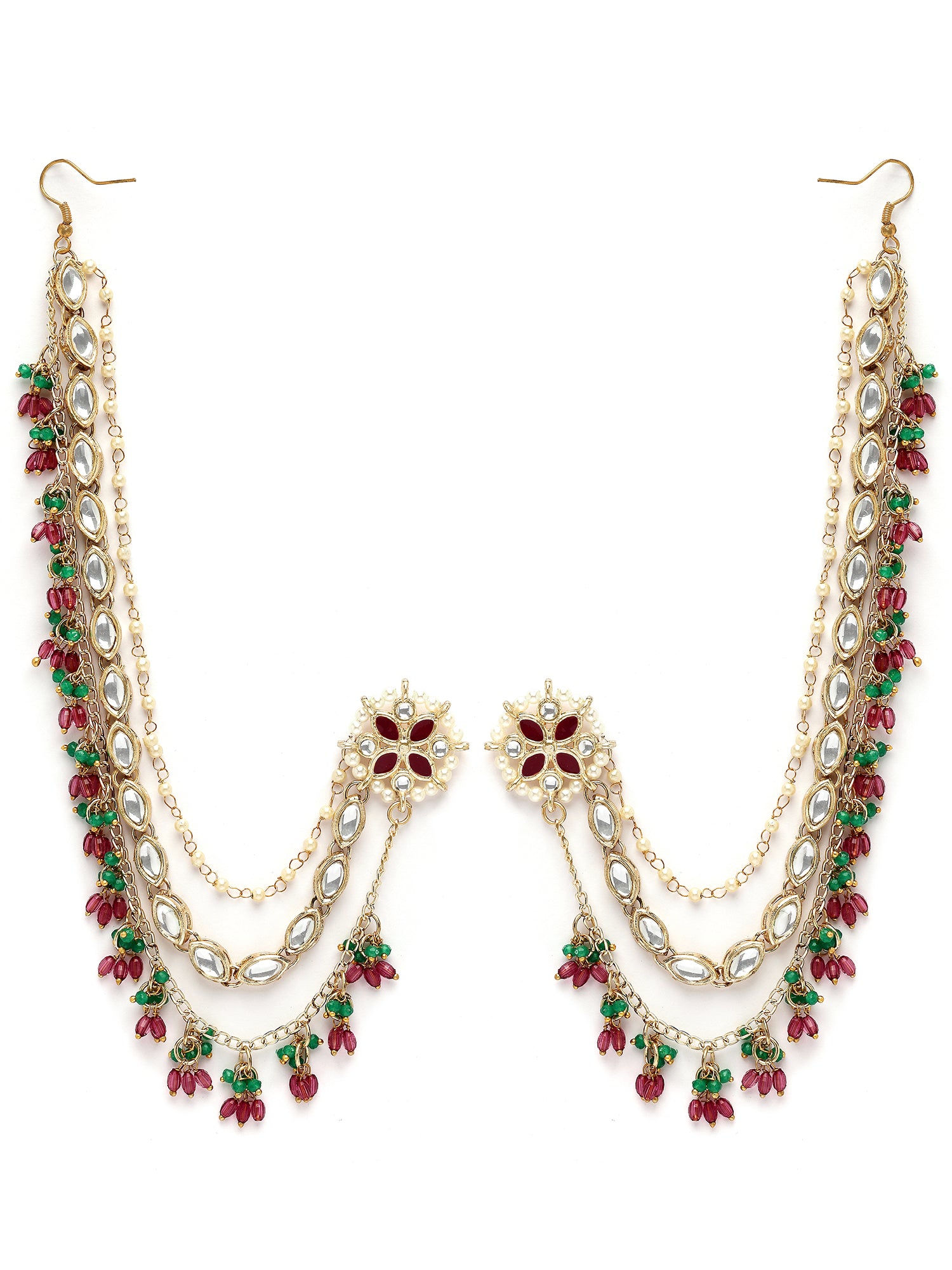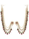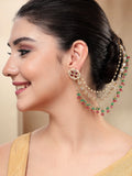 KARATCART Ethnic Gold-Plated Pink and Green Crystal Kundan Kaanchain Earrings for Women