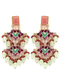 KARATCART Designer Gold-Plated Pink and Green Enamel Dangler Earrings for Women
