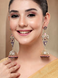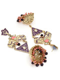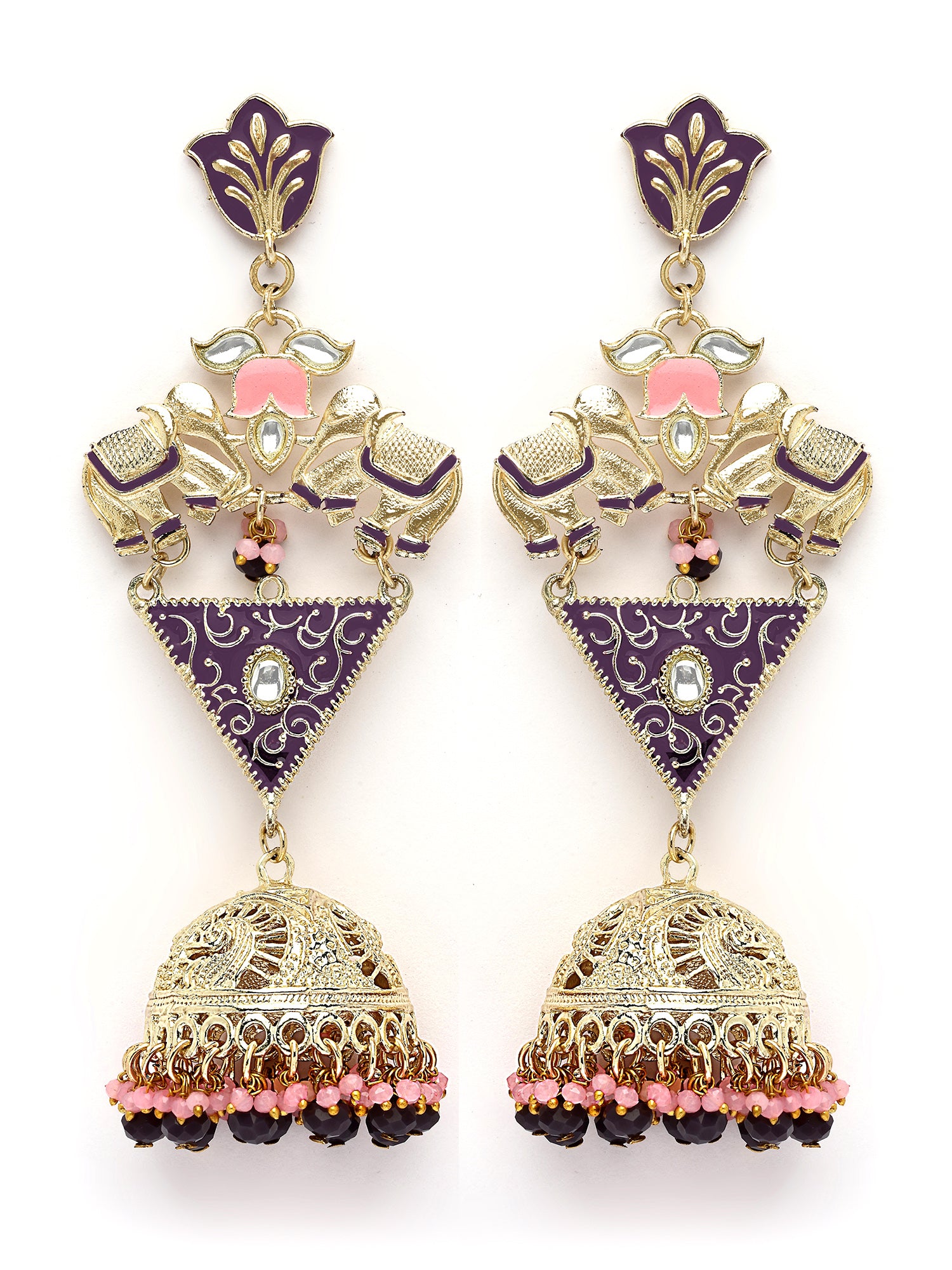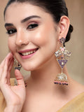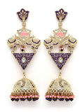 KARATCART Designer Gold-Plated Purple and Pink Enamel Dangler Jhumki Earrings for Women