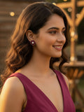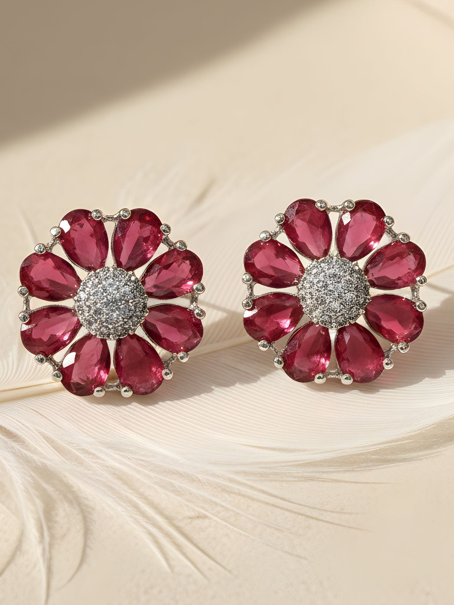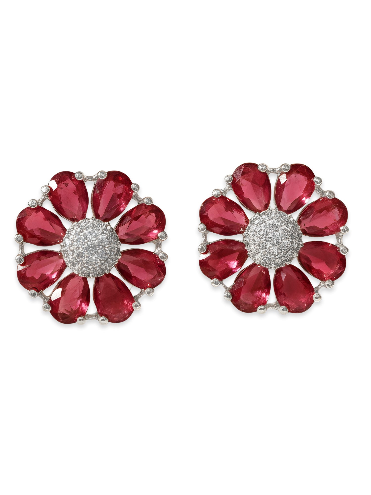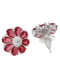33KARATCART Classic Red American Diamond Silver-Plated Floral Stud Earrings for Women210056