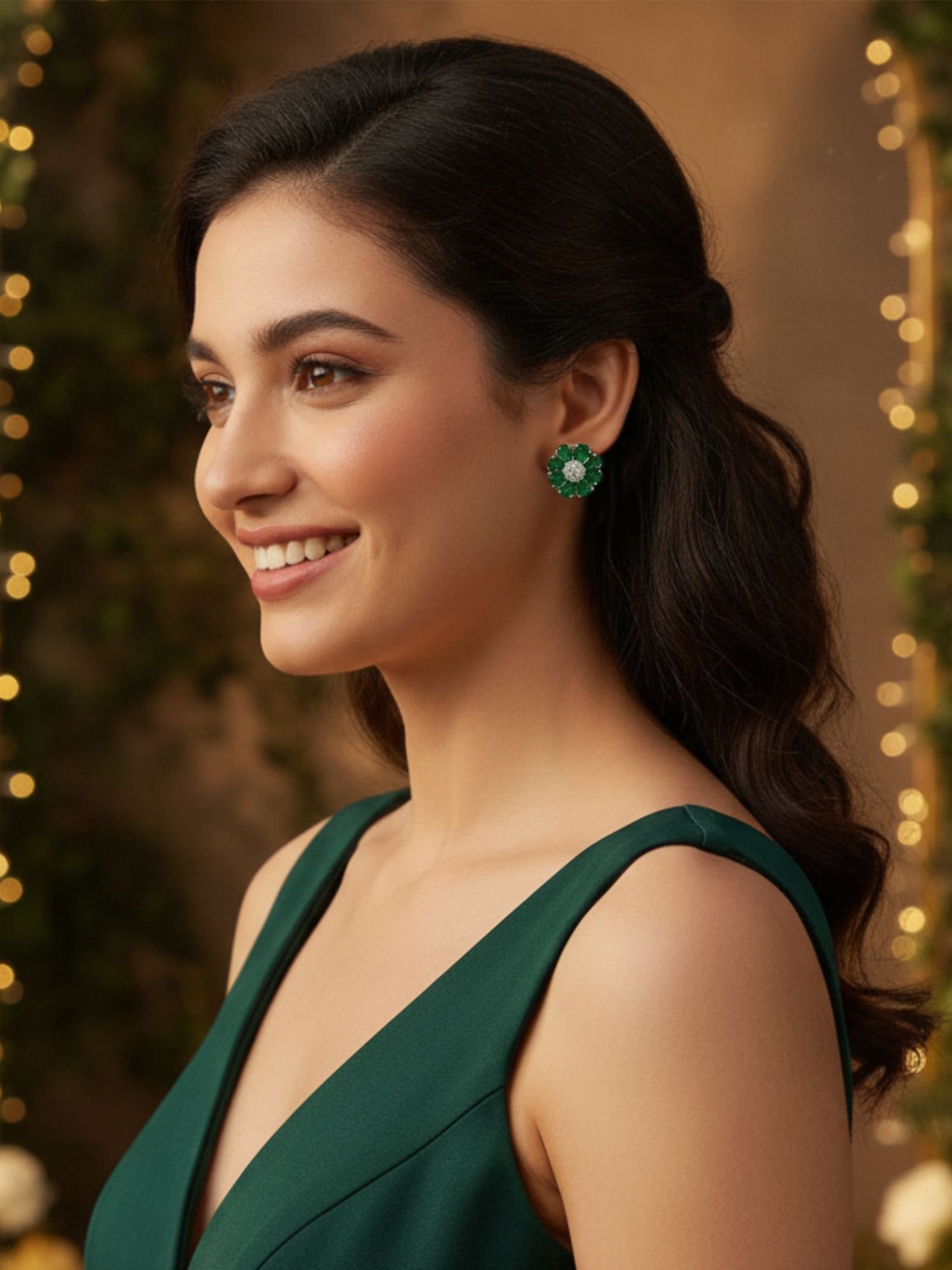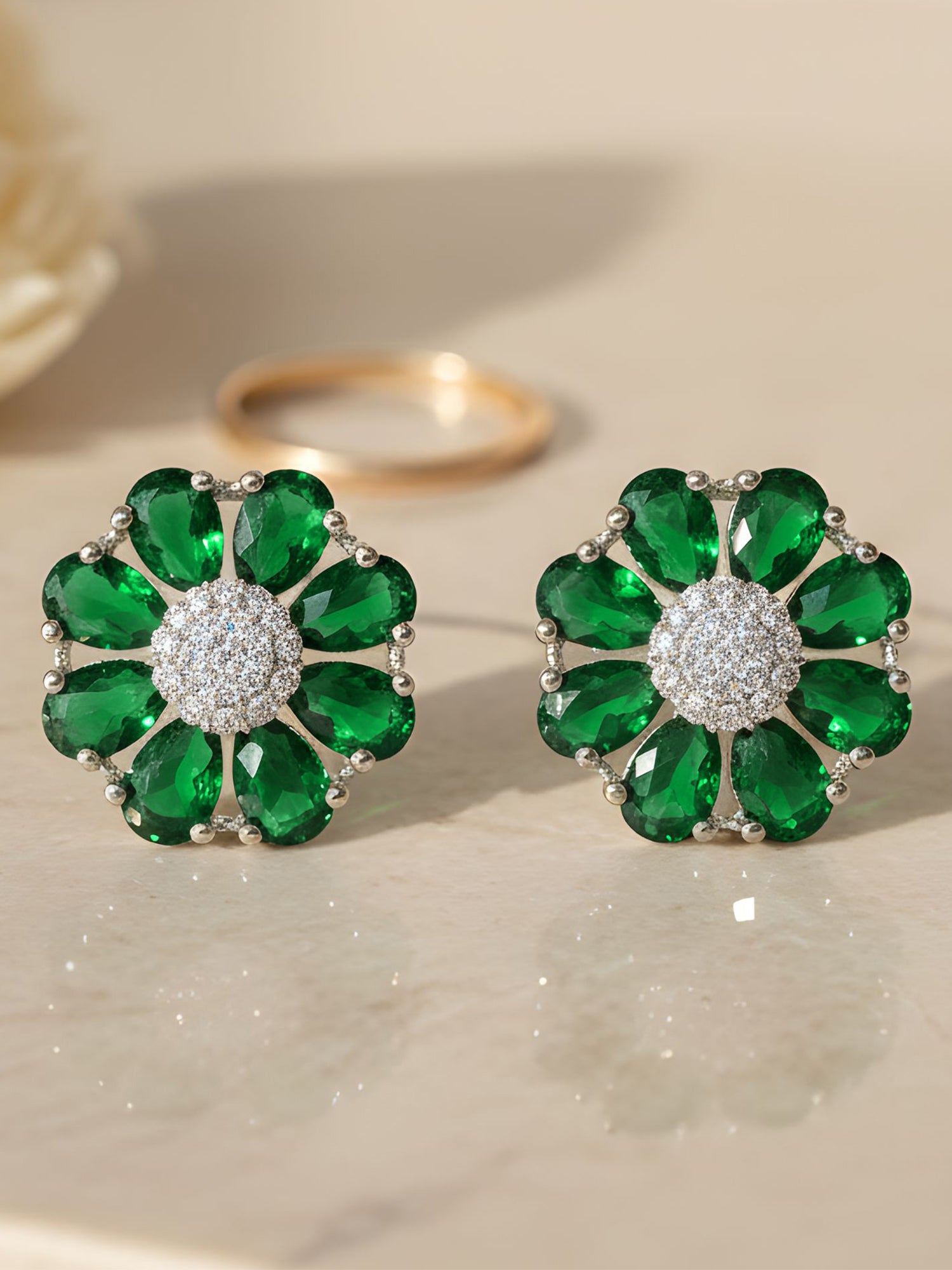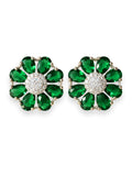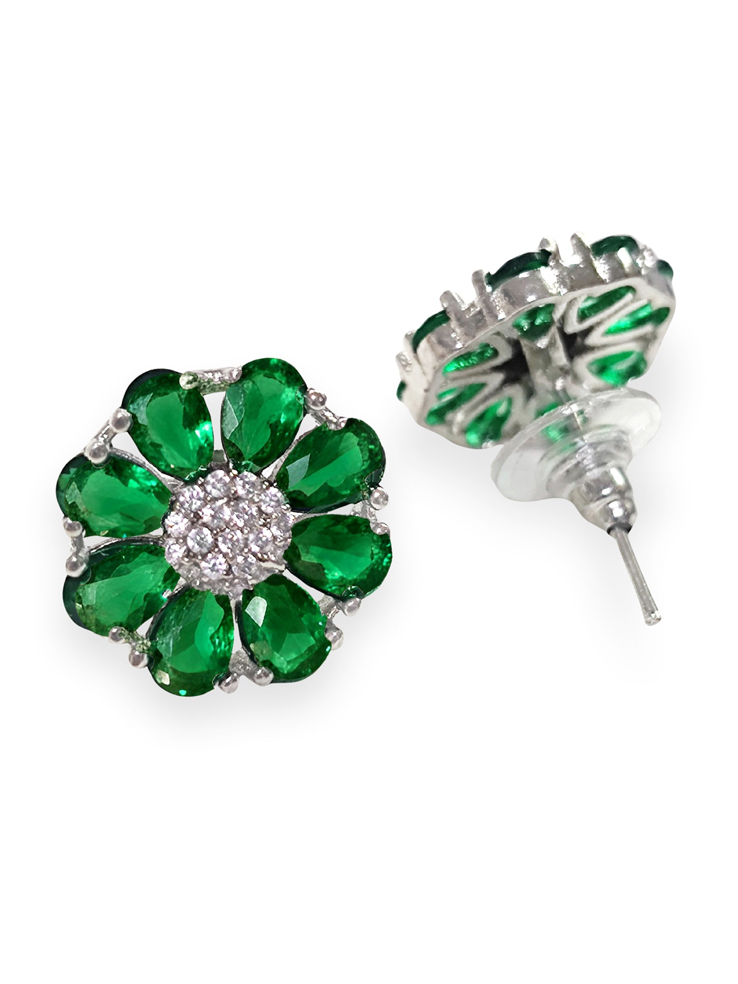 KARATCART Classic Green American Diamond Silver-Plated Floral Stud Earrings for Women