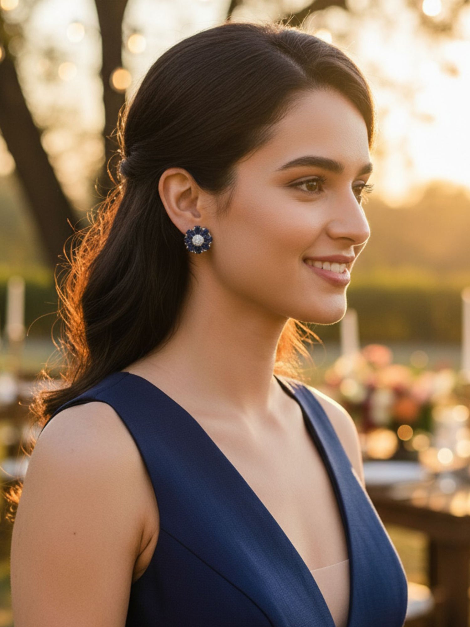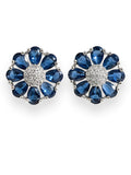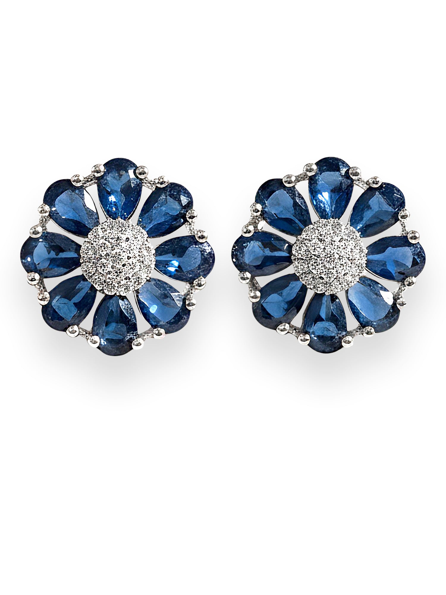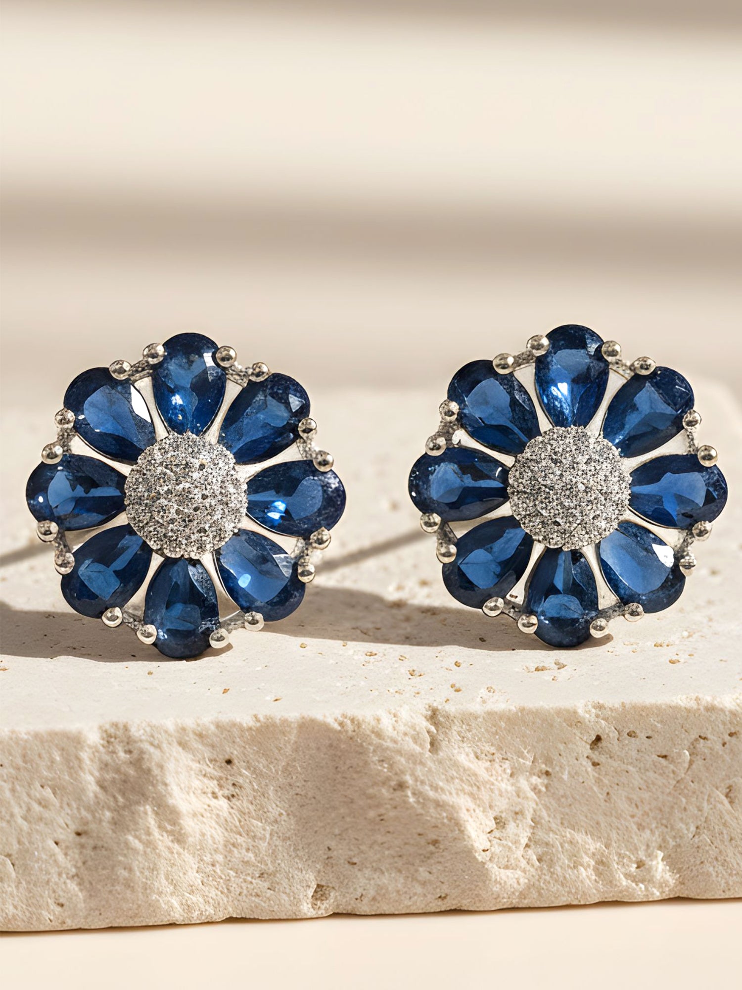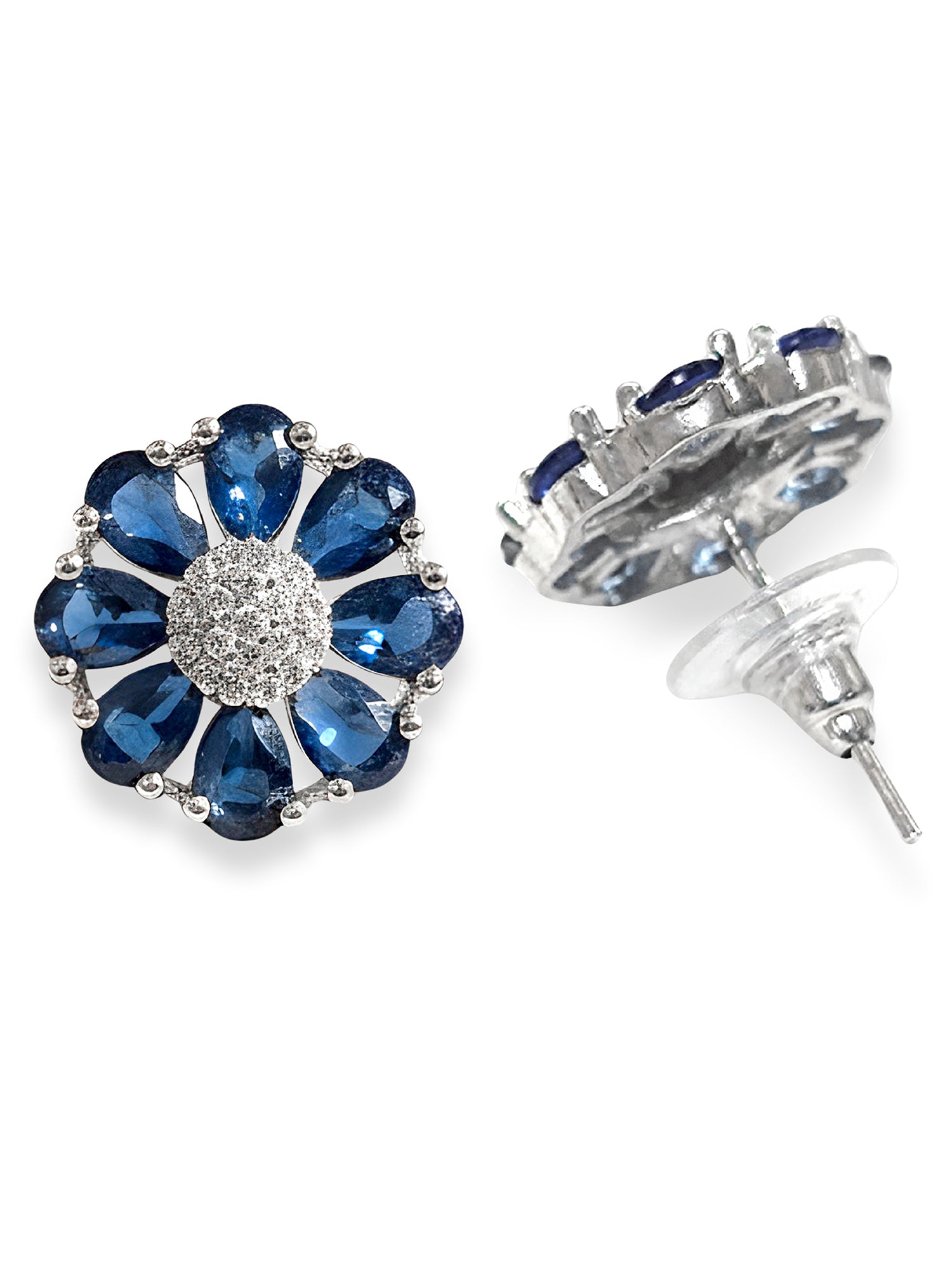 KARATCART Classic Blue American Diamond Silver-Plated Floral Stud Earrings for Women
