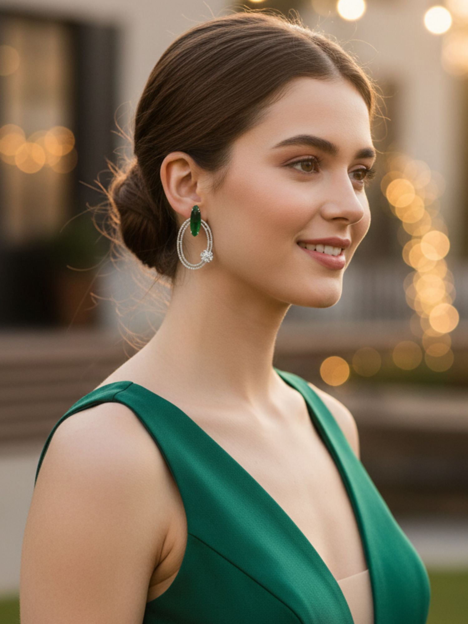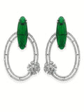 KARATCART Trendy Oval Loop Green American Diamond Silver-Plated Drop Earrings for Women