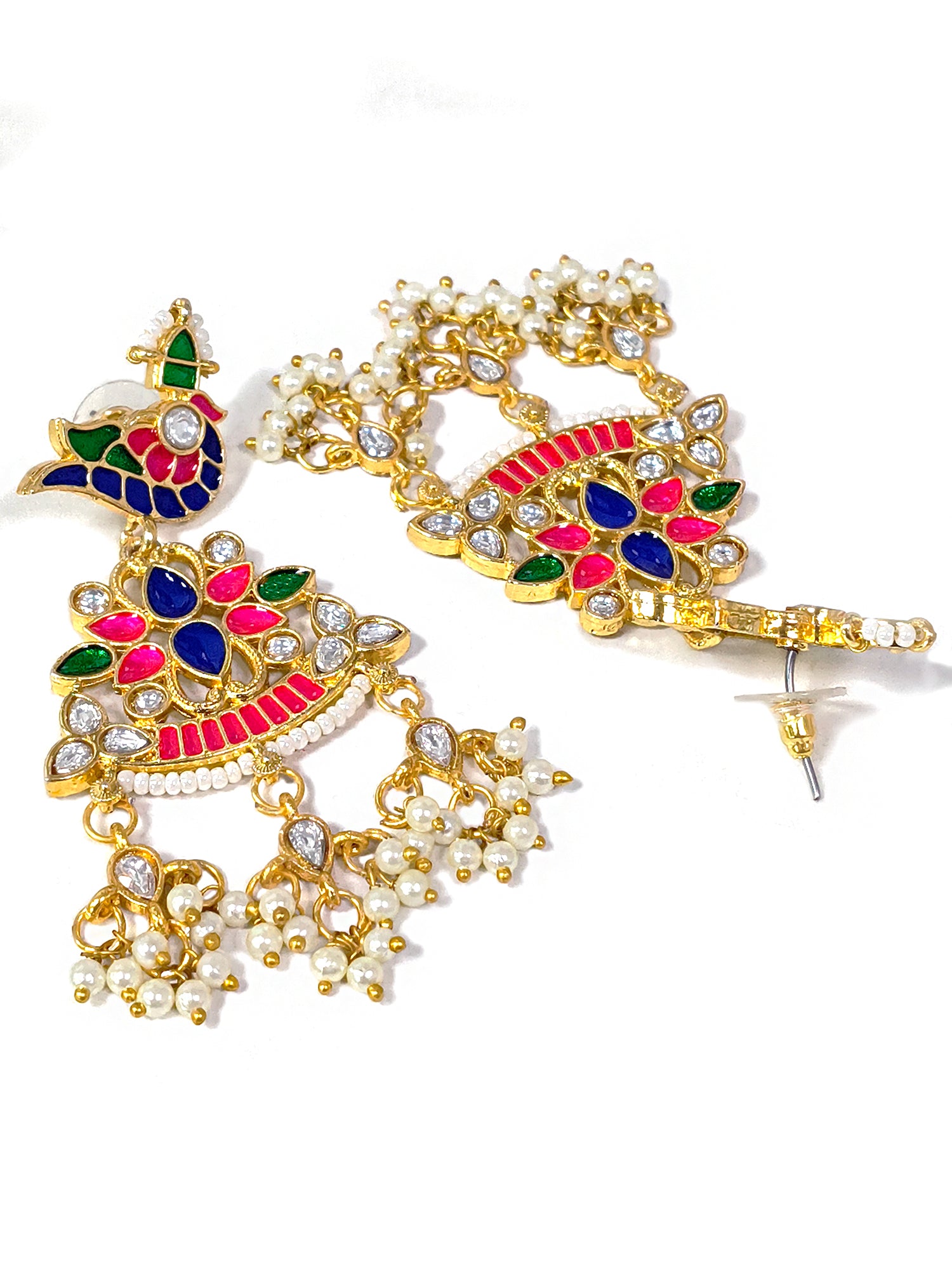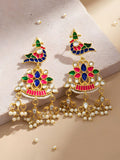 KARATCART Handcrafted Gold-Plated Peacock Motif Multicolor Enamel Kundan Dangler Earrings for Women