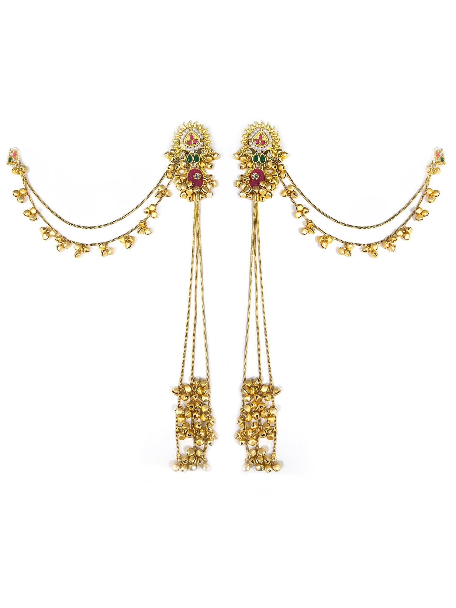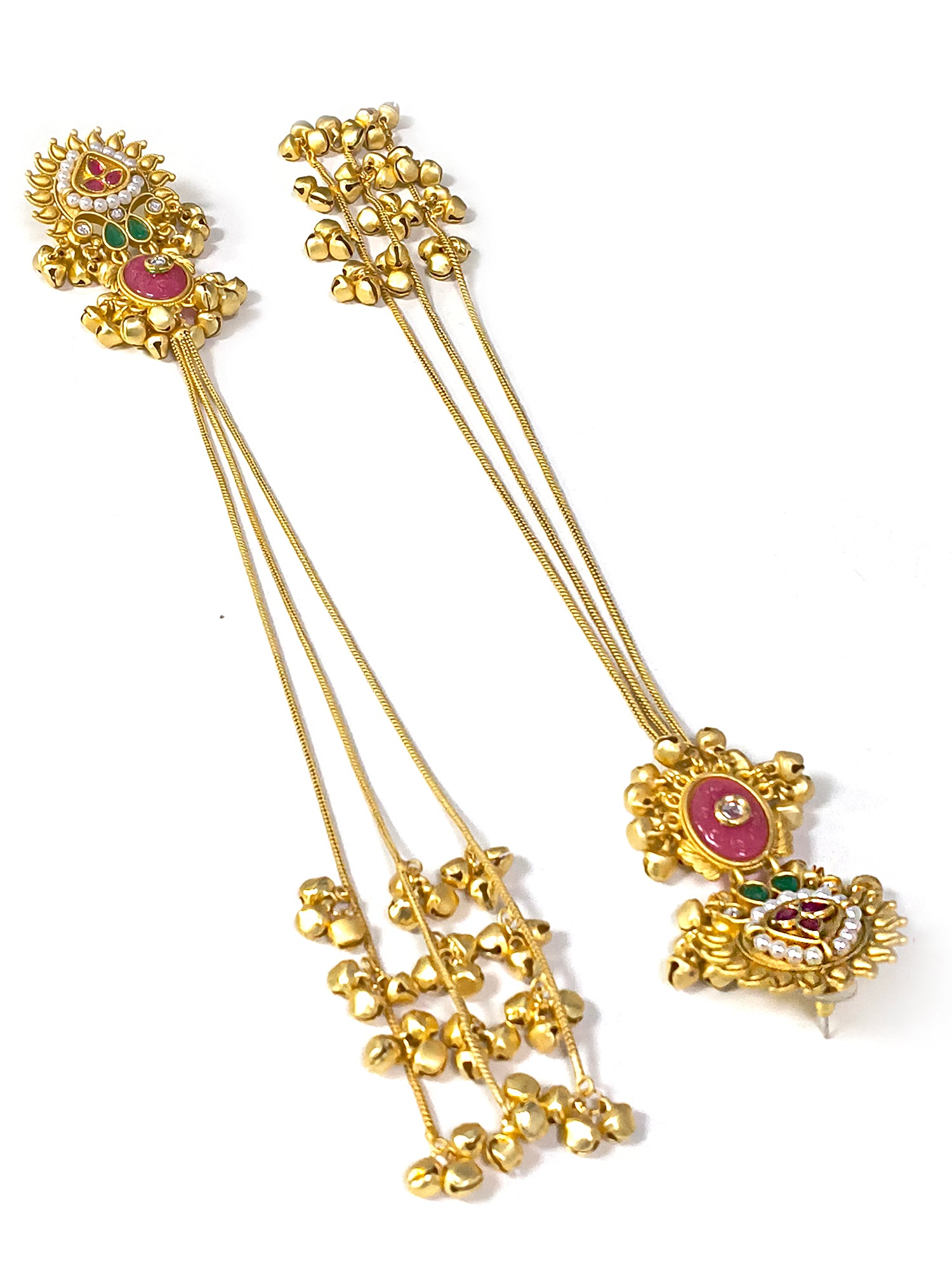 KARATCART Designer Gold-Plated Long Kashmiri Style Kaanchain Earrings for Women