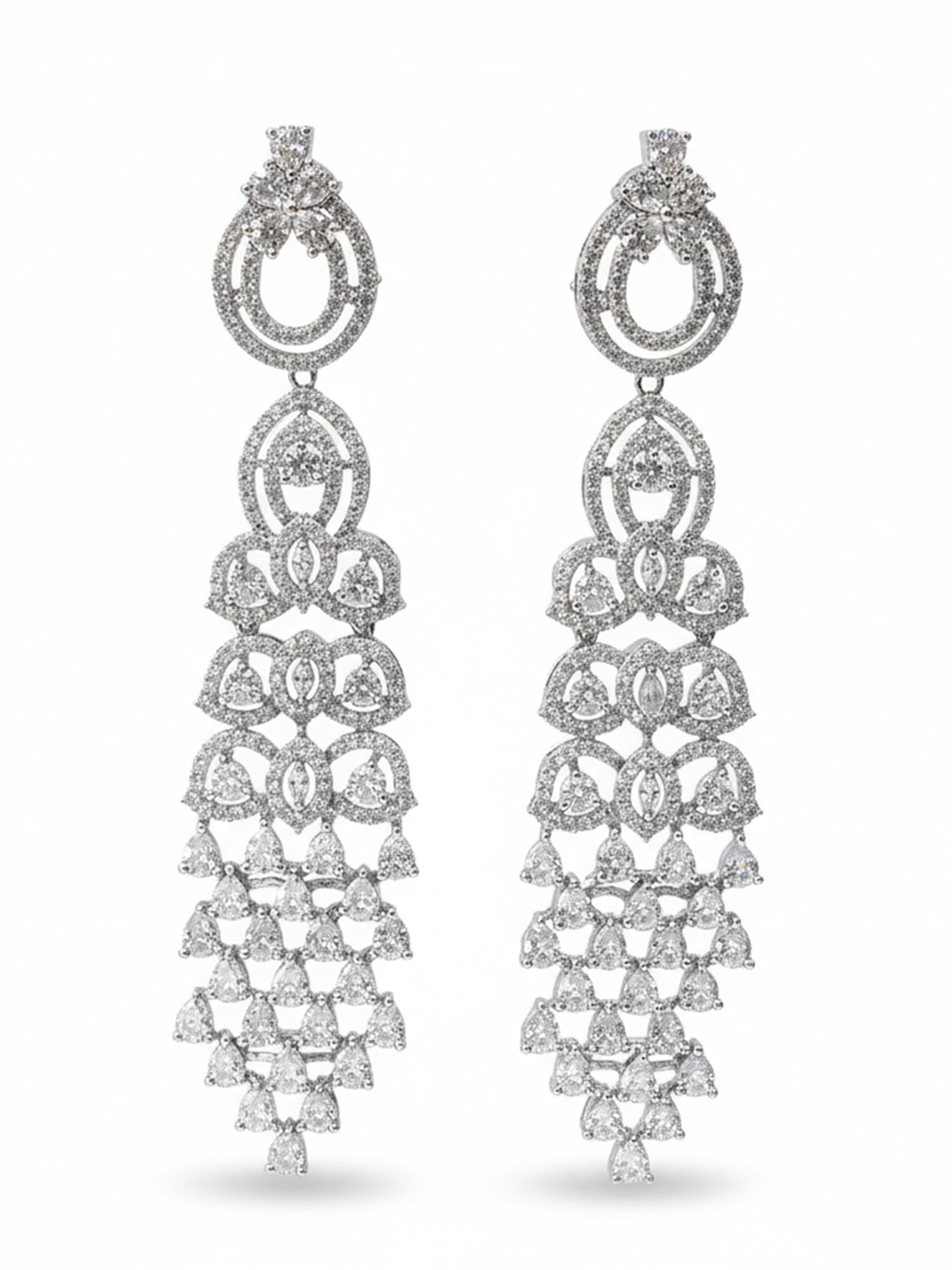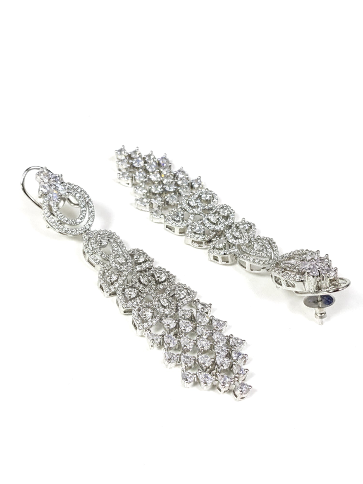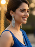 KARATCART Stylish Silver-Plated Long American Diamond Drop Earrings for Women