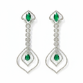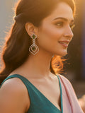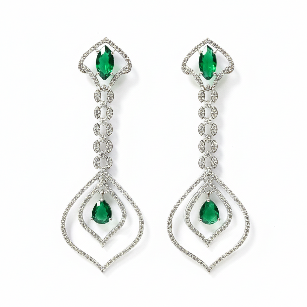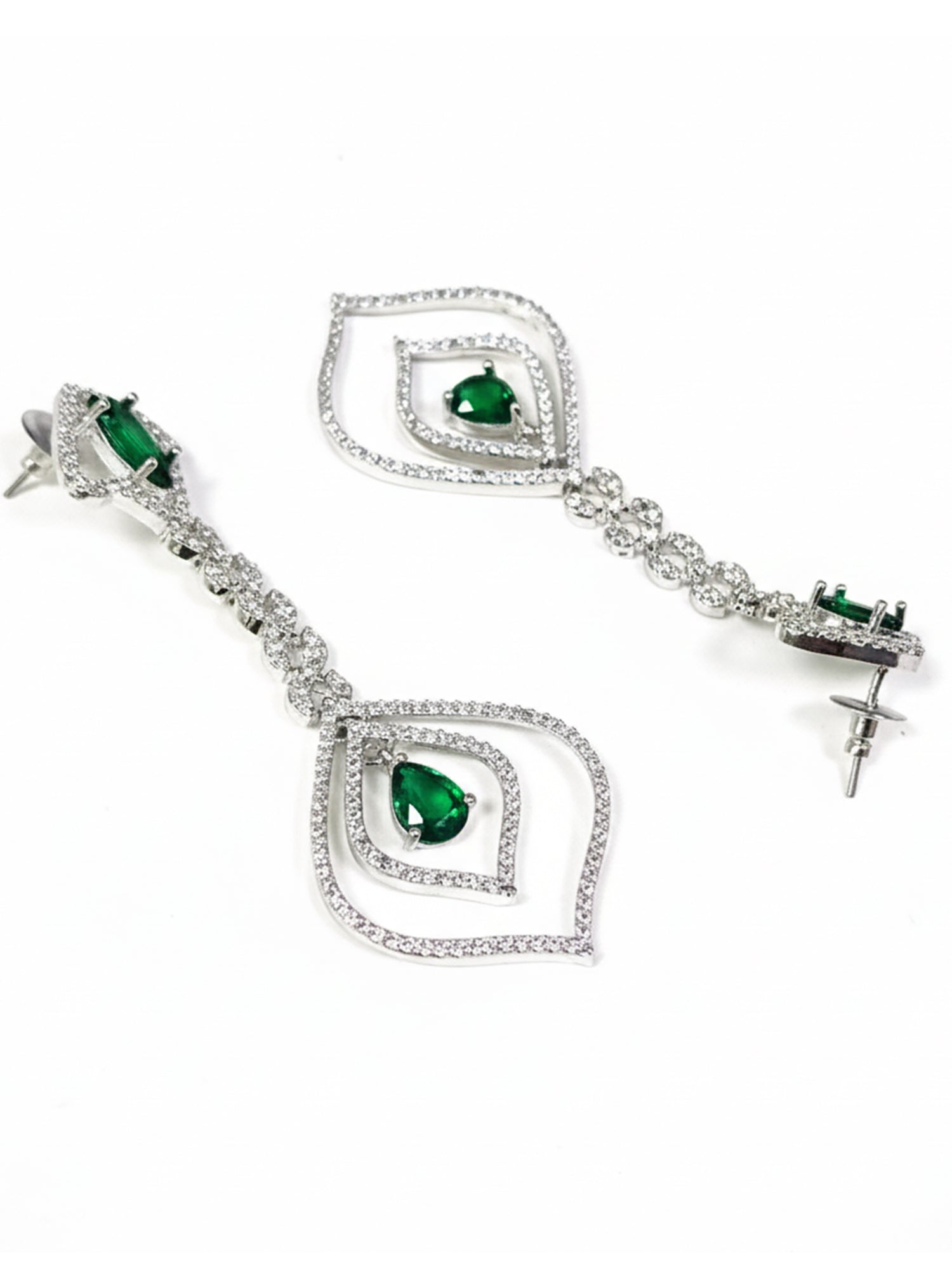 KARATCART Designer Silver-Tone Green American Diamond Long Drop Earrings for Women