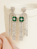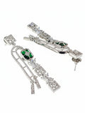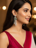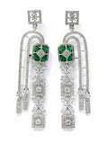 KARATCART Sparkling Green American Diamond Silver-Plated Floral Drop Earrings for Women