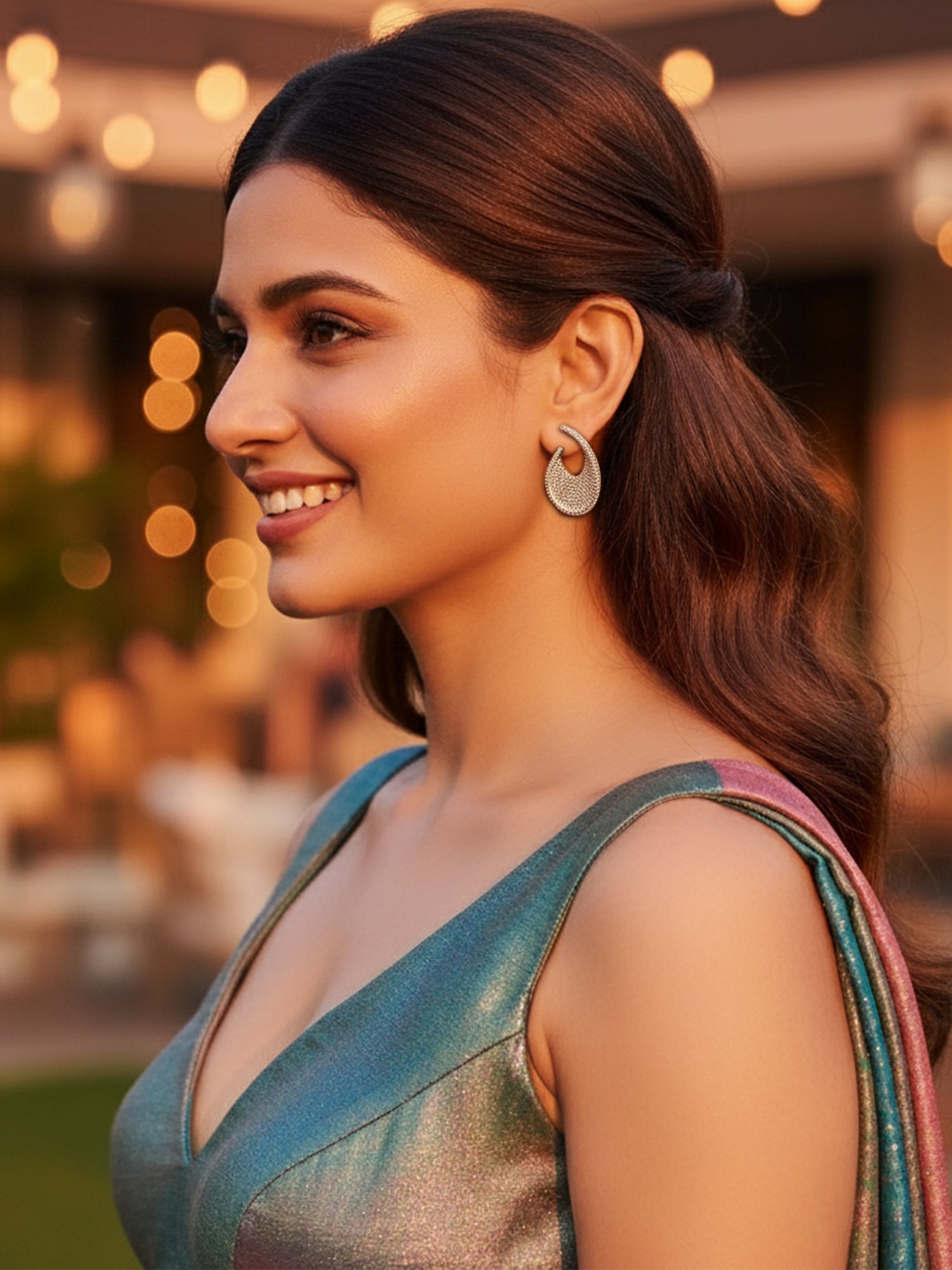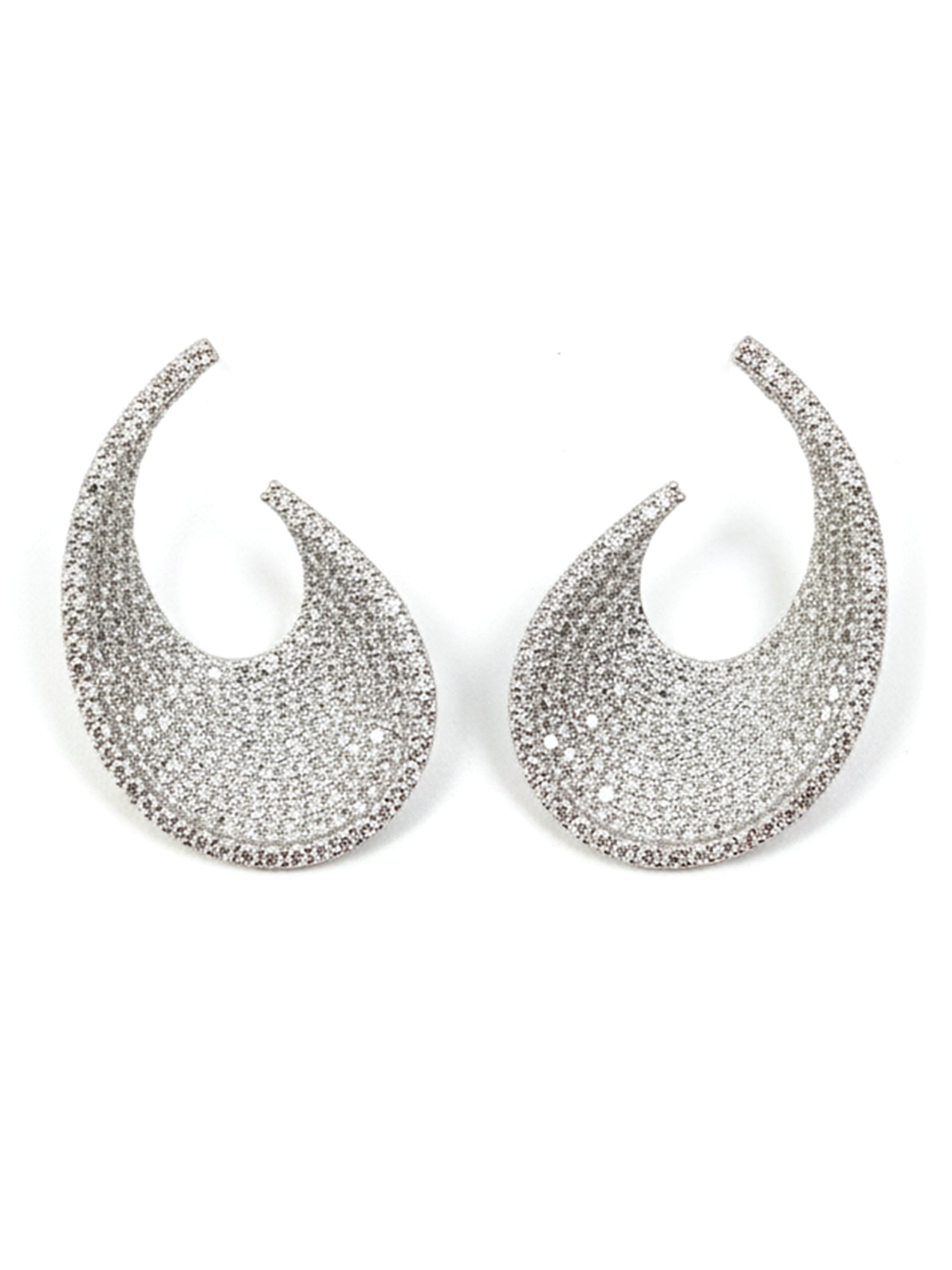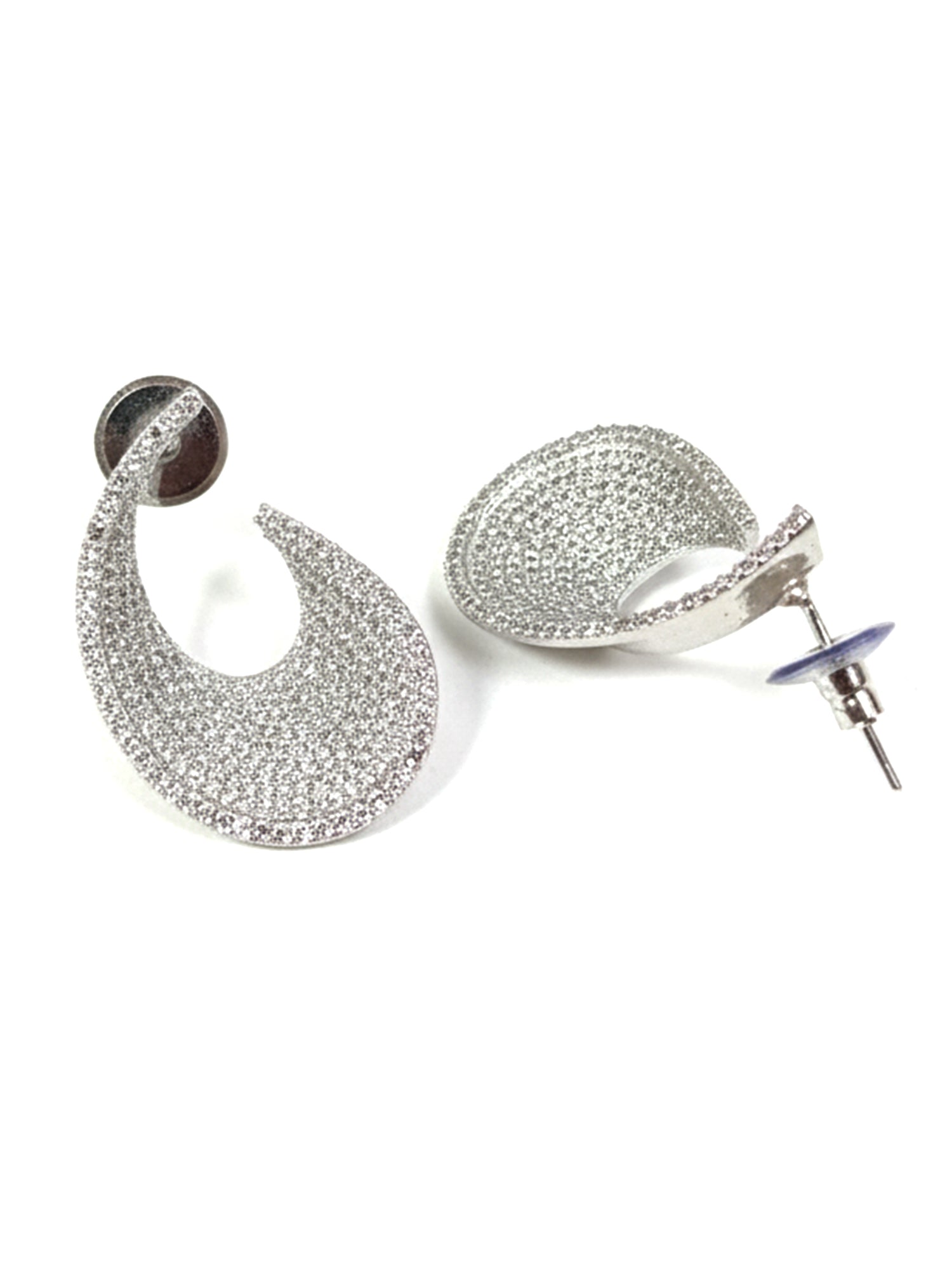 KARATCART Silver-Plated Glamorous Wave-Design American Diamond Stud Earrings for Women