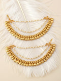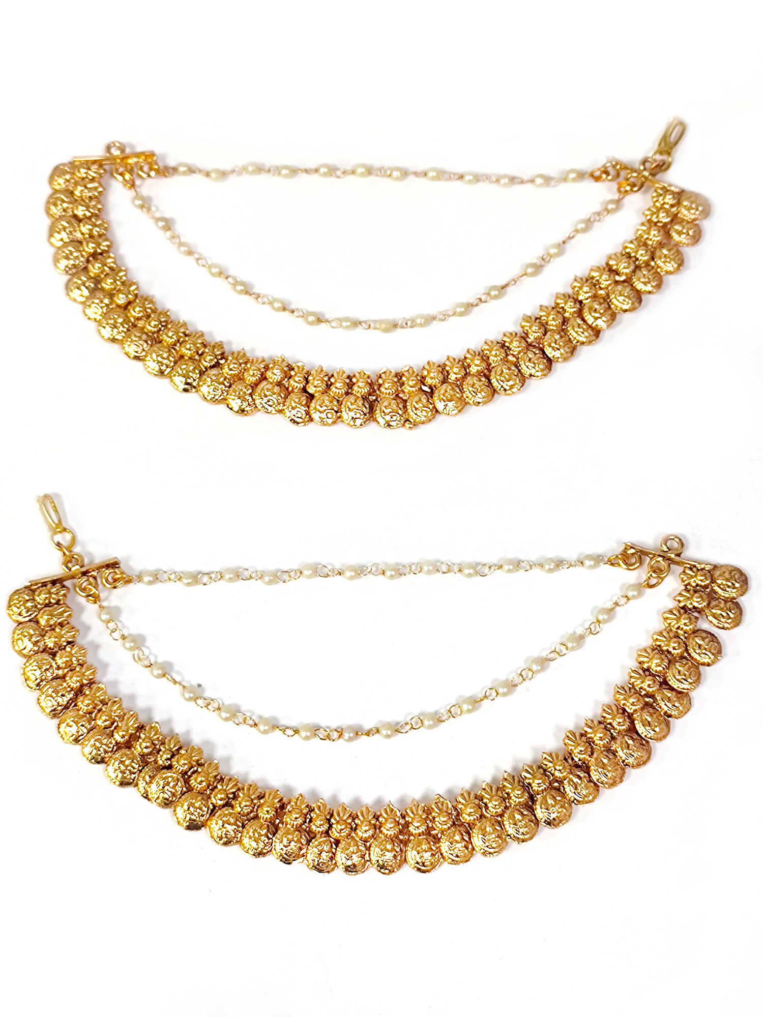 KARATCART Traditional Gold-Plated Temple Style Coin Kaanchain Earrings for Women