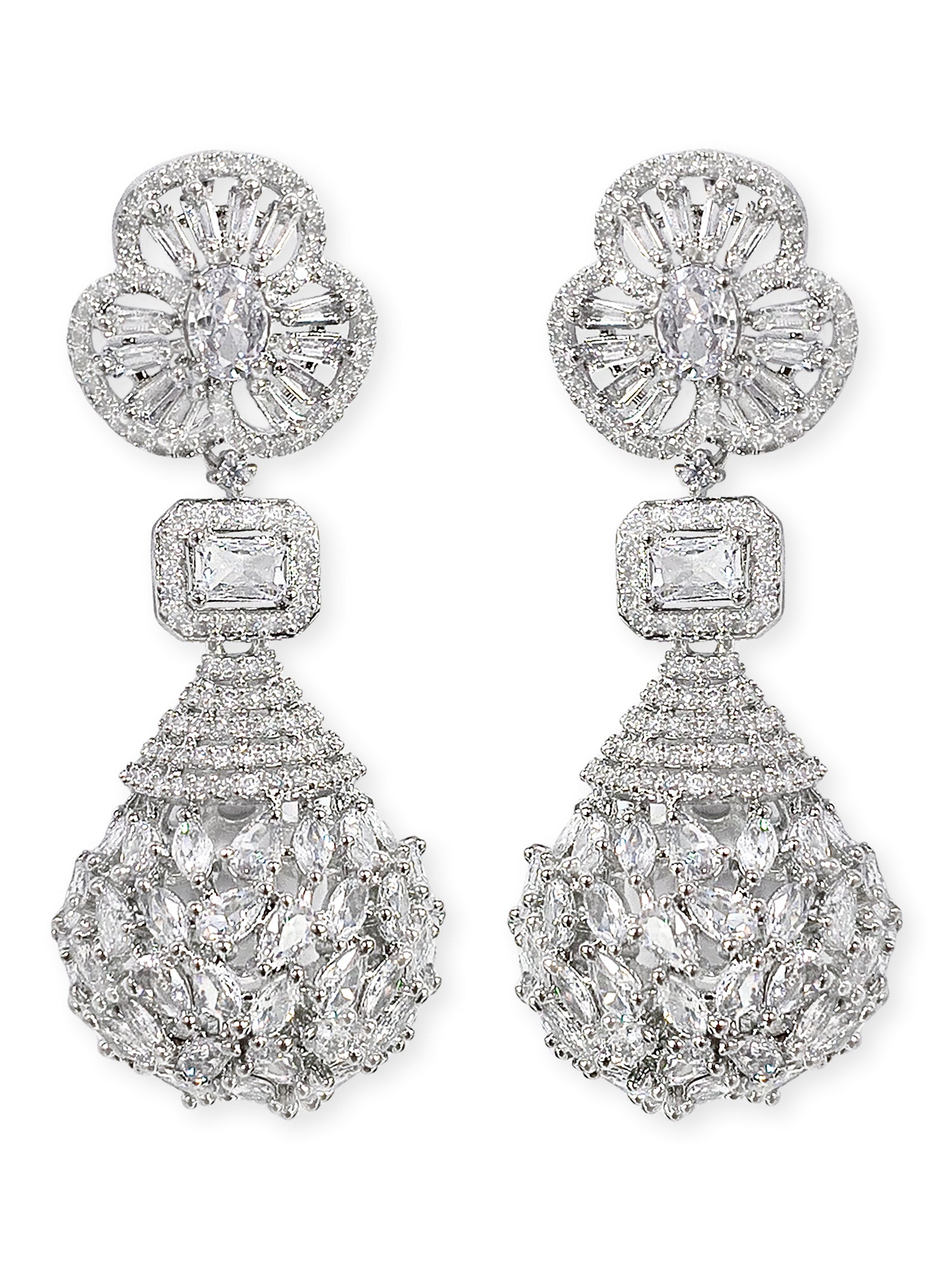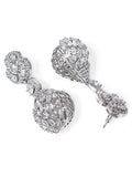 KARATCART Designer Silver-Plated White American Diamond Teardrop Drop Earrings for Women
