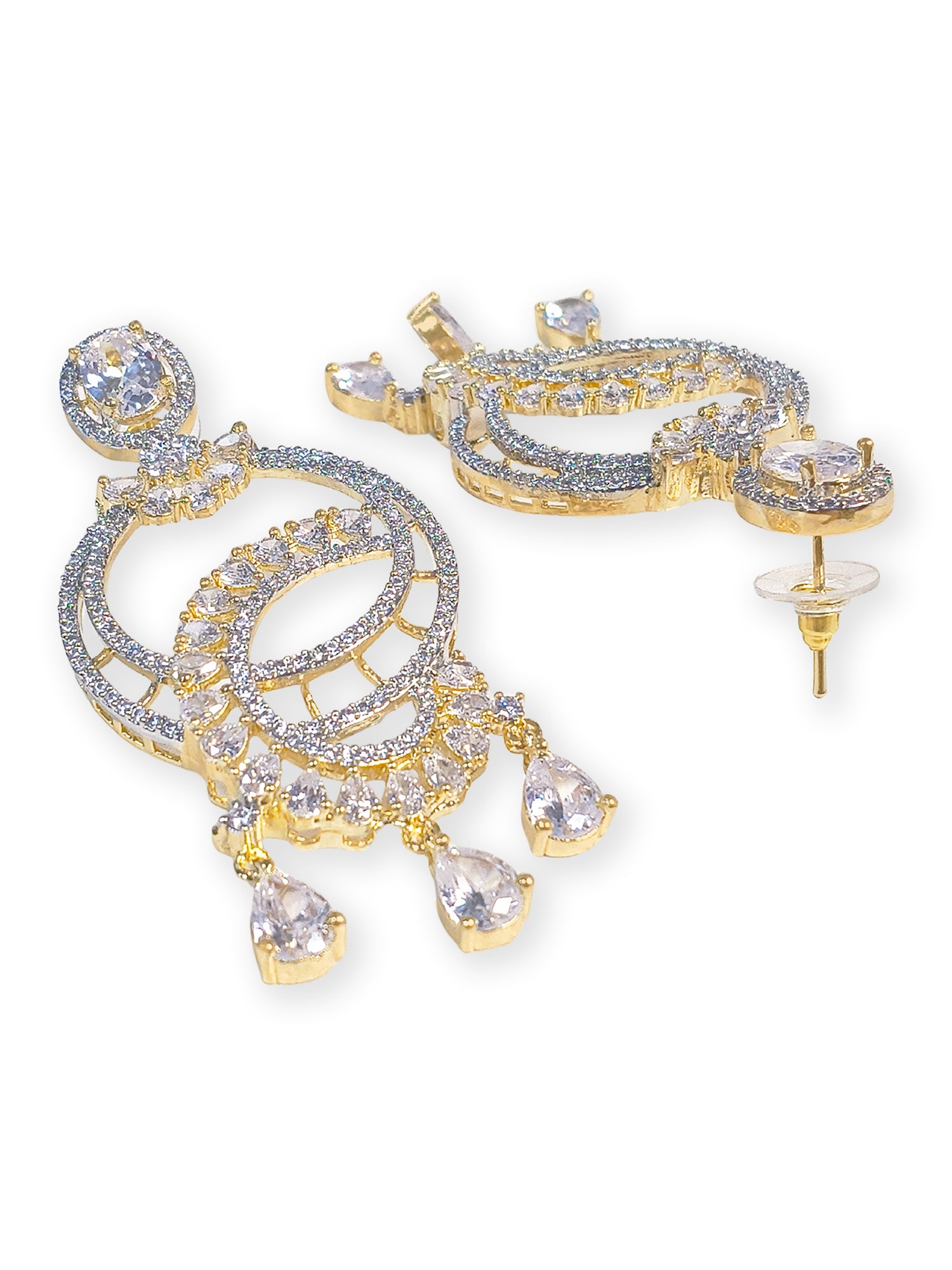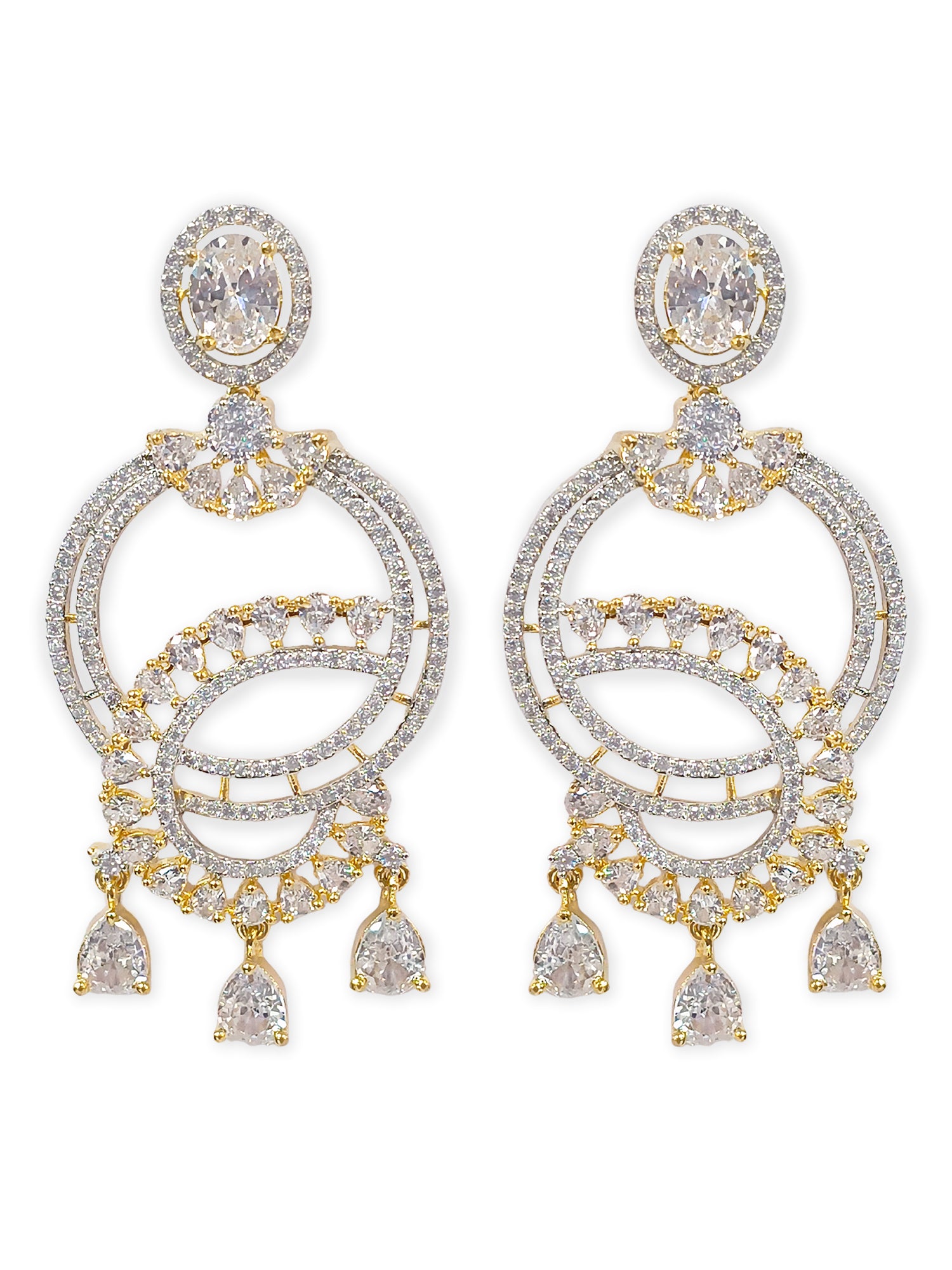 KARATCART Elegant Gold & Silver Plated White American Diamond Dual Tone Dangler Earrings for Women
