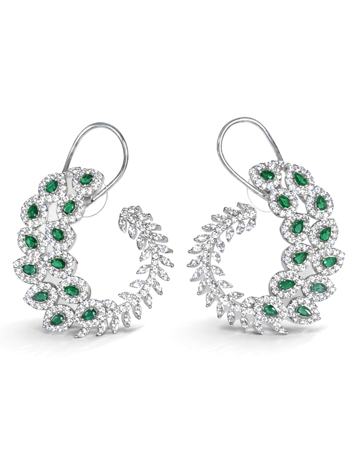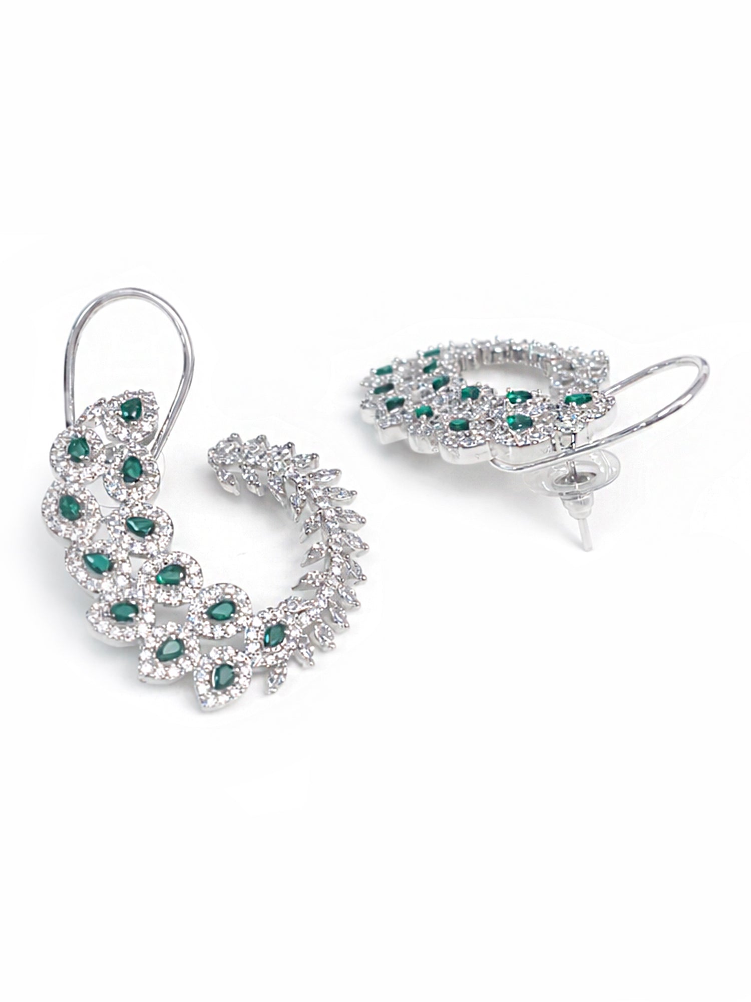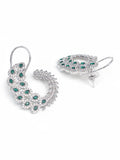 KARATCART Modern Silver-Toned Green American Diamond Peacock Design Stud Earrings for Women