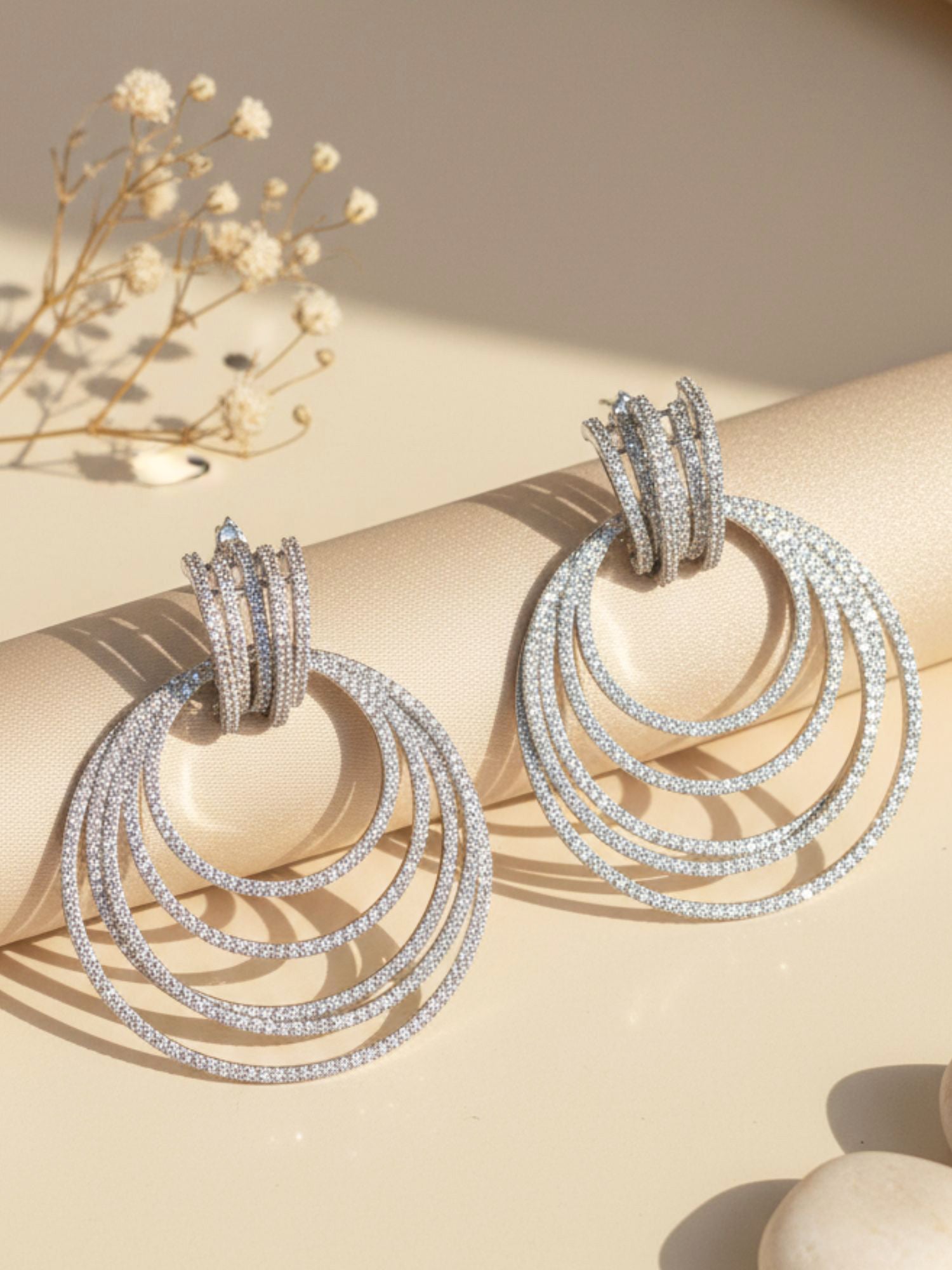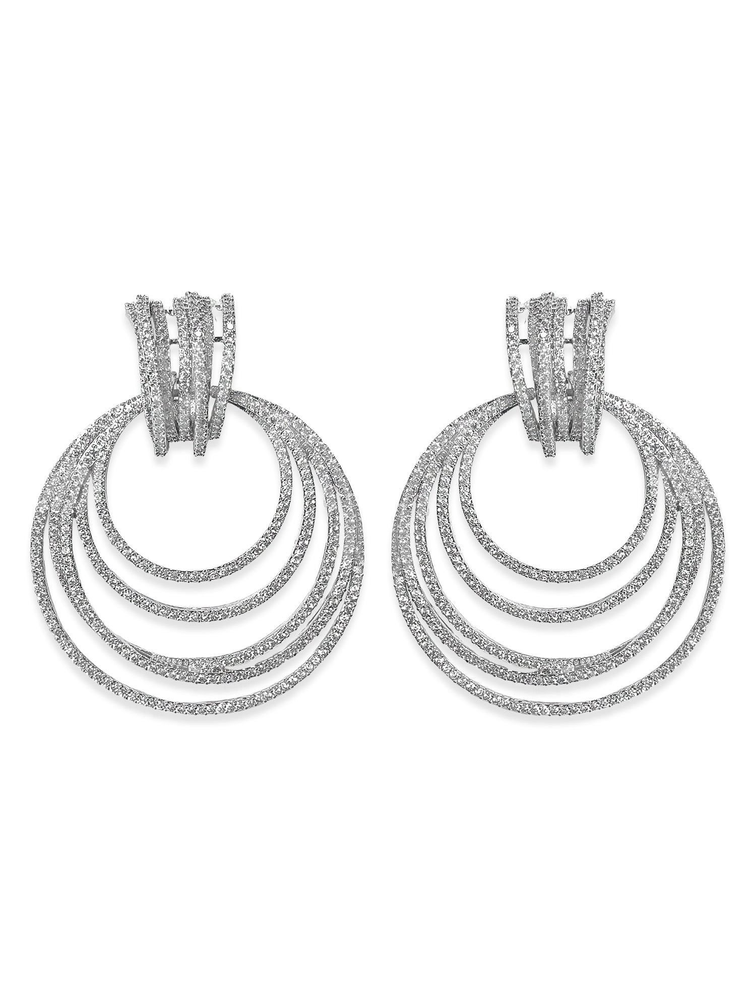 KARATCART Designer Silver-Toned White American Diamond Circular Dangler Earrings for Women