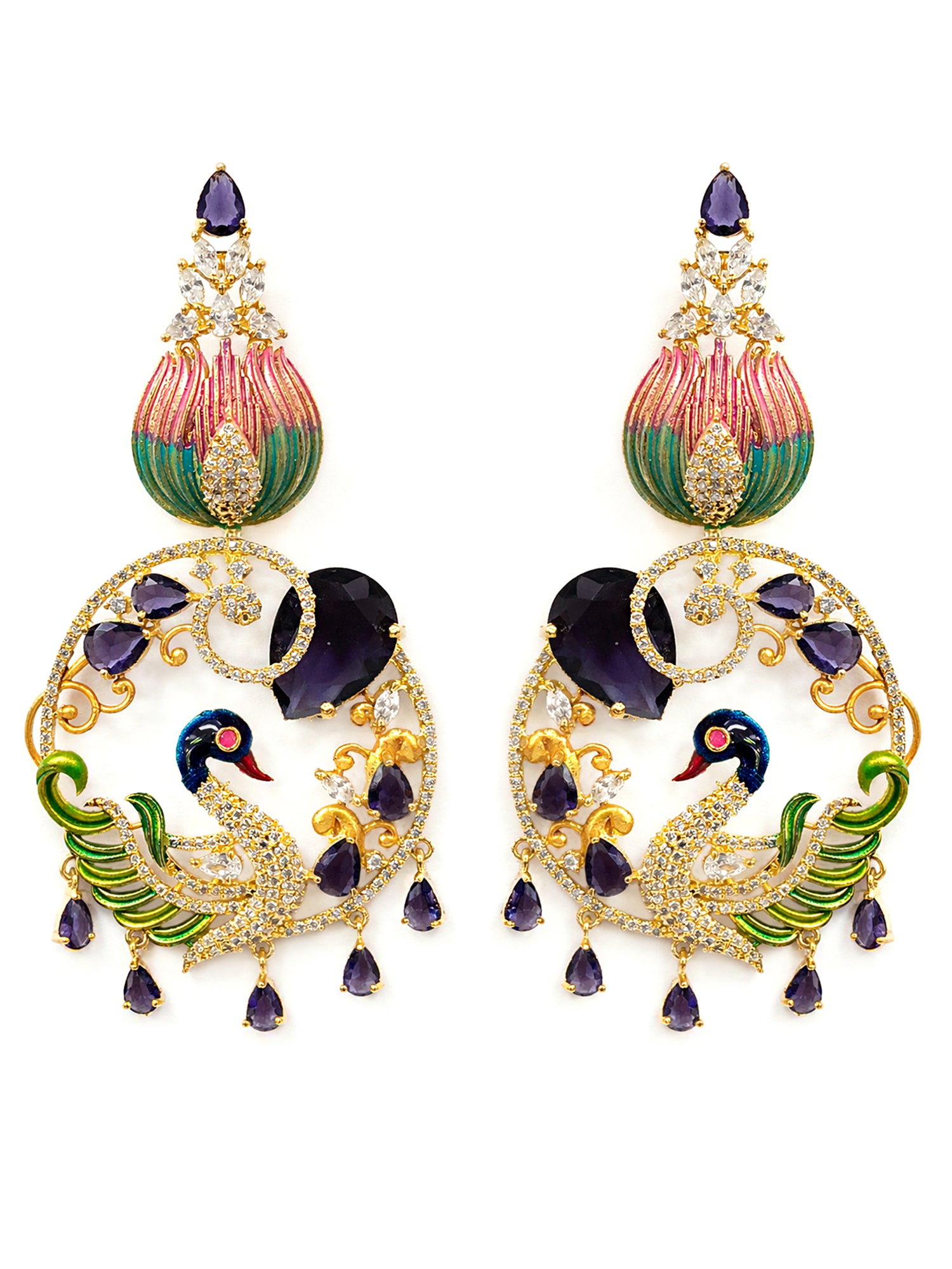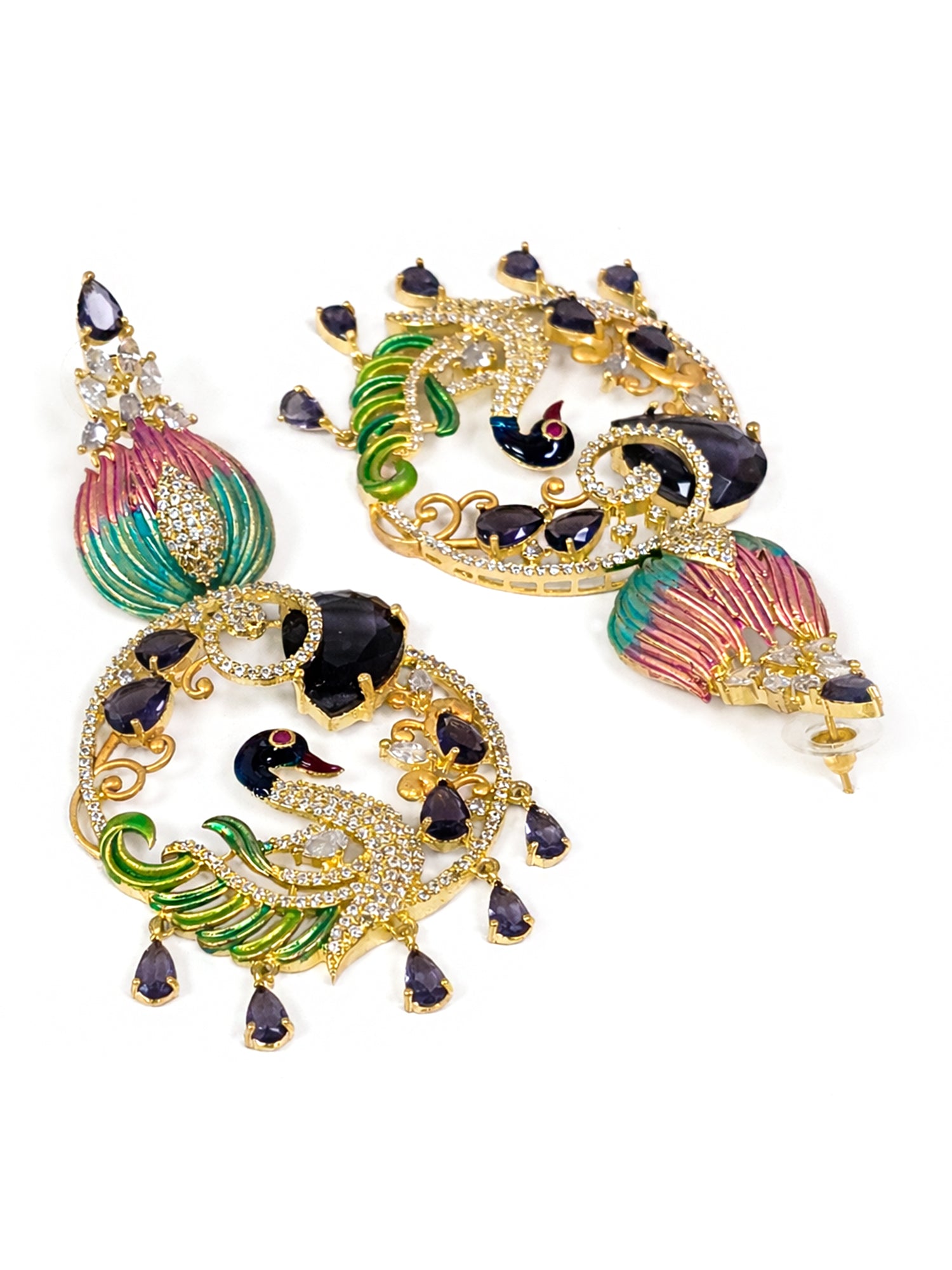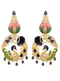 KARATCART Gold-Plated Multicolor Enamel Peacock Motif American Diamond Dangler Earrings for Women
