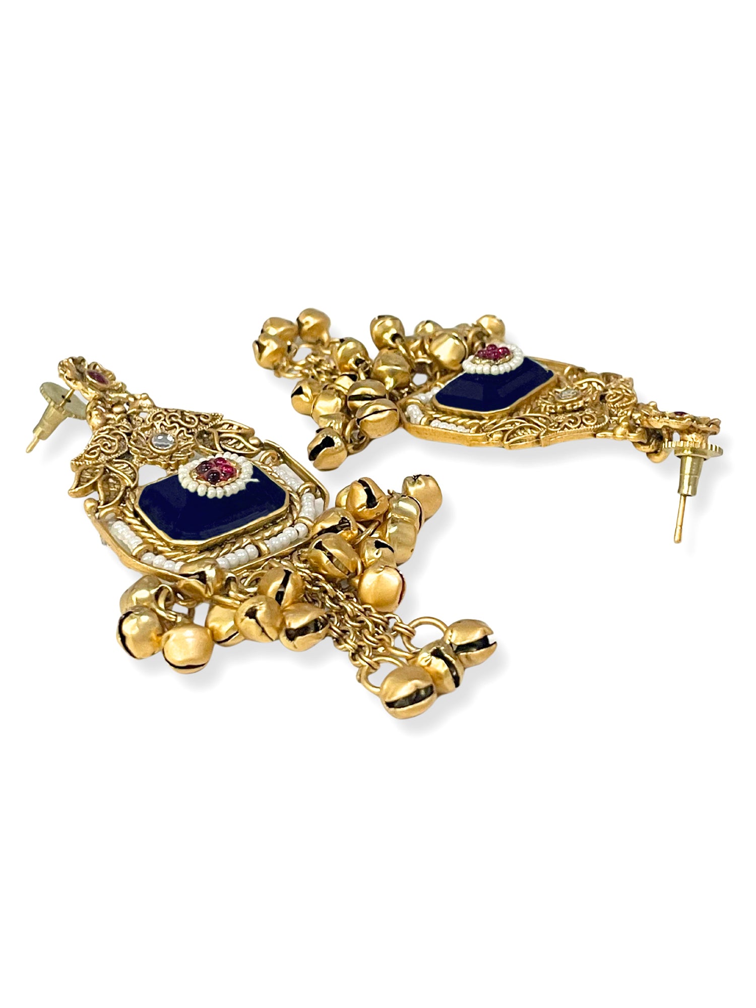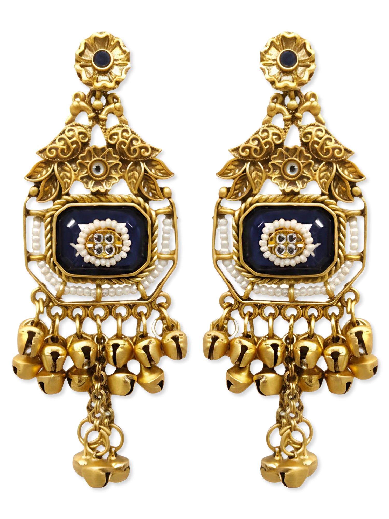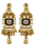KARATCART Designer Gold-Plated Blue Stone Pearl Studded Ghungroo Dangler Earrings for Women