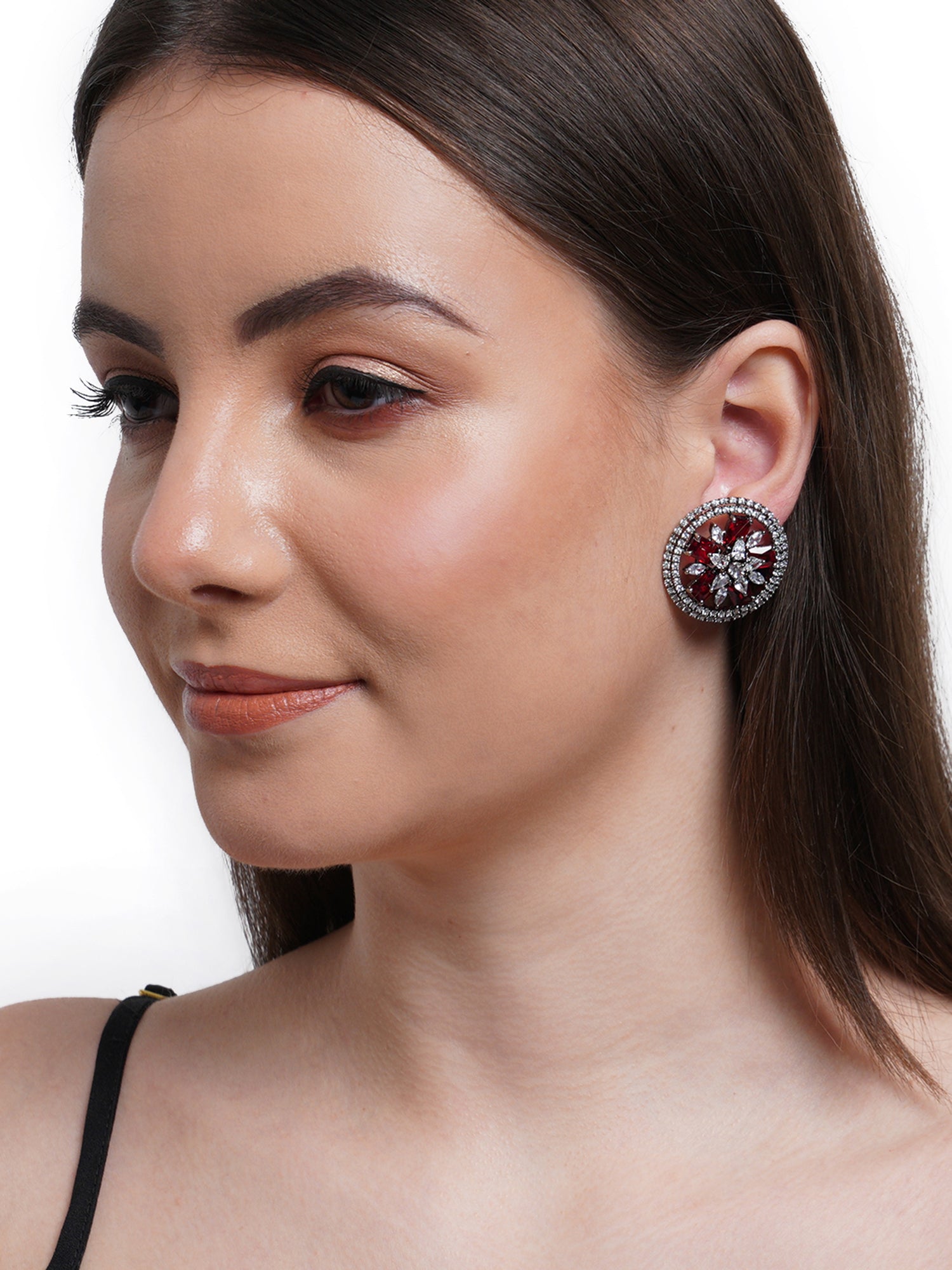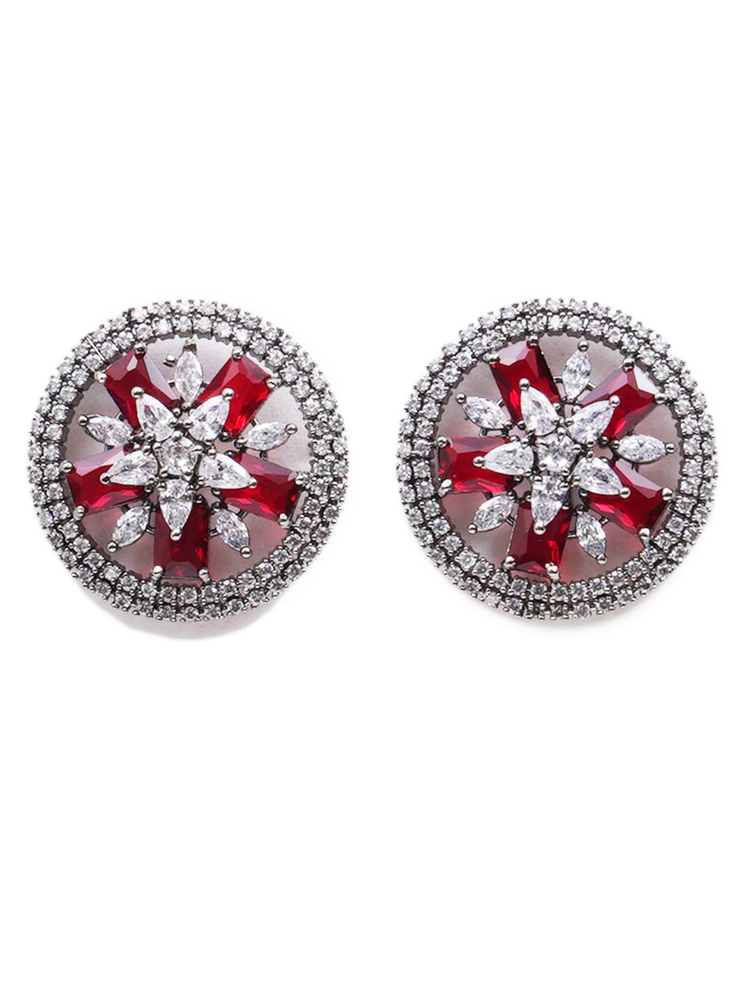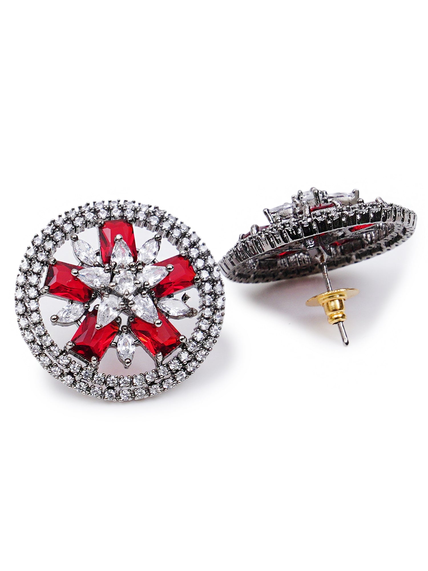 - Karatcart Red American Diamond Studded Floral Stud Earrings for Women. It is made with High-Quality AAA Cubic zirconia. Perfect for small occasions and gifting purposes.