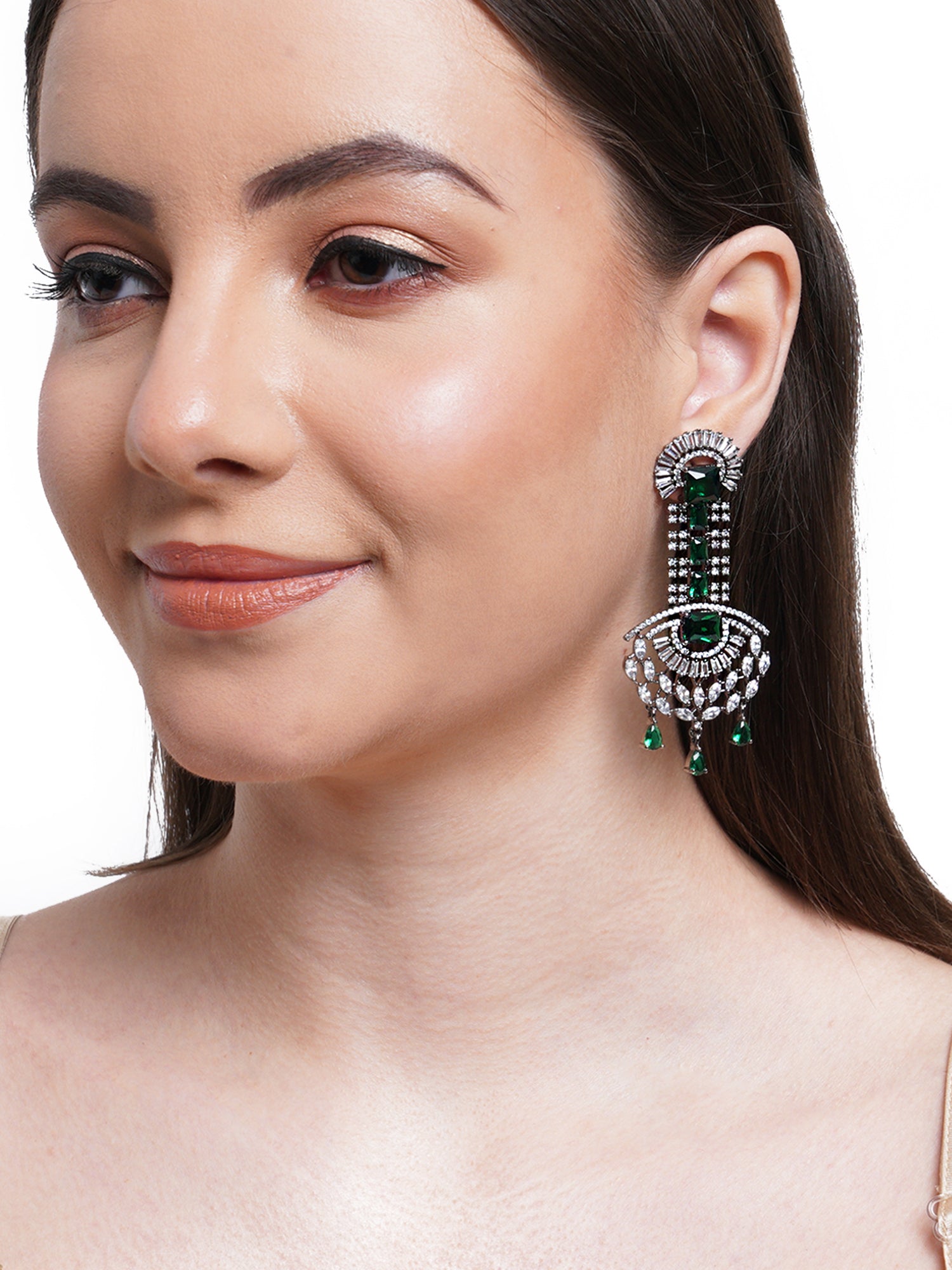- Karatcart Green American Diamond and CZ Studded Dangler Earrings for Women. It is made with High-Quality AAA Cubic zirconia. Perfect for small occasions and gifting purposes.