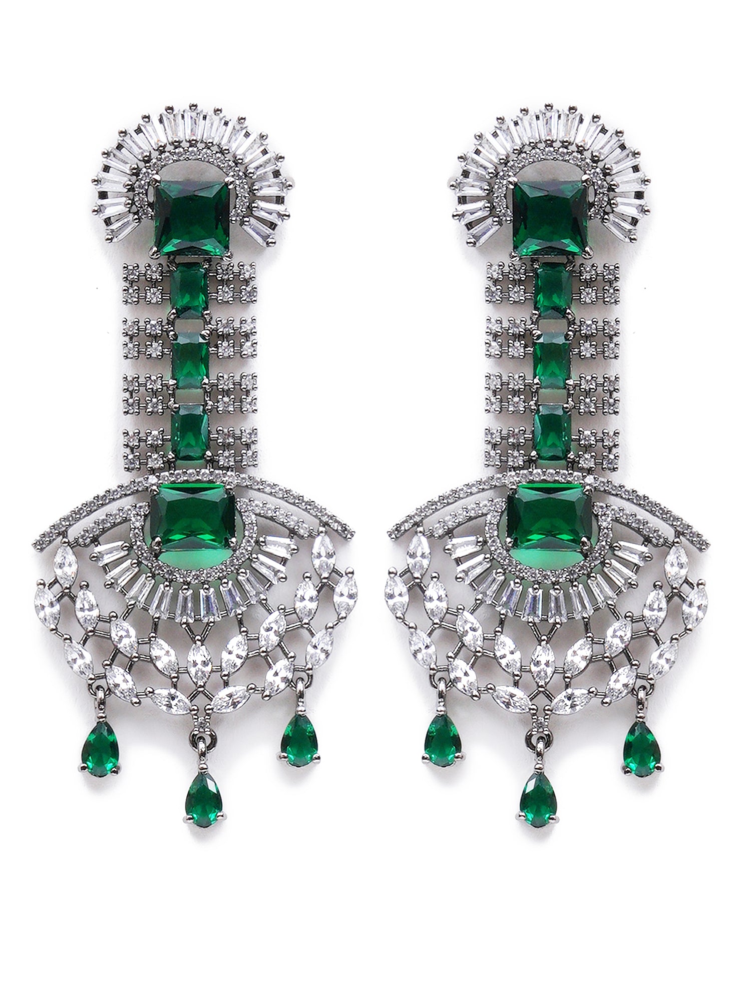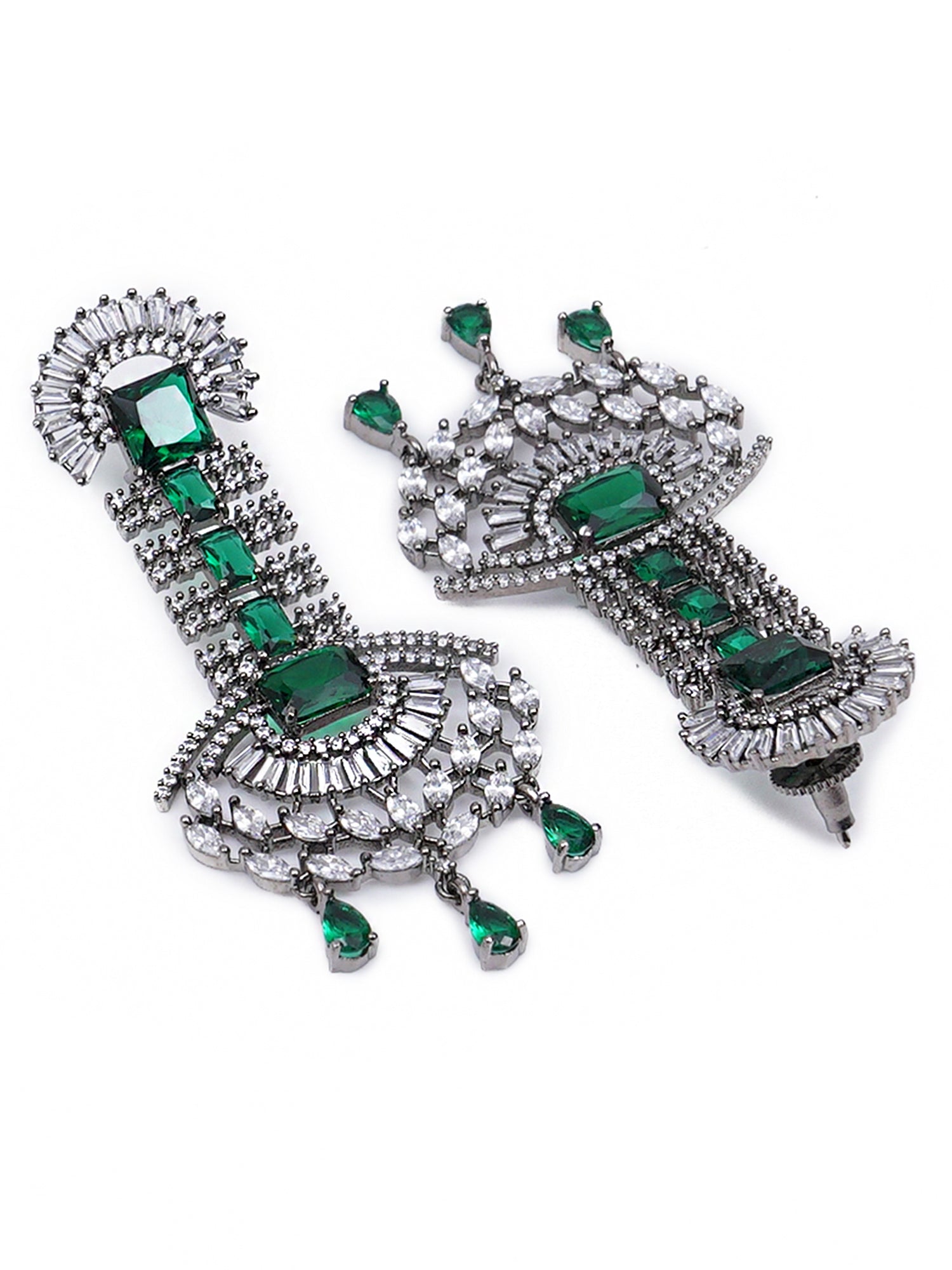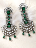 Green American Diamond and CZ Studded Dangler Earrings
