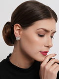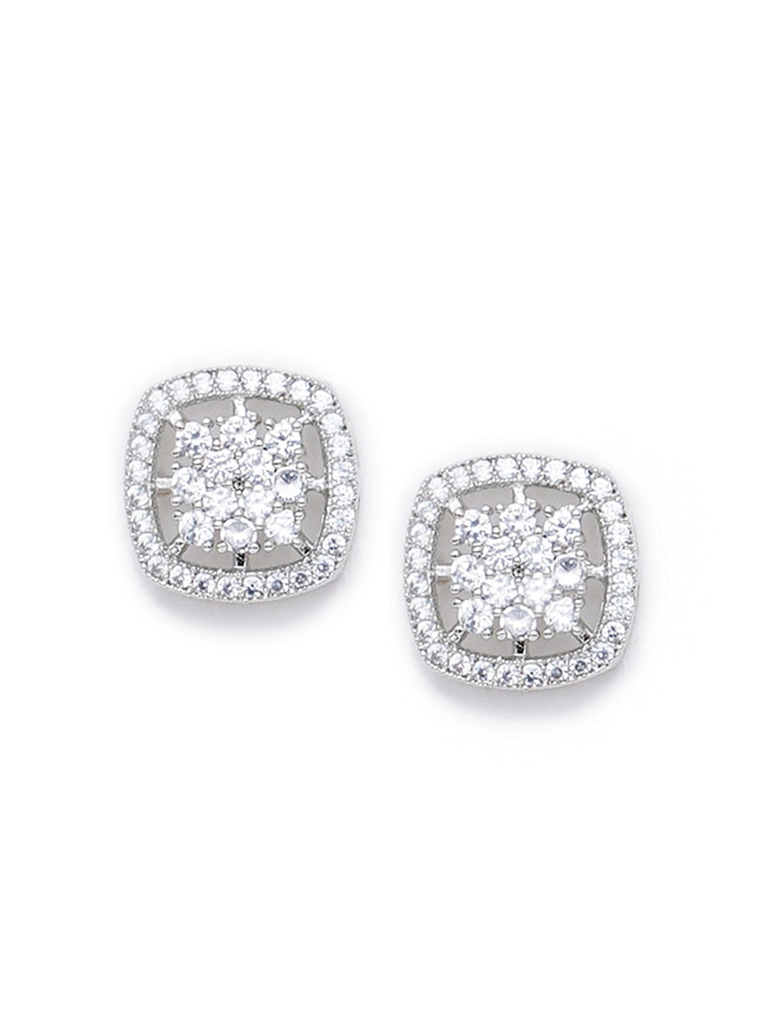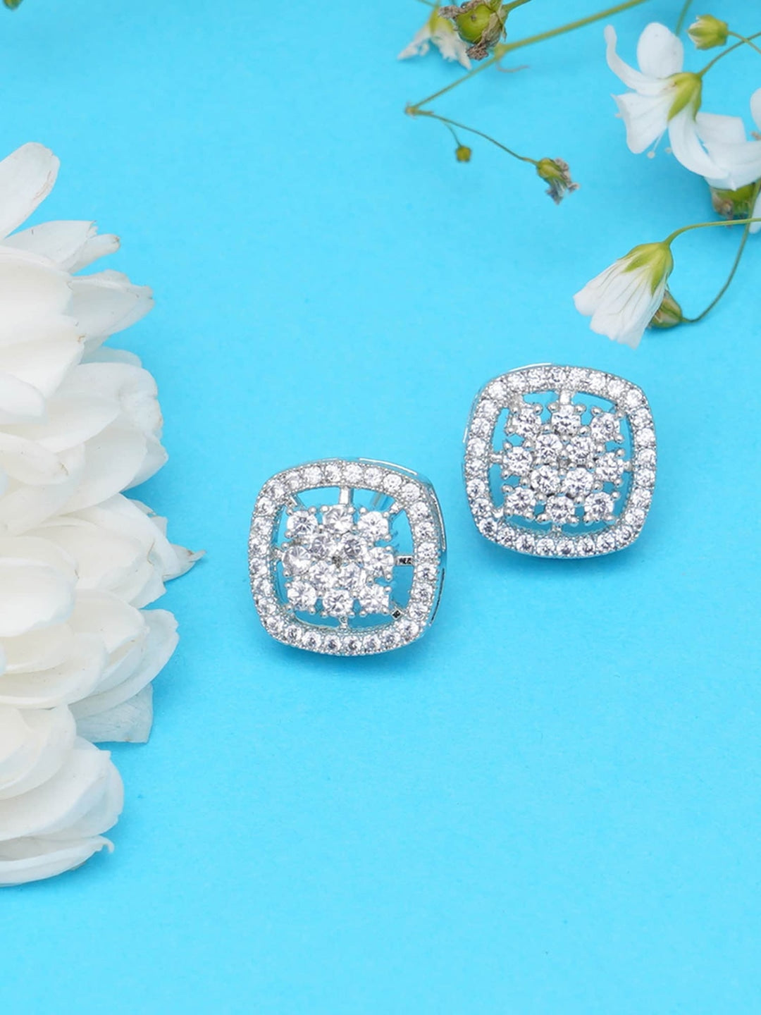 Silver-Toned AD-Studded Contemporary Studs Earrings