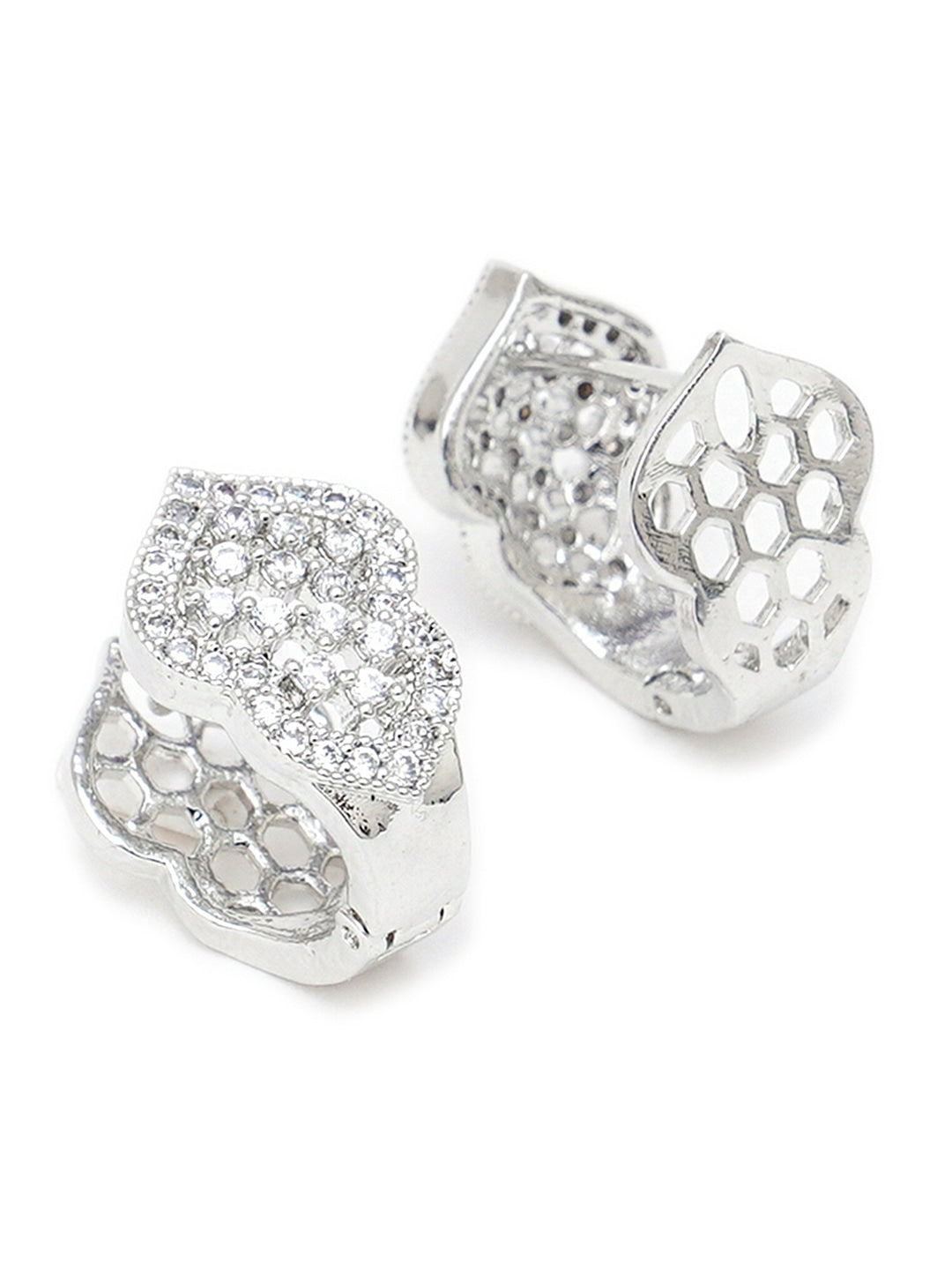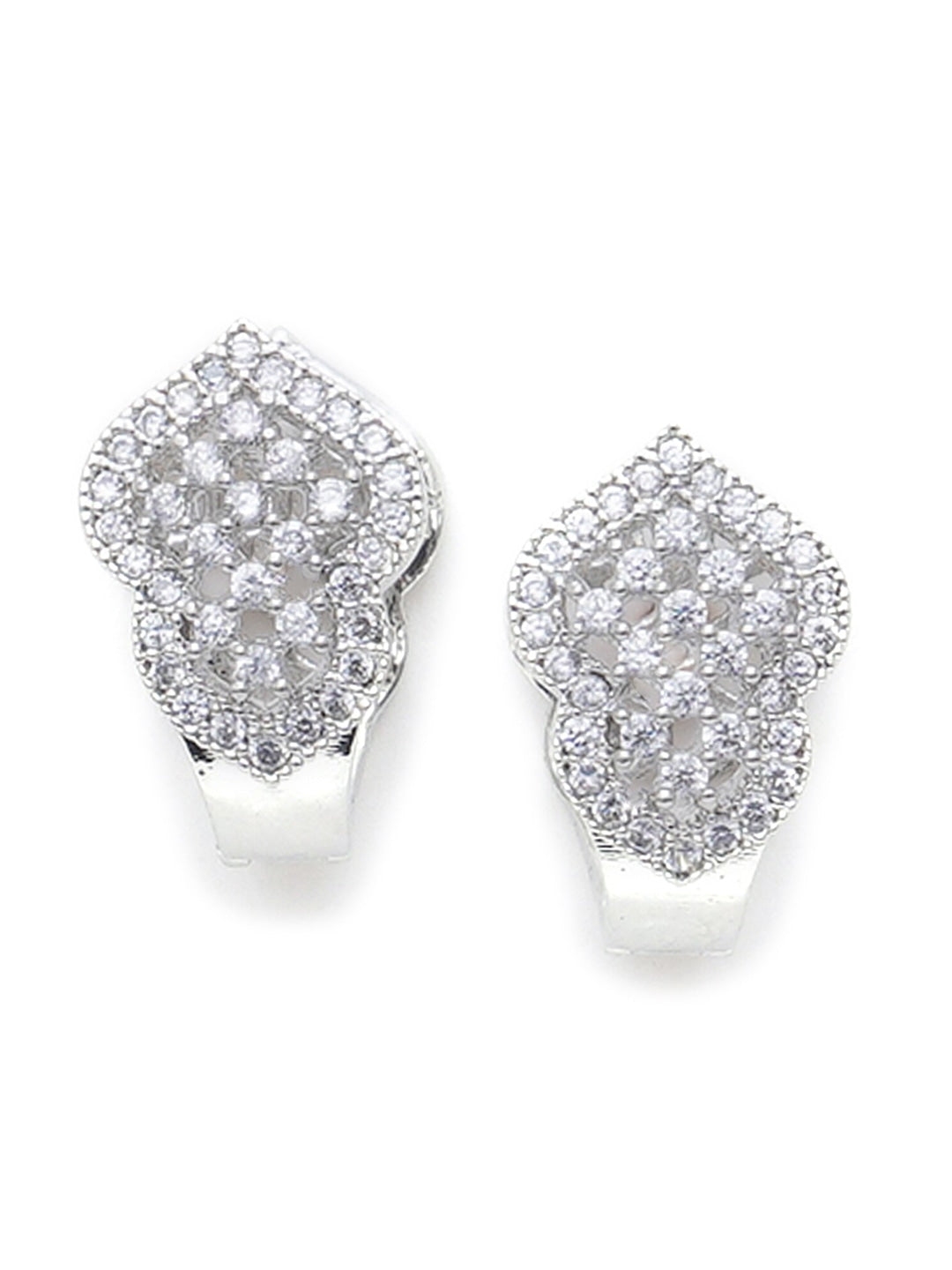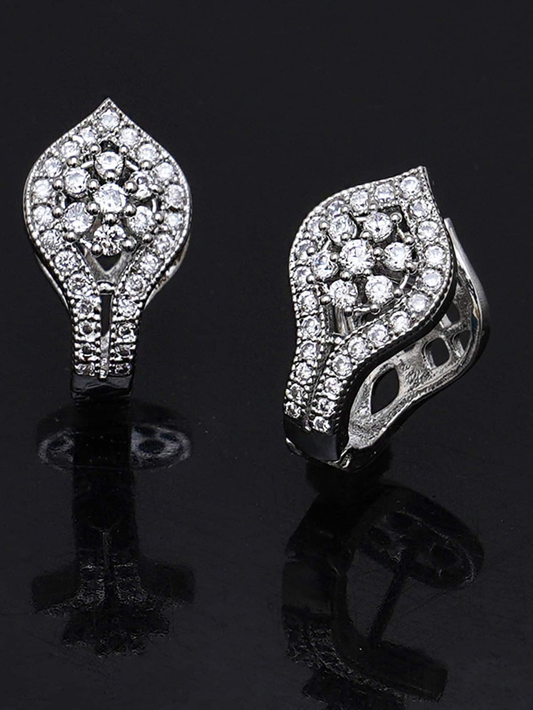 Silver-toned contemporary studs, silver-plated, has american diamond