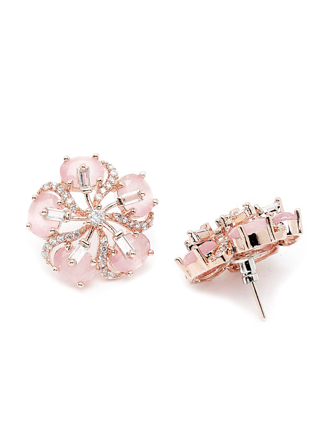Rose Gold Plated Pink Floral Studs Earrings