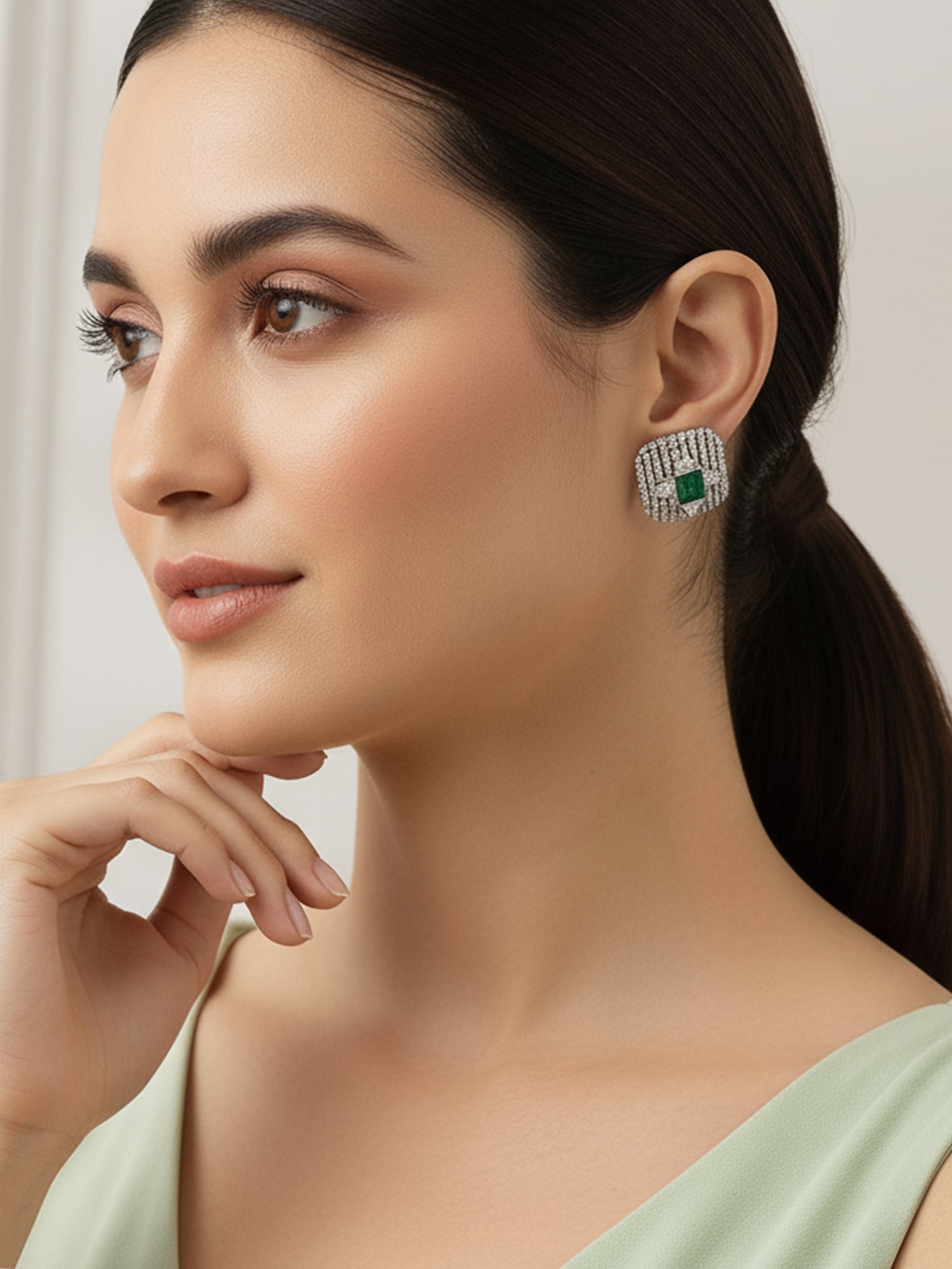 - Silver Tone Green Square American Diamond Drop Earrings for Women .It is made with High-Quality AAA Cubic zirconia. Perfect for Weddings, Parties, Festivals, and Traditional Occasions.