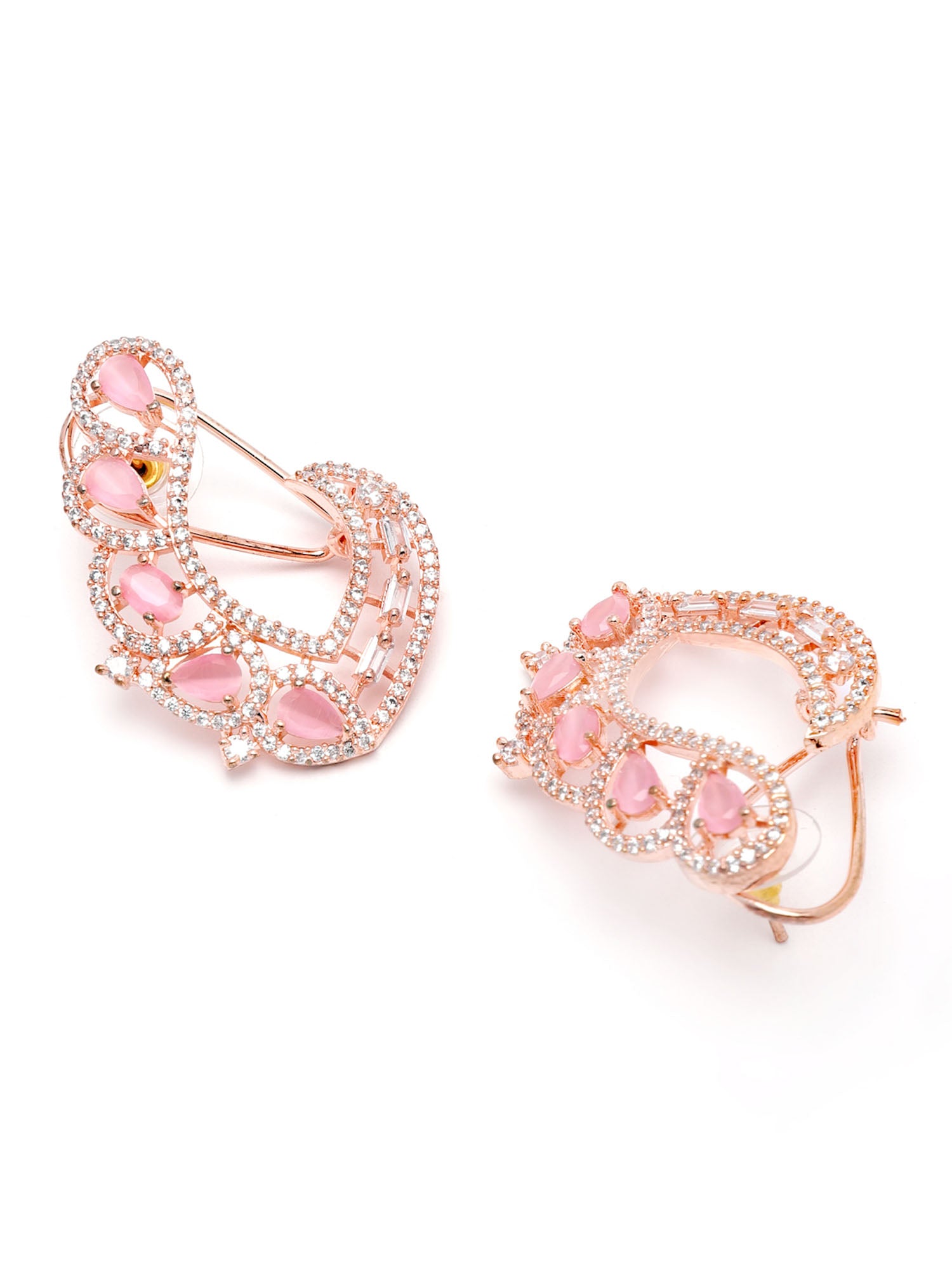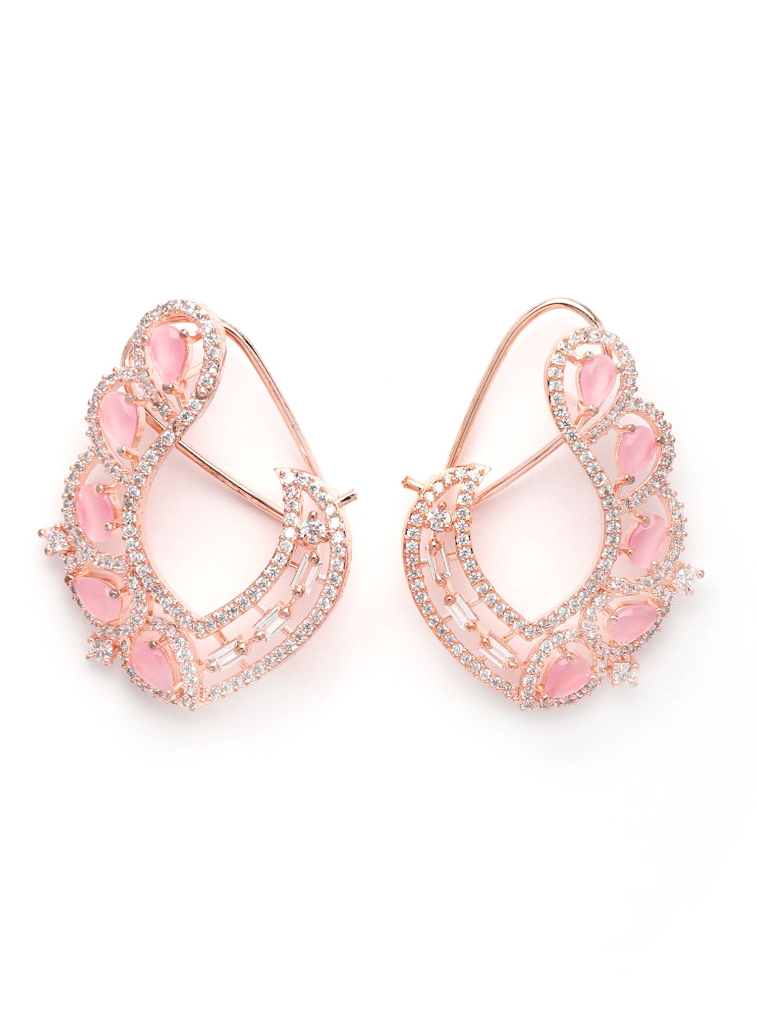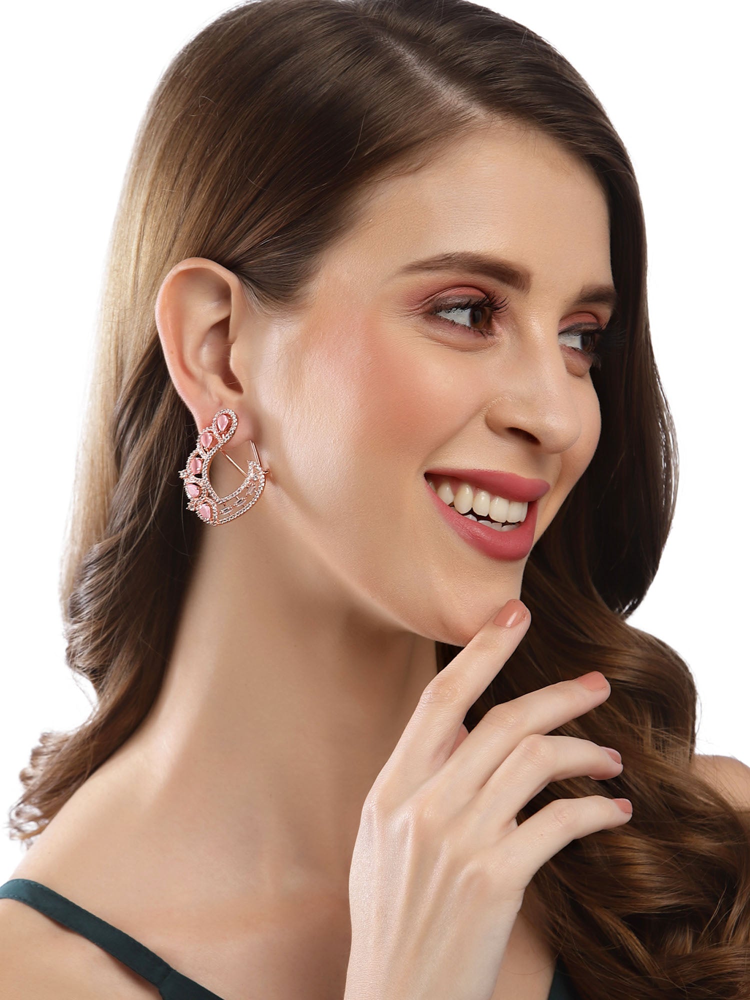- Karatcart Rose Gold Plated American Diamond Hoop Earrings for Women .It is made with high-quality Kundan Stones which makes them very skin-friendly. Perfect for Weddings, Parties, Festivals, and Traditional Occasions. Gracefully pair Saree, Kurti, or any Indo-western outfit to enhance your look. These are made from toxic-free materials which are Anti-Allergic and Safe for the skin.
