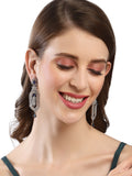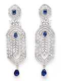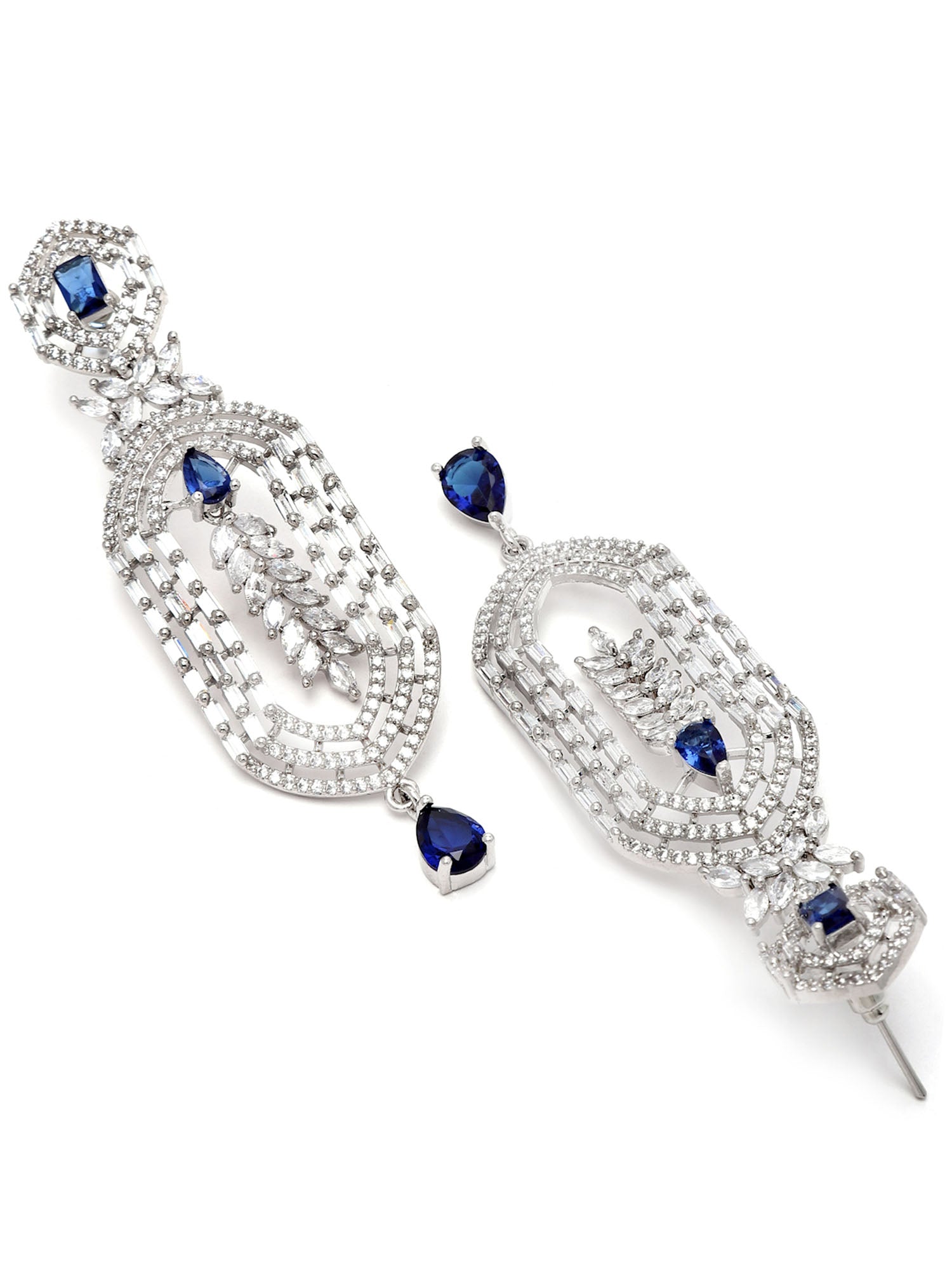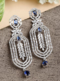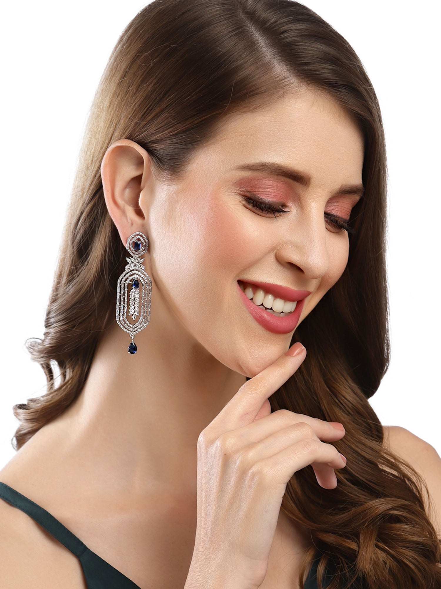 Karatcart Silver Tone American Diamond Studded Blue Dangler Earrings for Women
