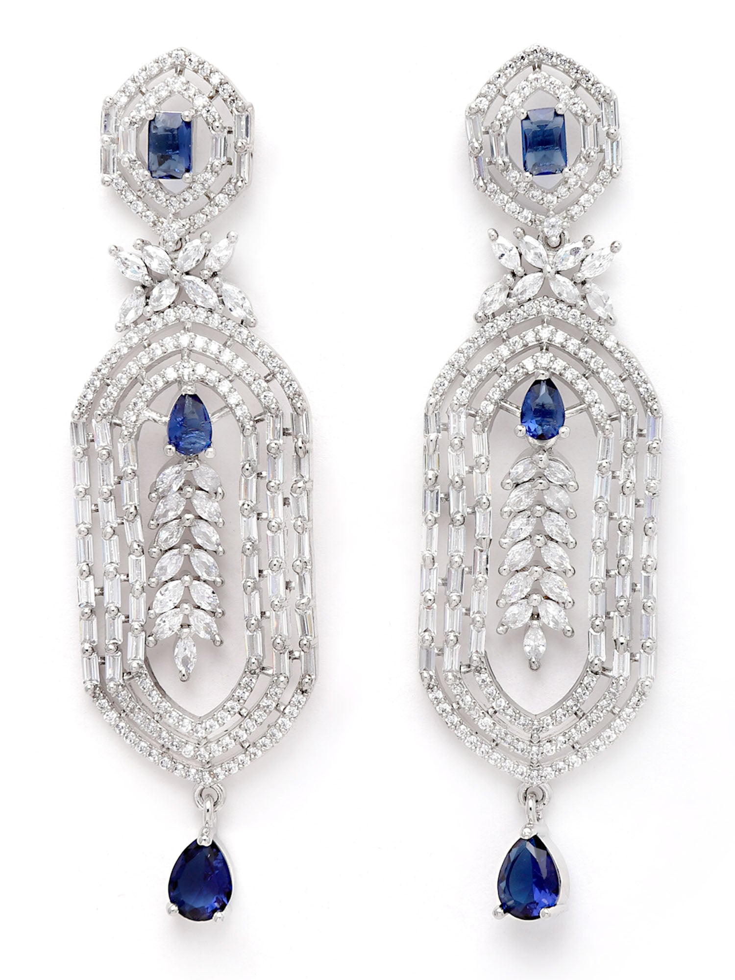 - Karatcart Silver Tone American Diamond Studded Blue Dangler Earrings for Women .It is made with high-quality Kundan Stones which makes them very skin-friendly. Perfect for Weddings, Parties, Festivals, and Traditional Occasions. Gracefully pair Saree, Kurti, or any Indo-western outfit to enhance your look. These are made from toxic-free materials which are Anti-Allergic and Safe for the skin.