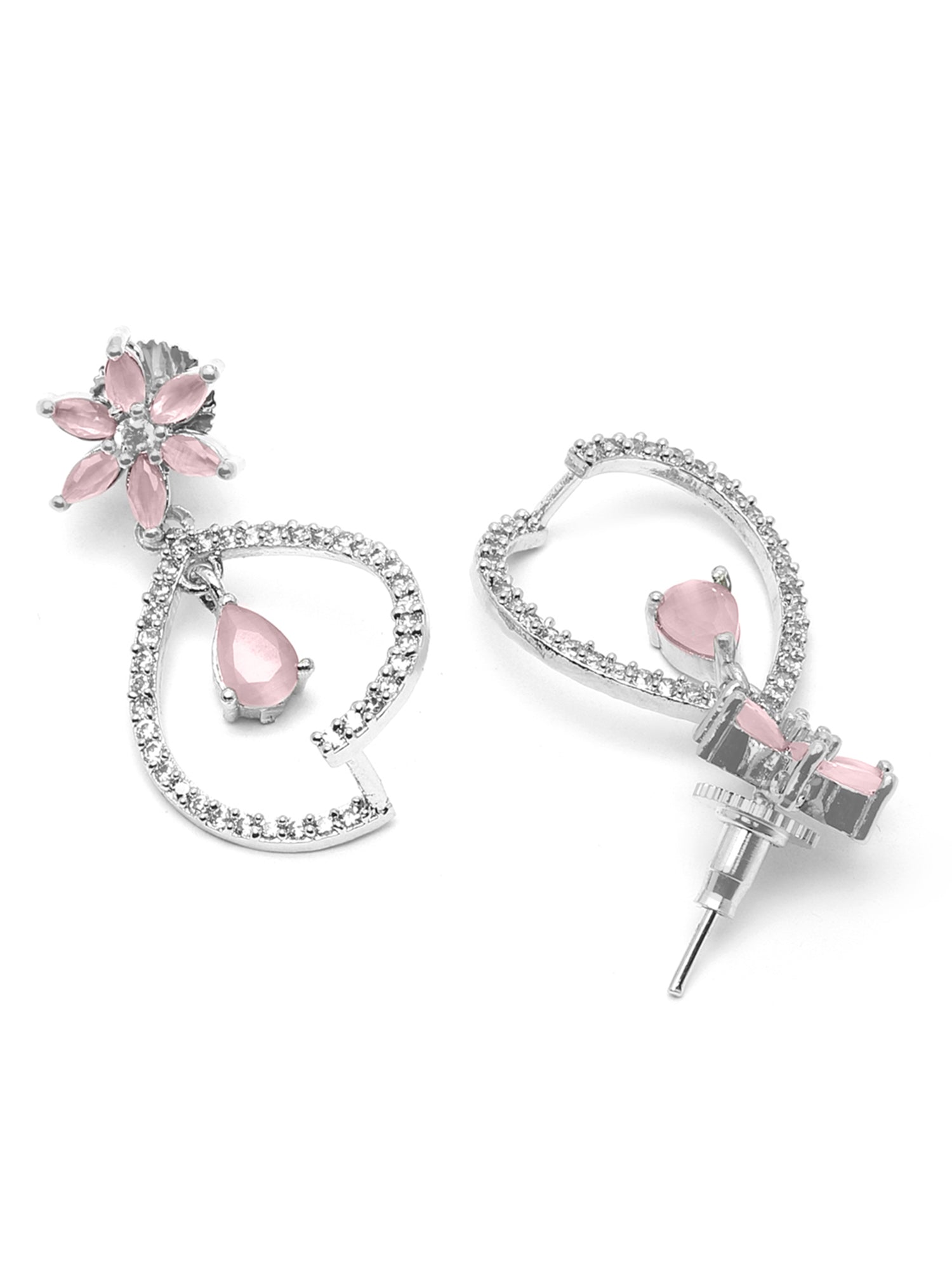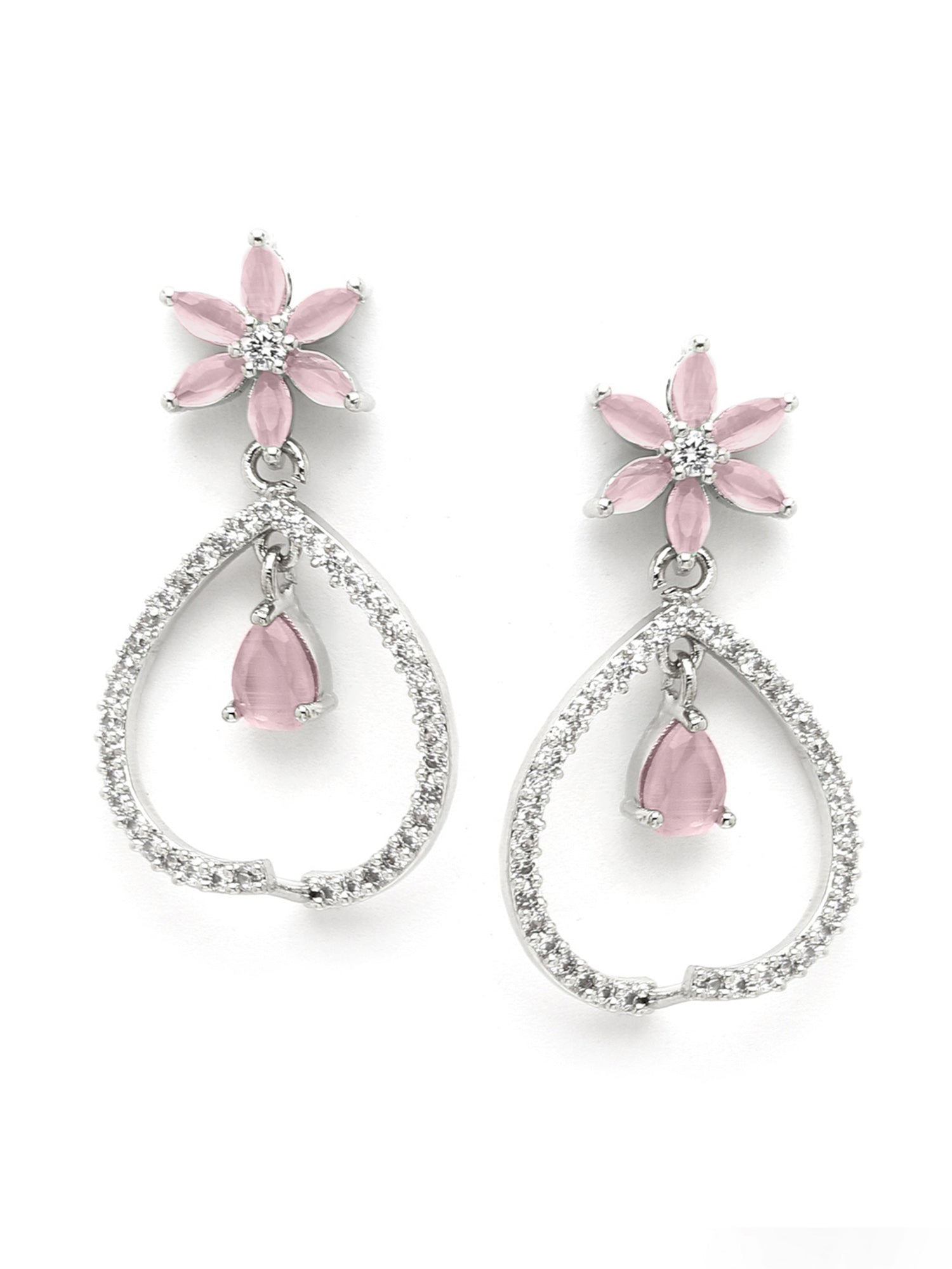 - This is a Pink Earrings by Brand Karatcart which has Pink American Diamond stones.This is Silver Plated. We at KARATCART understand your desire to look the best on any day & we thrive in making any day an occasion. Every individual at Karatcart carries a passion for jewellery and it reflects in our beautiful designs as well as in our breathtaking craftsmanship. We create unique jewellery so you can make heads turn..
