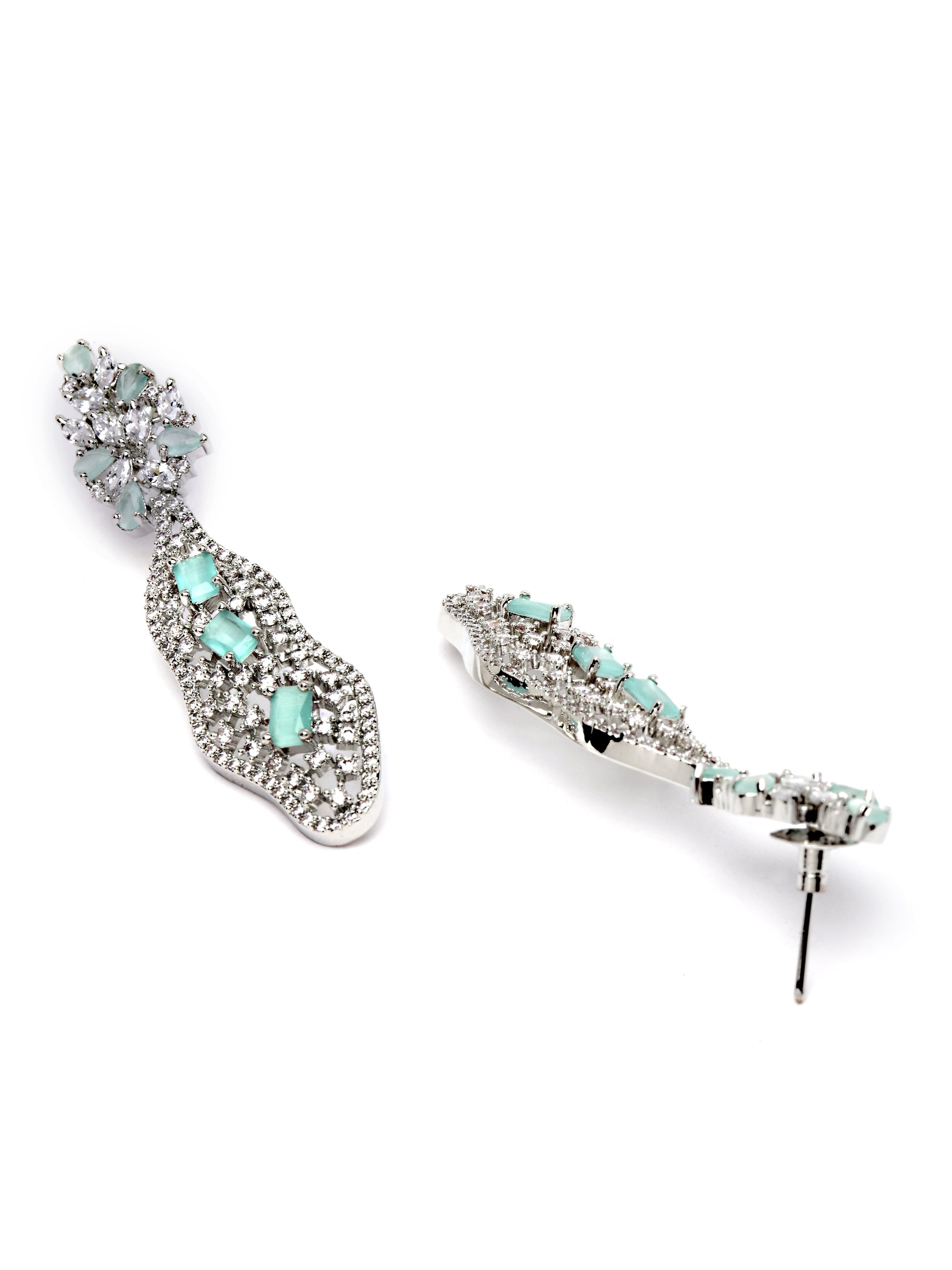 - Karatcart Silver Plated Embellished Lime Green CZ Drop Earrings for Women .It is made with high-quality Kundan Stones which makes them very skin-friendly. Perfect for Weddings, Parties, Festivals, and Traditional Occasions. Gracefully pair Saree, Kurti, or any Indo-western outfit to enhance your look. These are made from toxic-free materials which are Anti-Allergic and Safe for the skin.