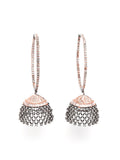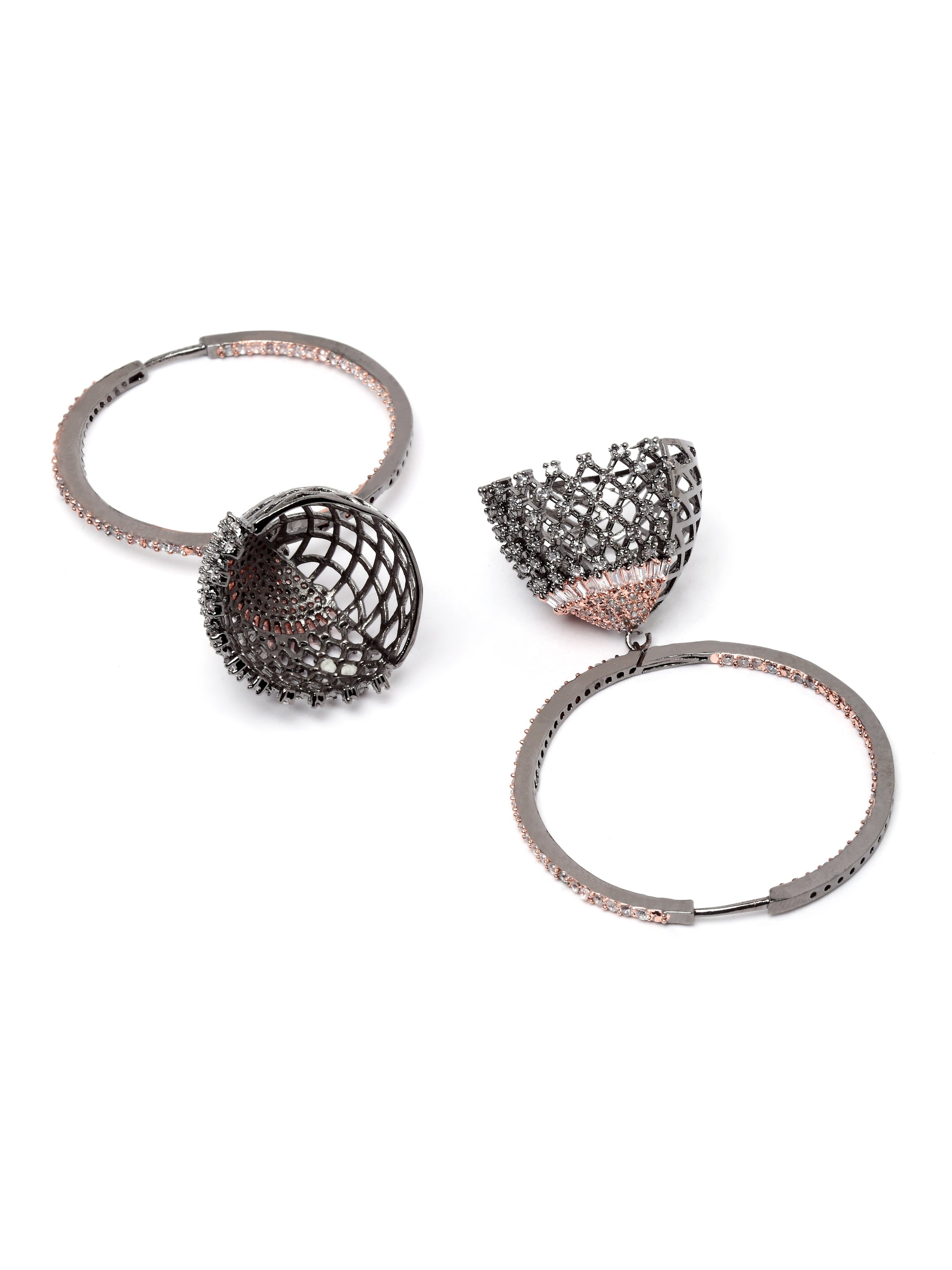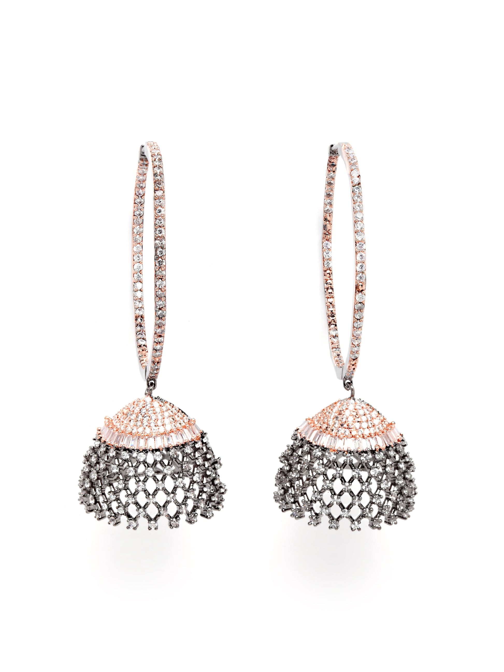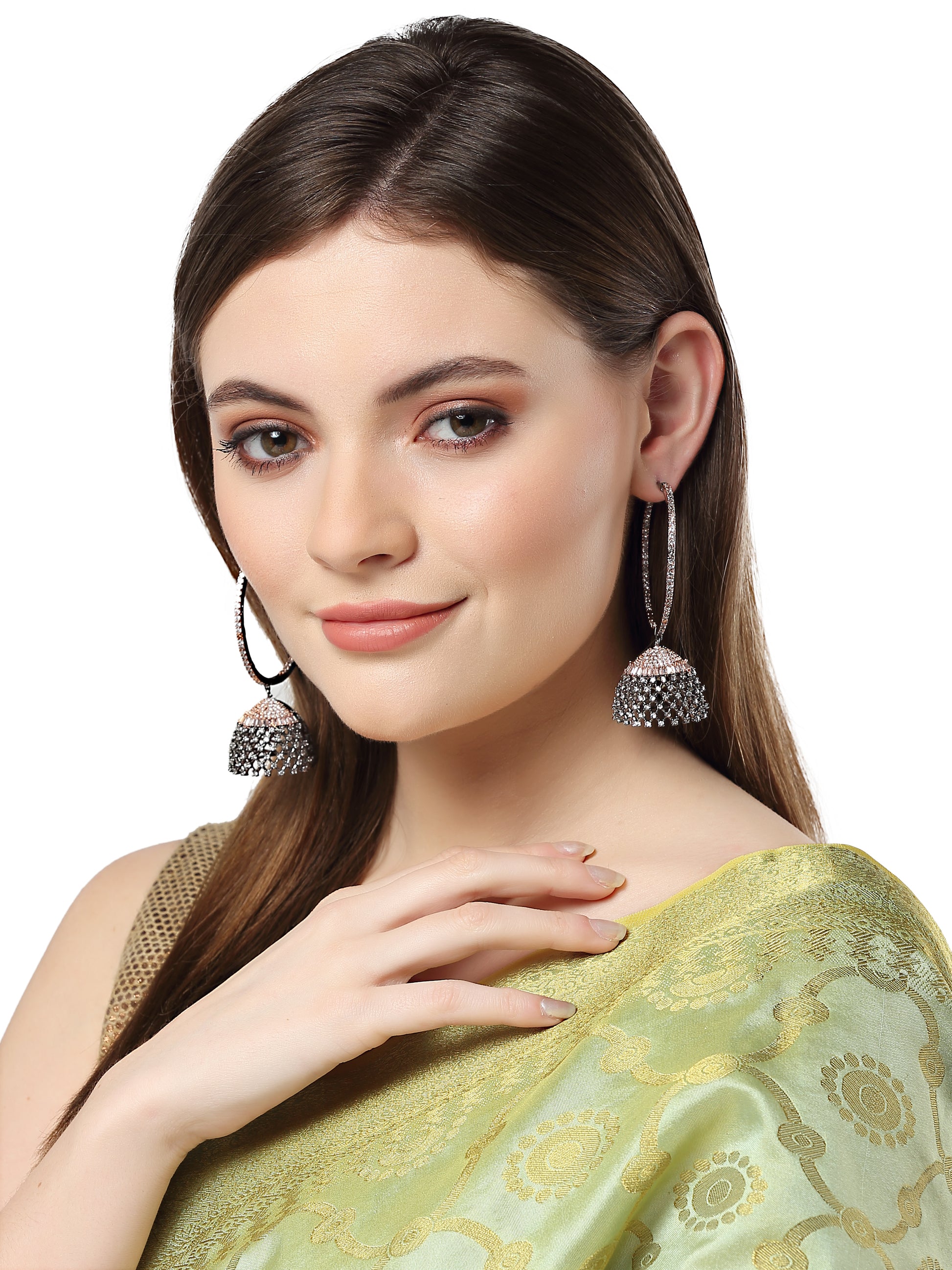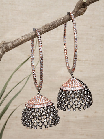 Karatcart Rose Gold Plated Black Finished Cubic Zirconia Studded Jhumki Earrings for Women
